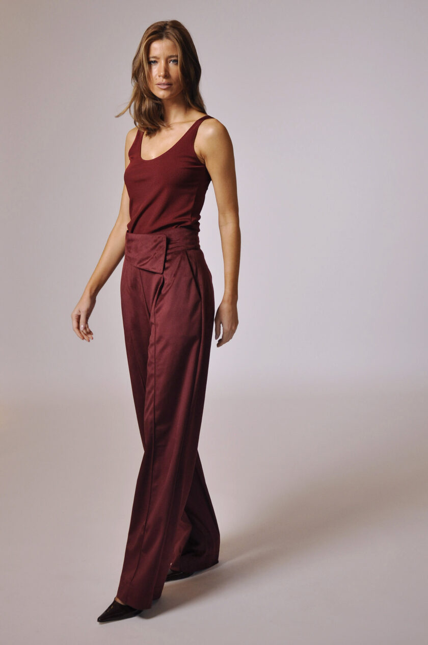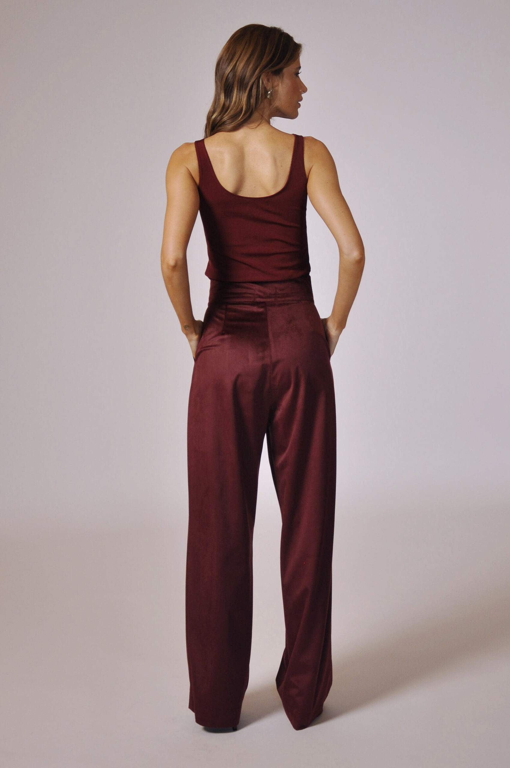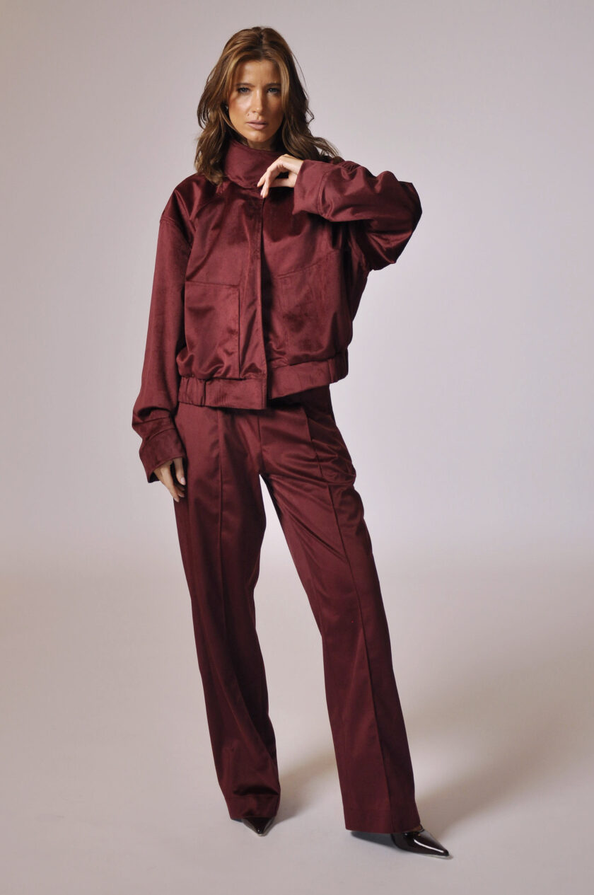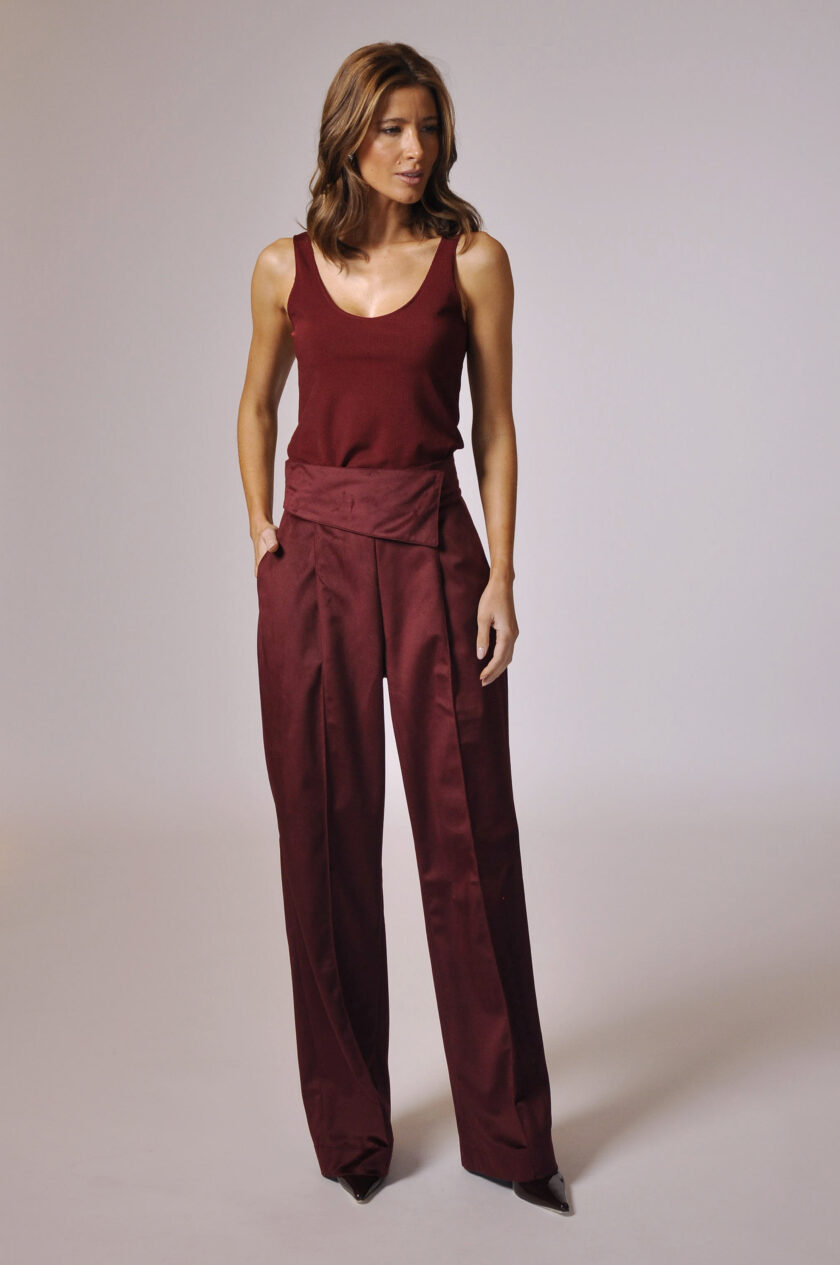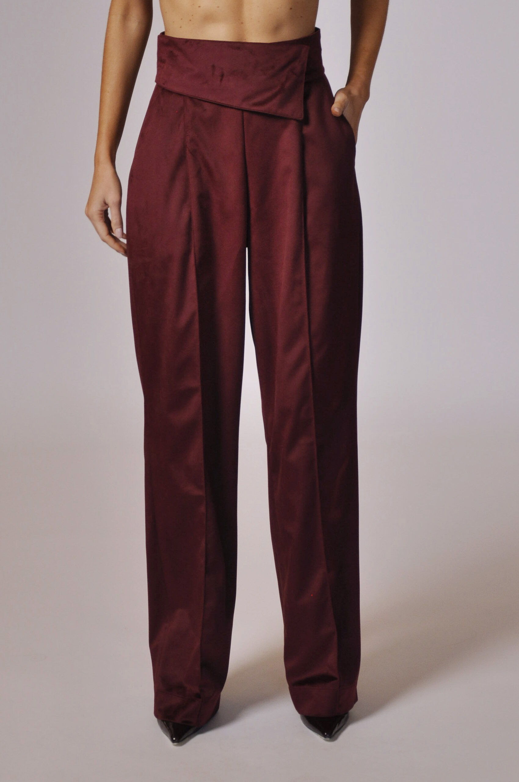 CALÇA JEF COM BOLSOS, VINCO FRONTAL E PALA NO CÓS.