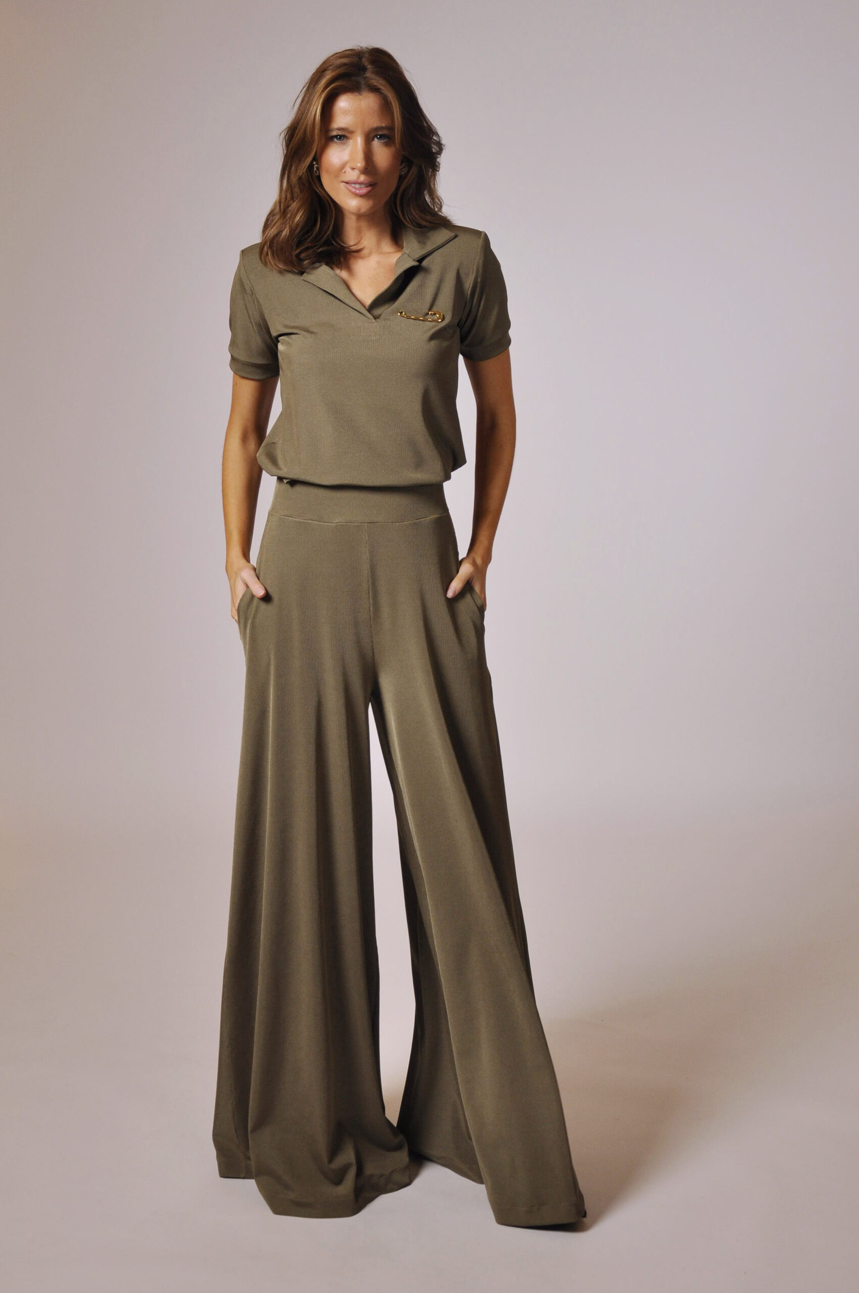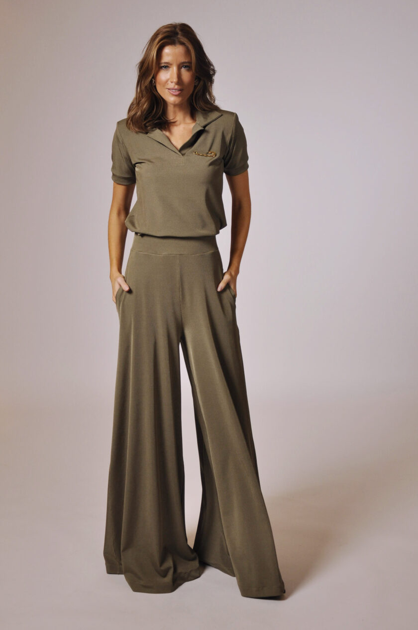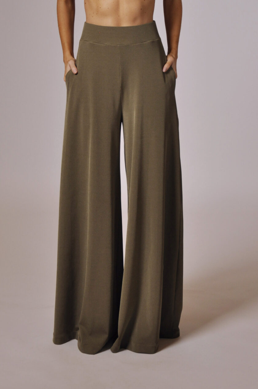 PANTALONA DEGAS COM BOLSOS E ELÁSTICO NO CÓS.