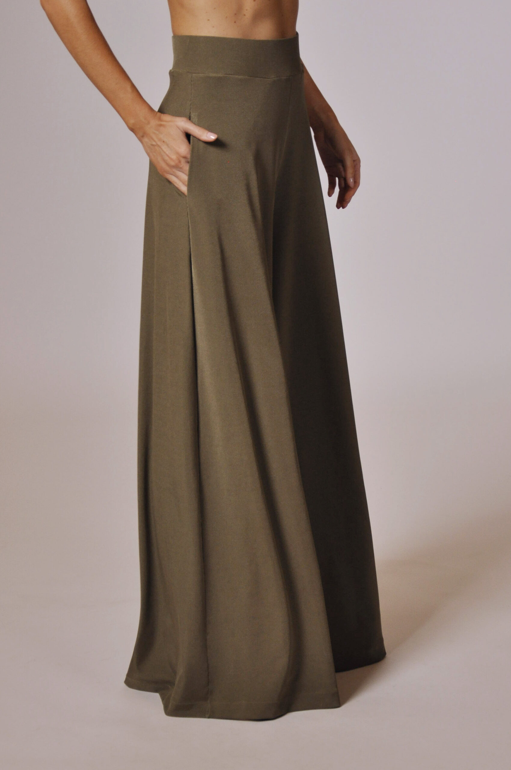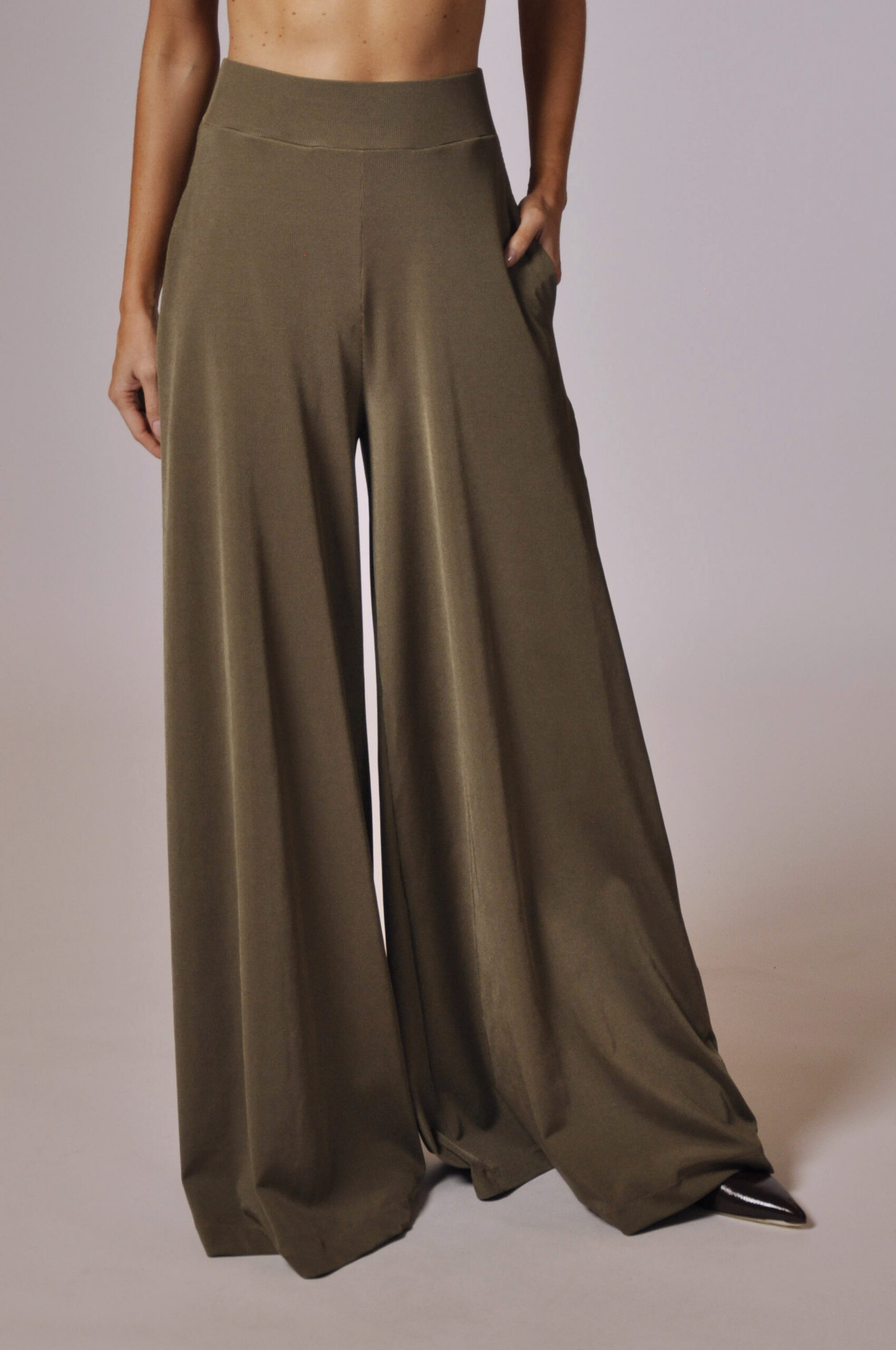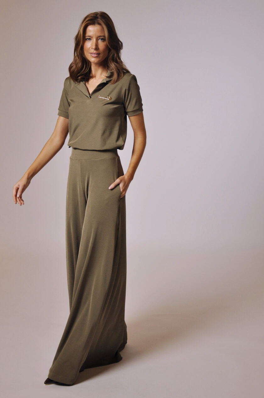 PANTALONA DEGAS COM BOLSOS E ELÁSTICO NO CÓS.