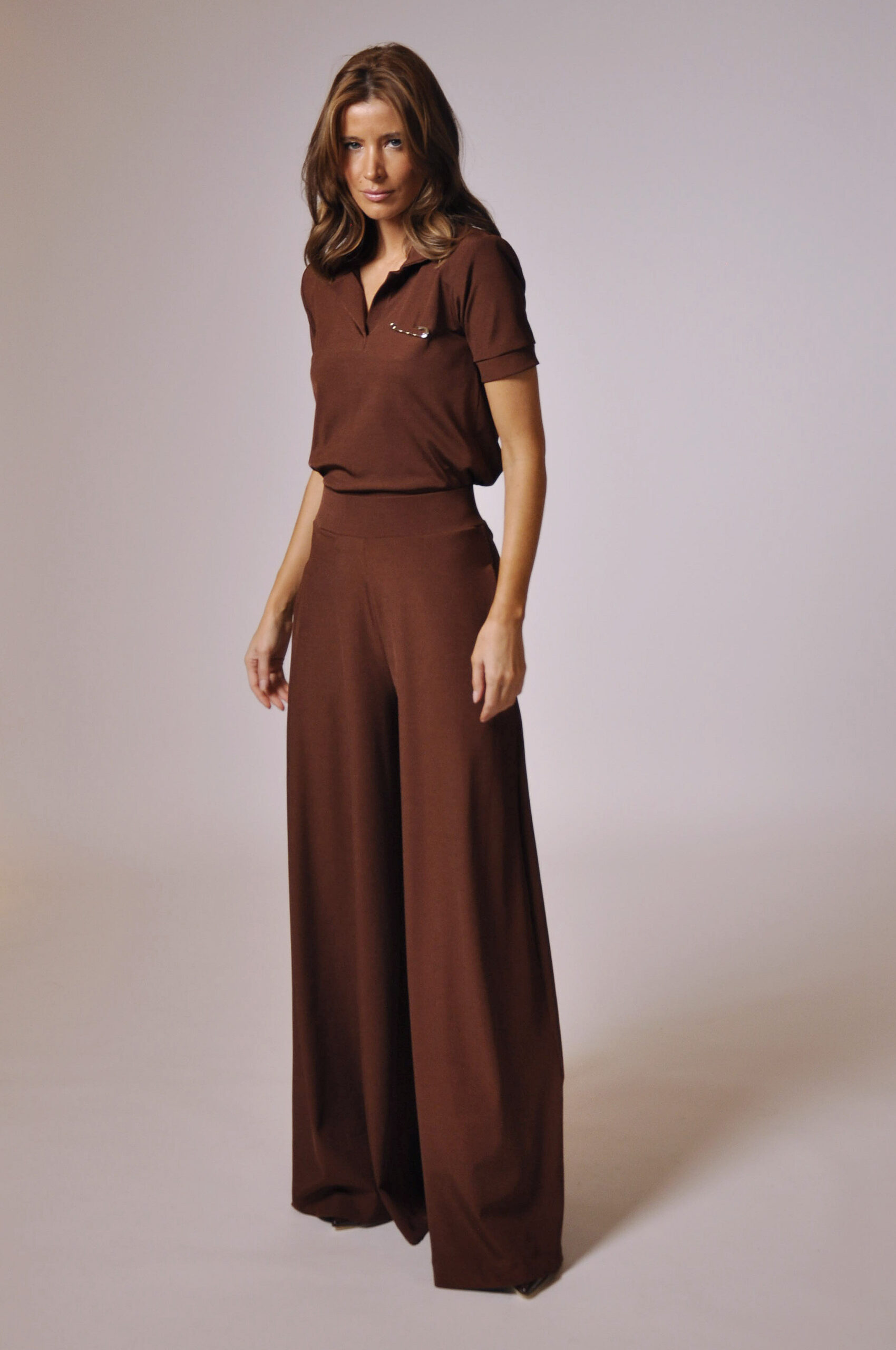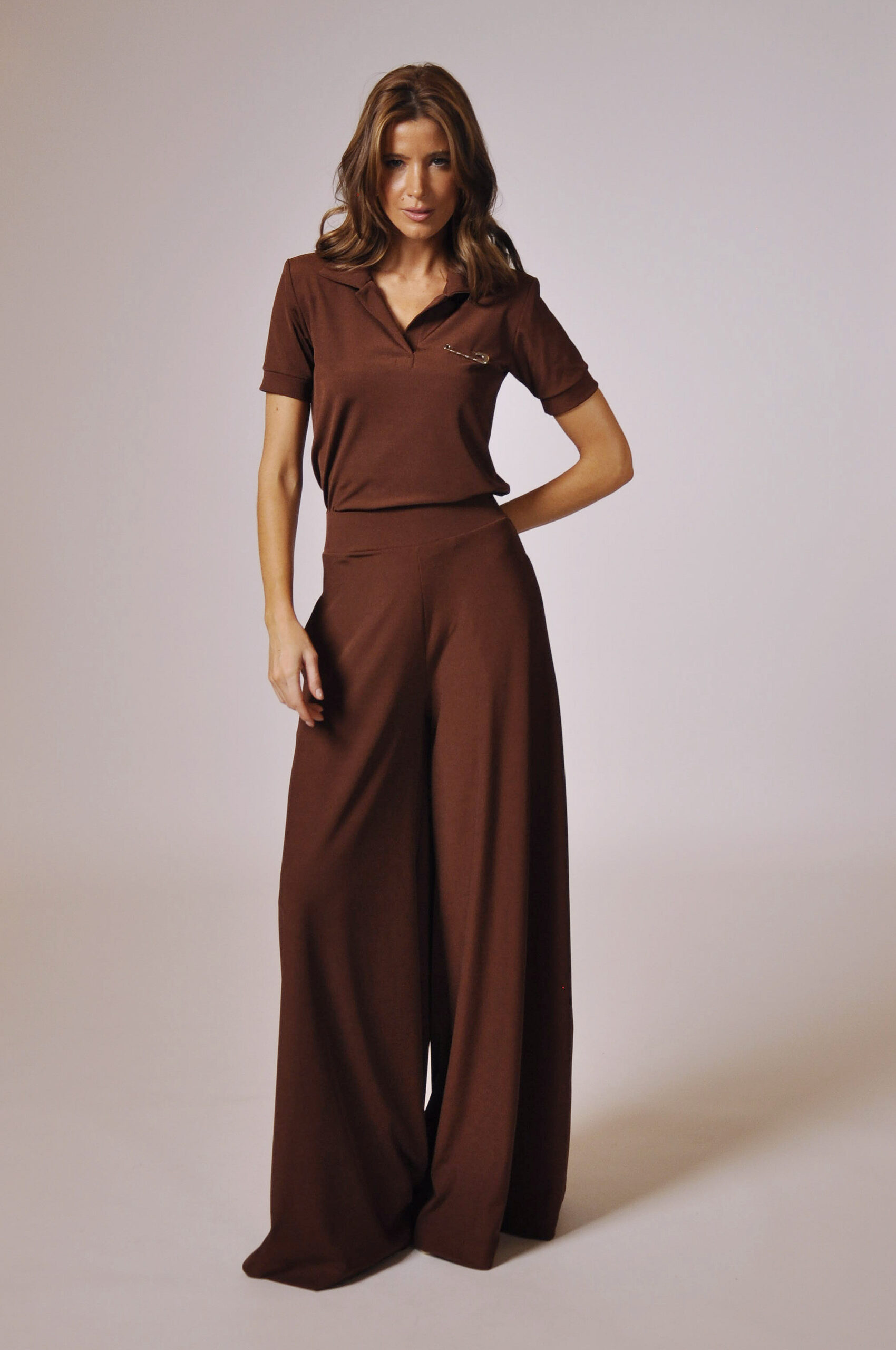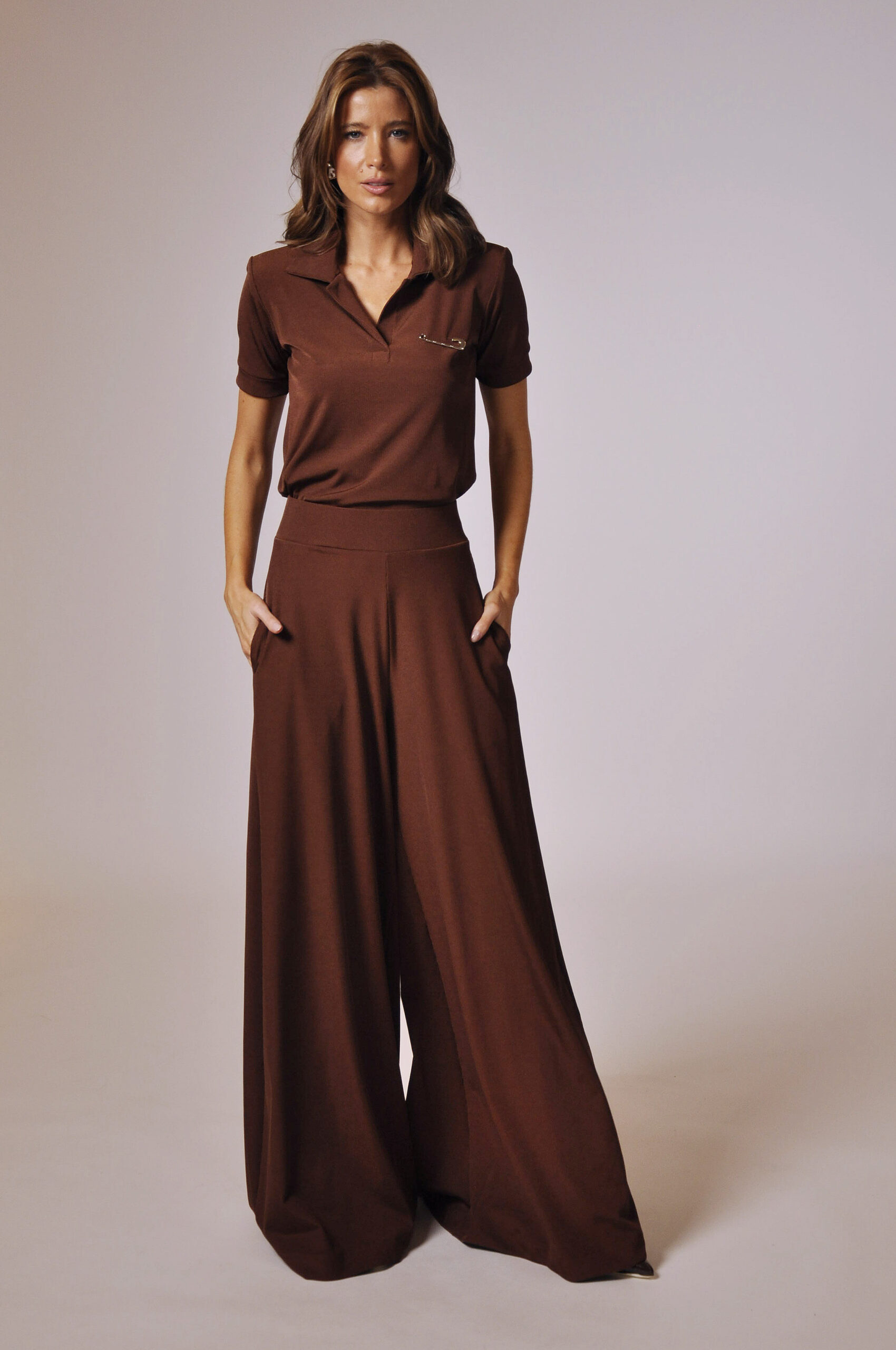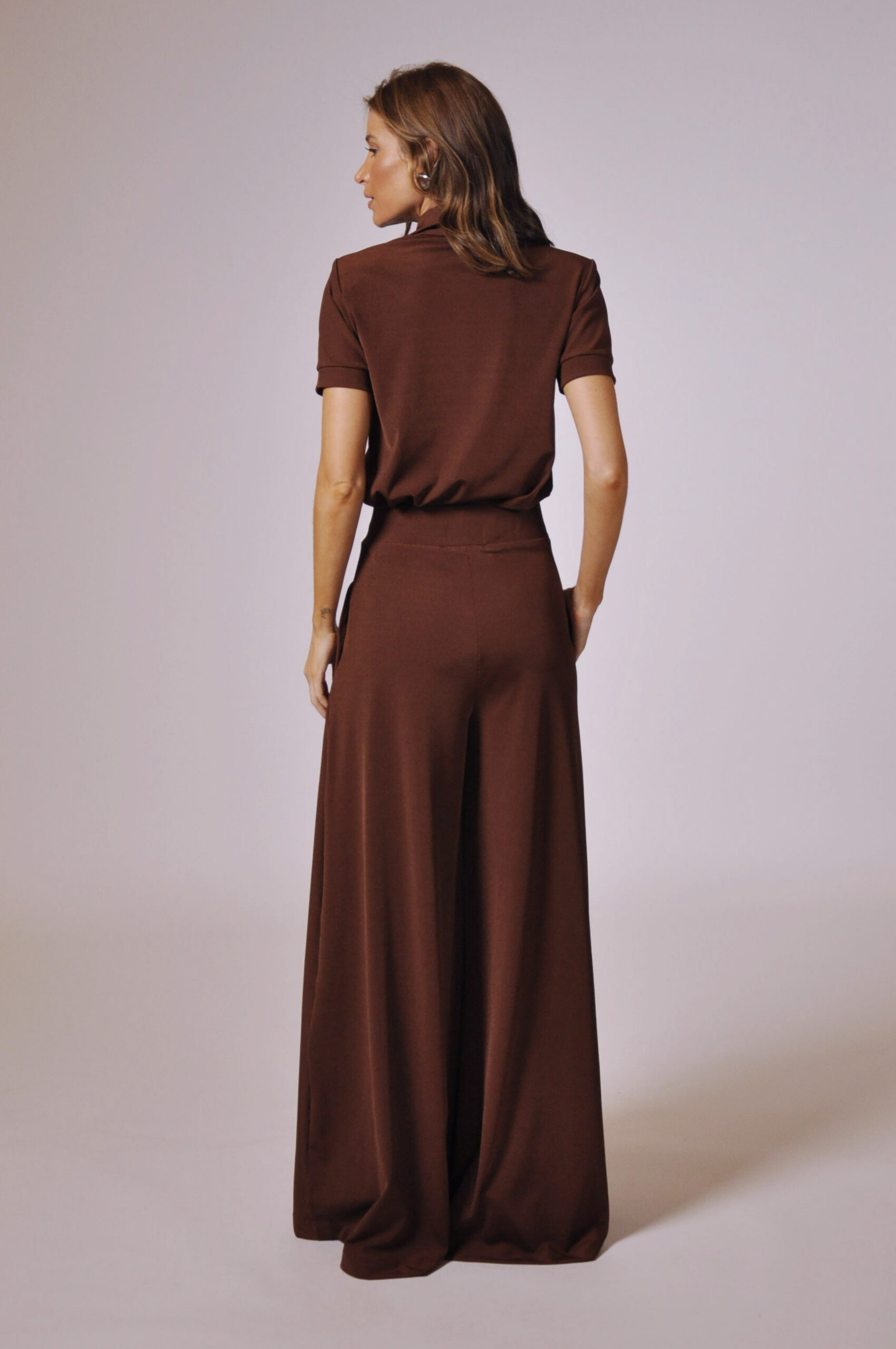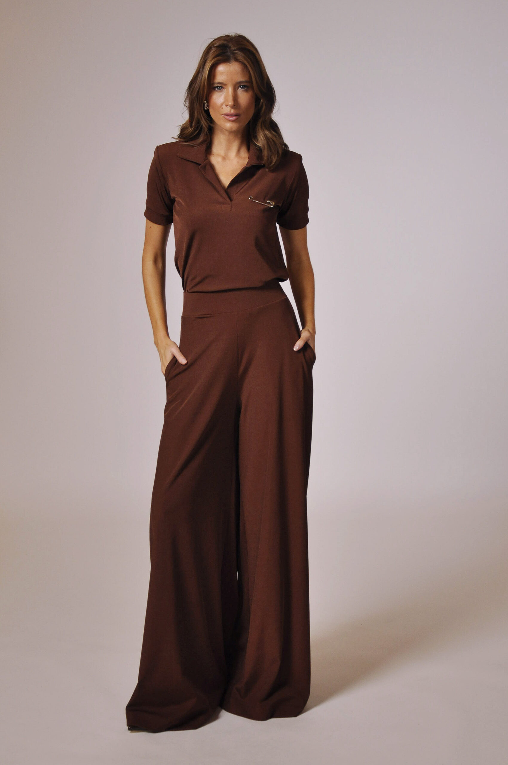 PANTALONA MANET COM BOLSOS E ELÁSTICO NO CÓS.