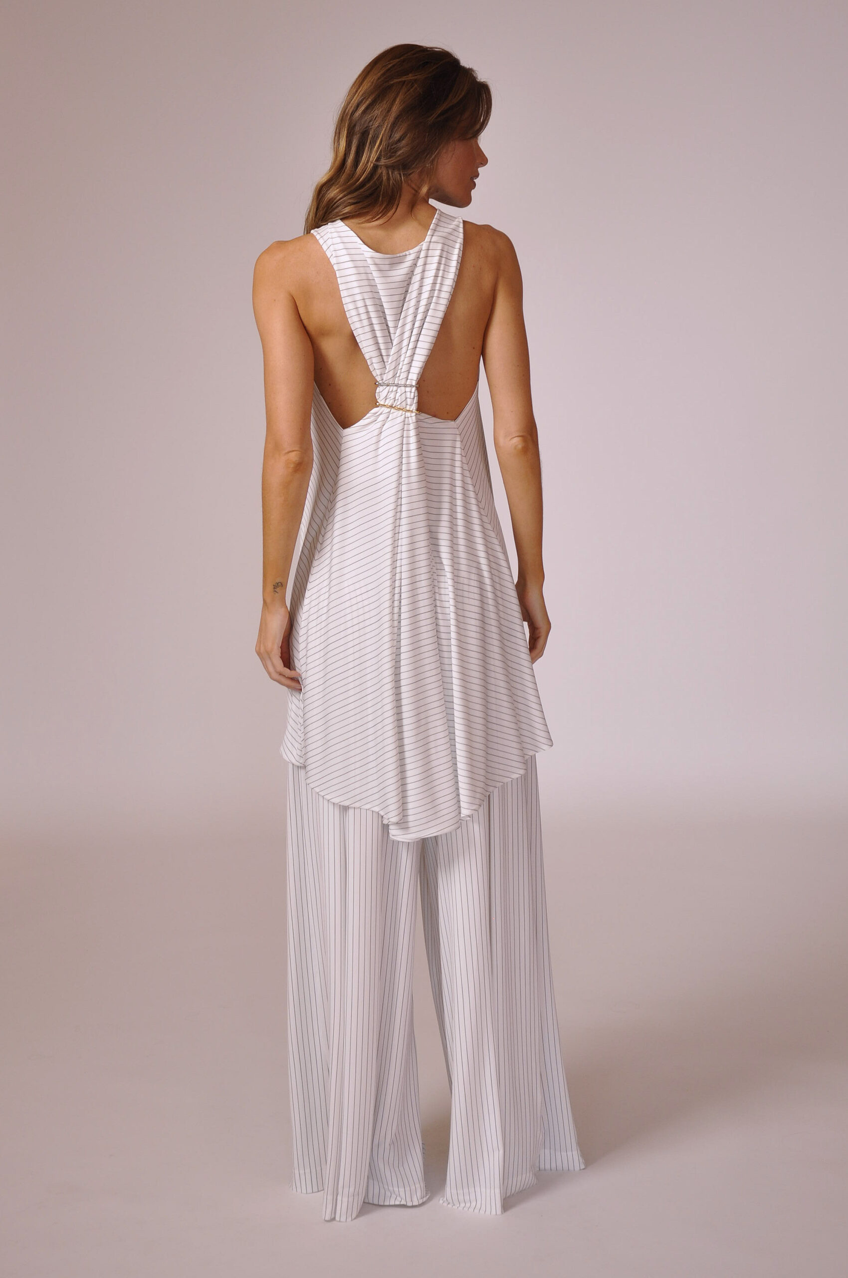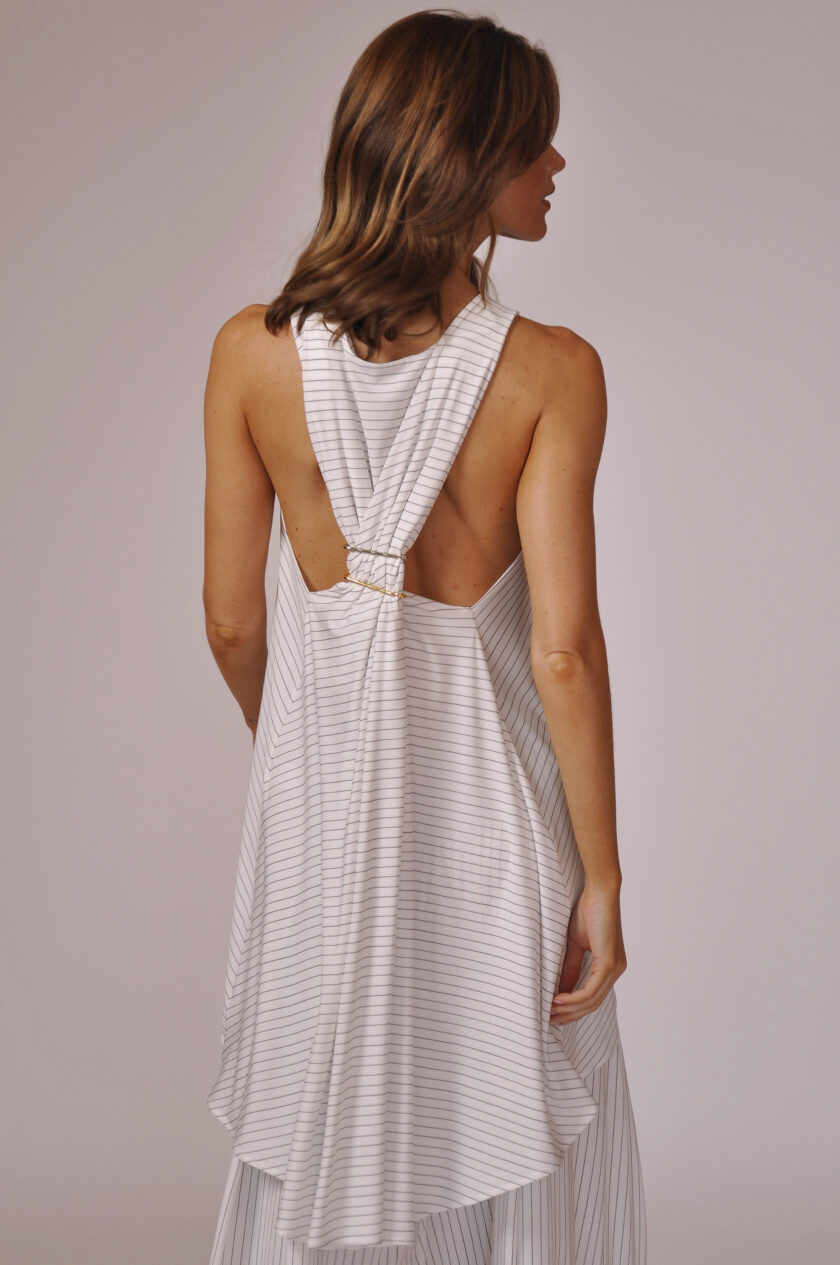 TOP BUDE CAVADO COM AS COSTAS TORCIDA COM ALFINETE EM METAL DOURADO