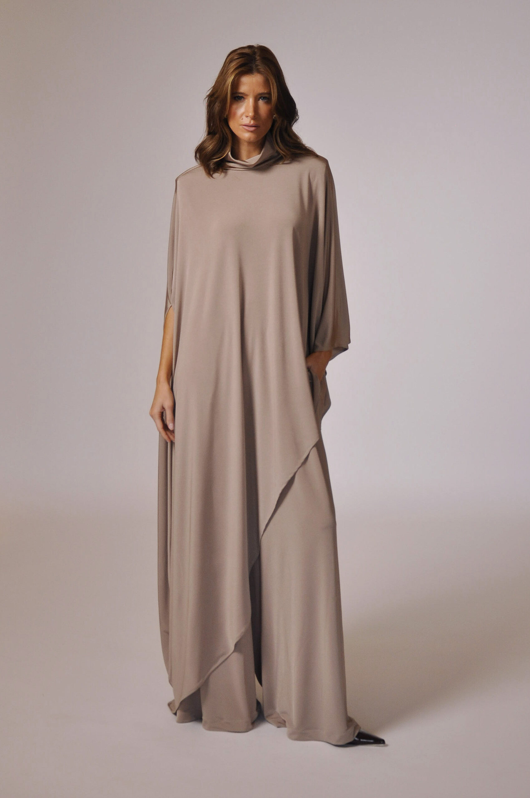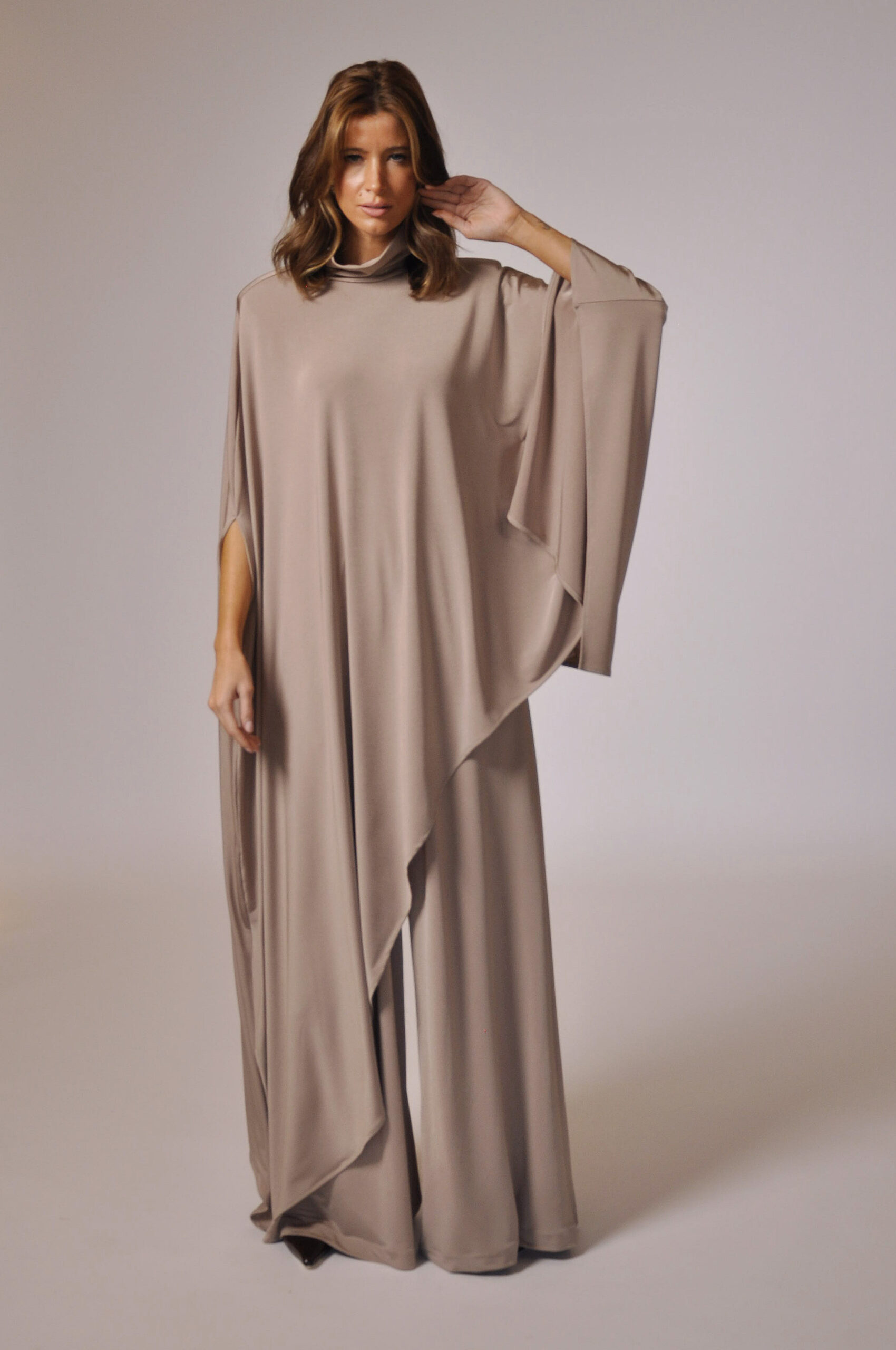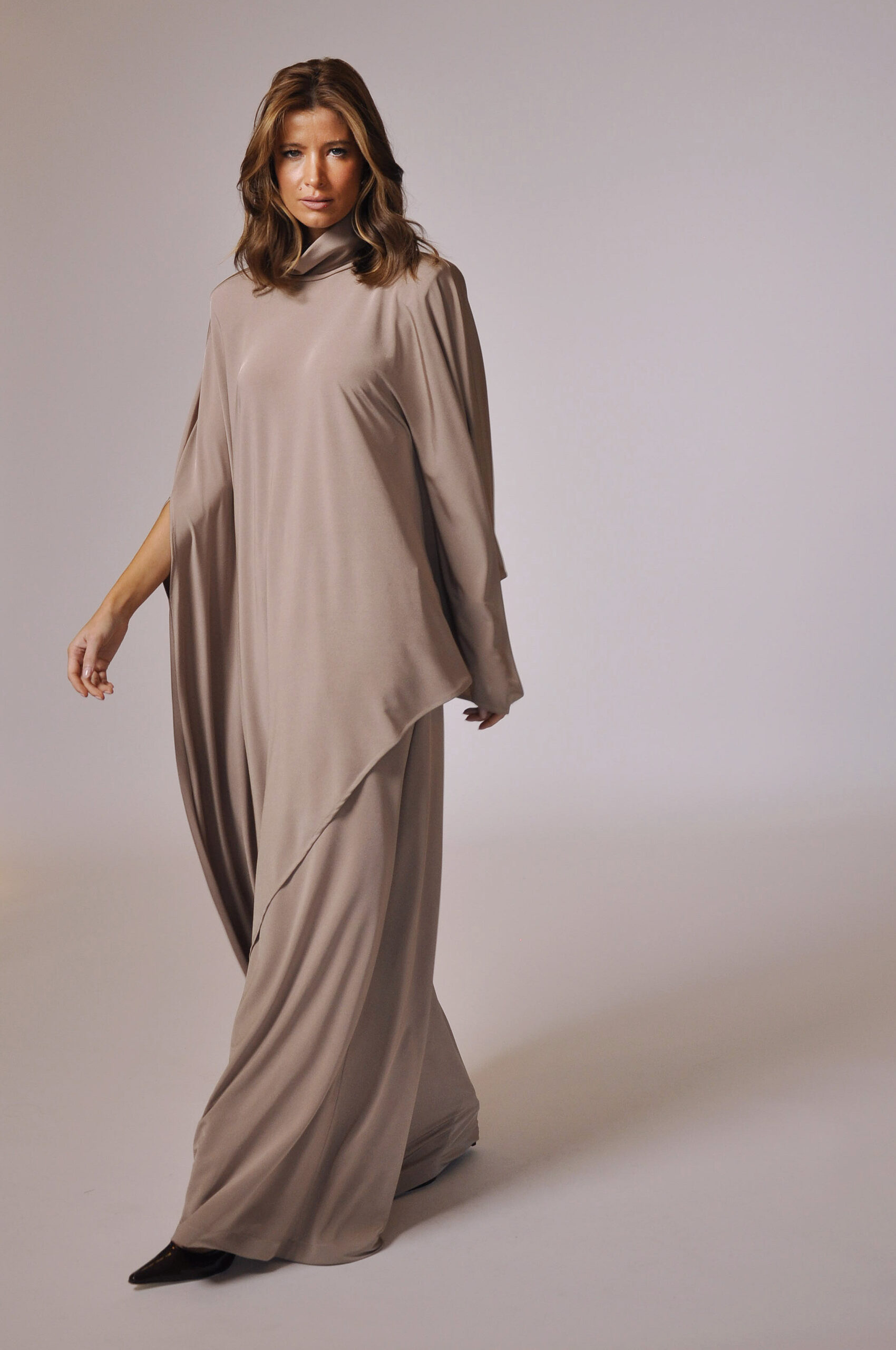 TOP SENA ASSIMÉTRICO, GOLA ALTA COM BOTÕES ENCAPADOS.