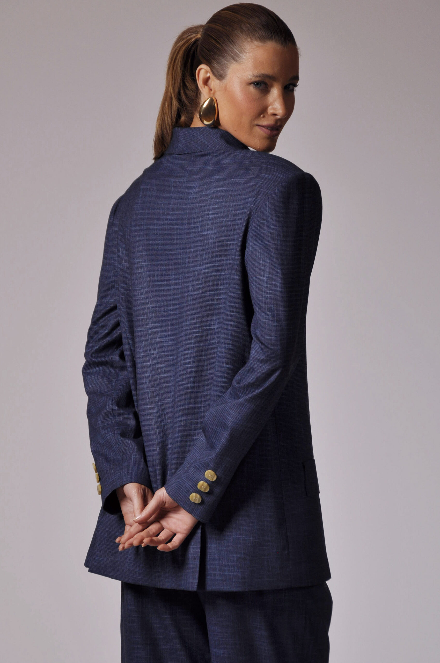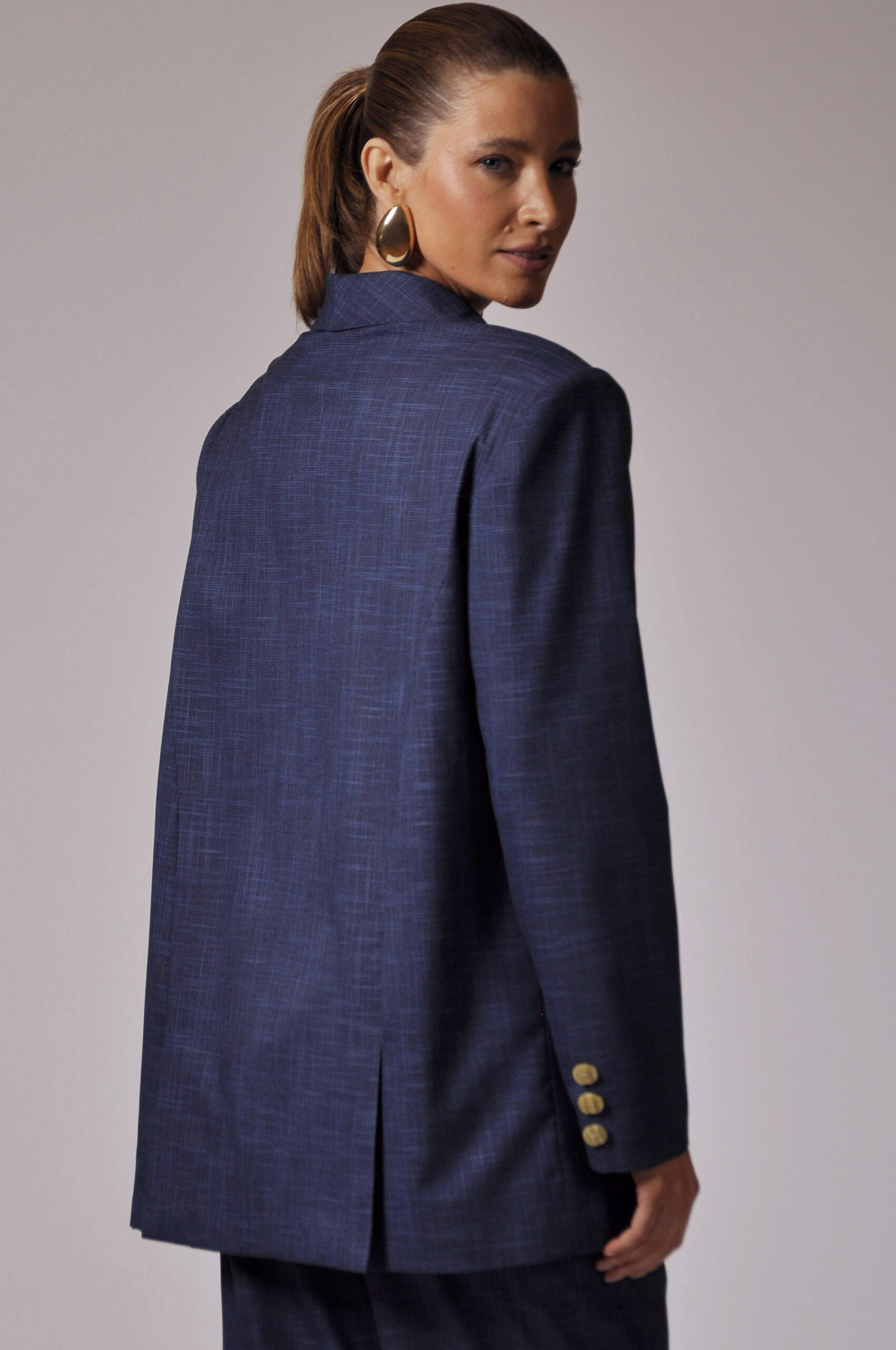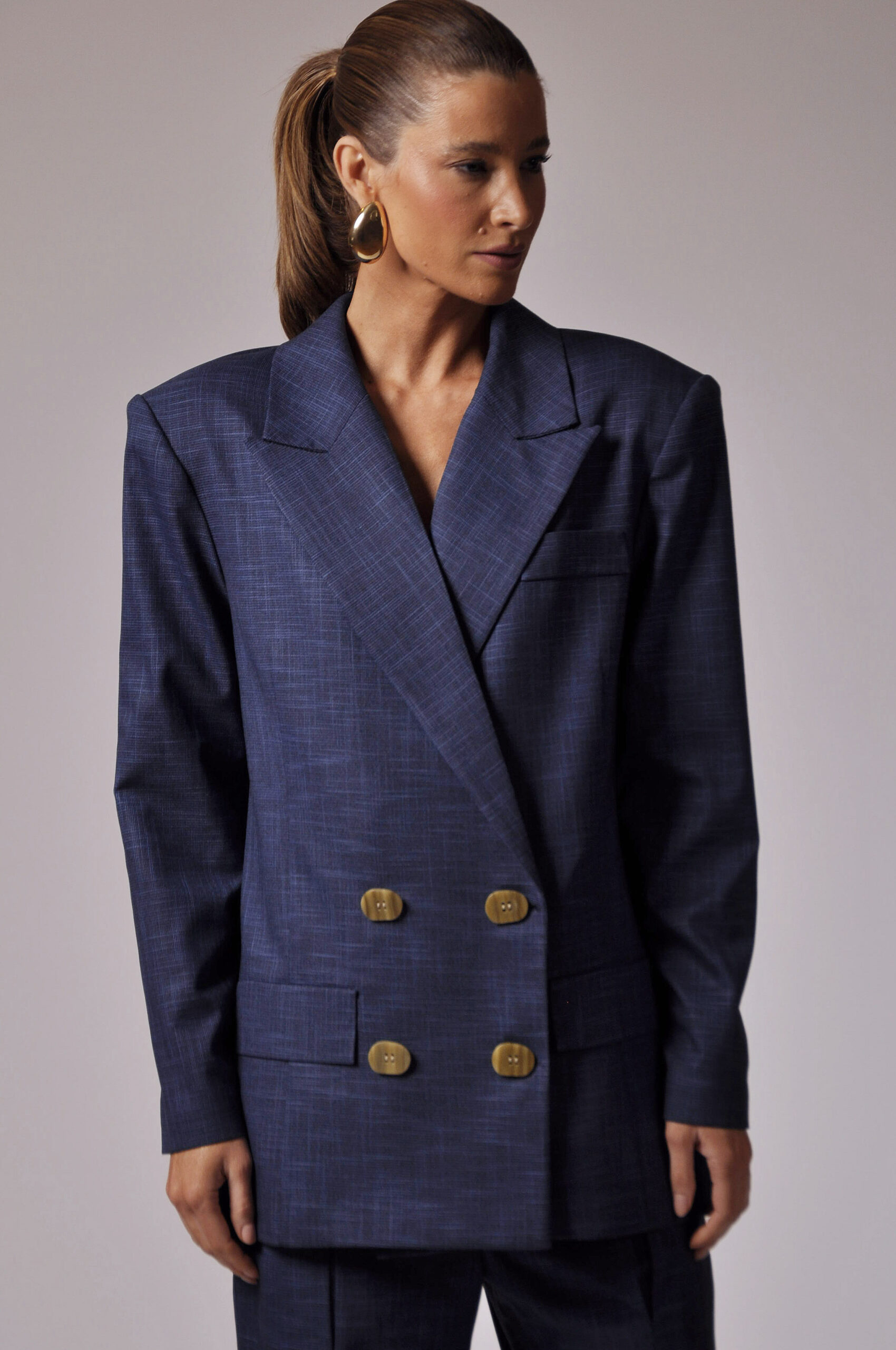 BLAZER JINA MANGA LONGA COM OMBREIRAS, TRANSPASSADO COM 4 BOTÕES.