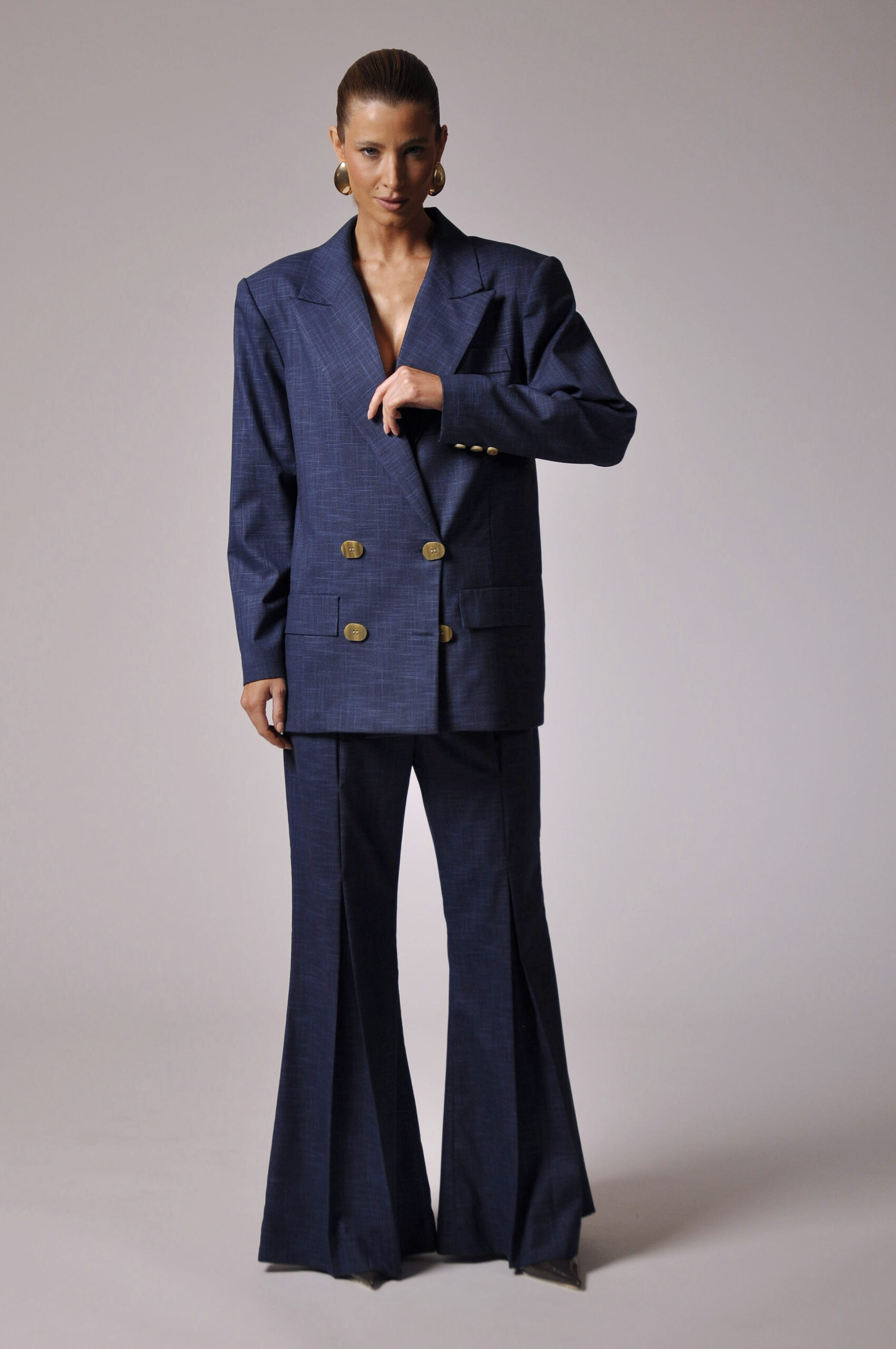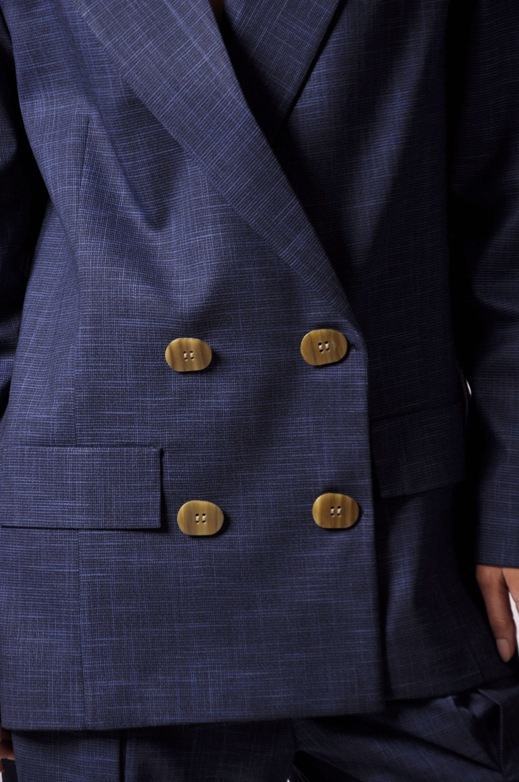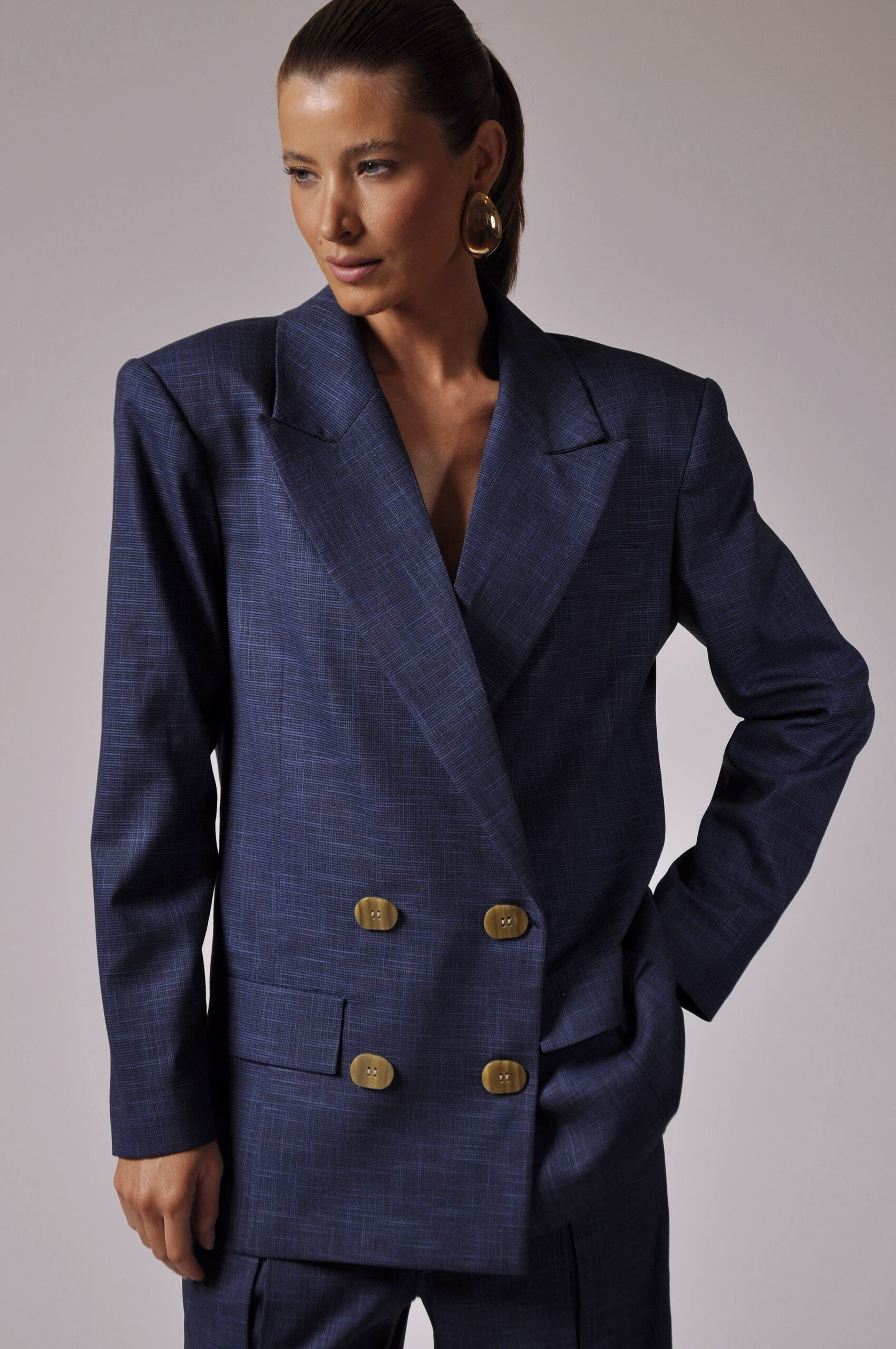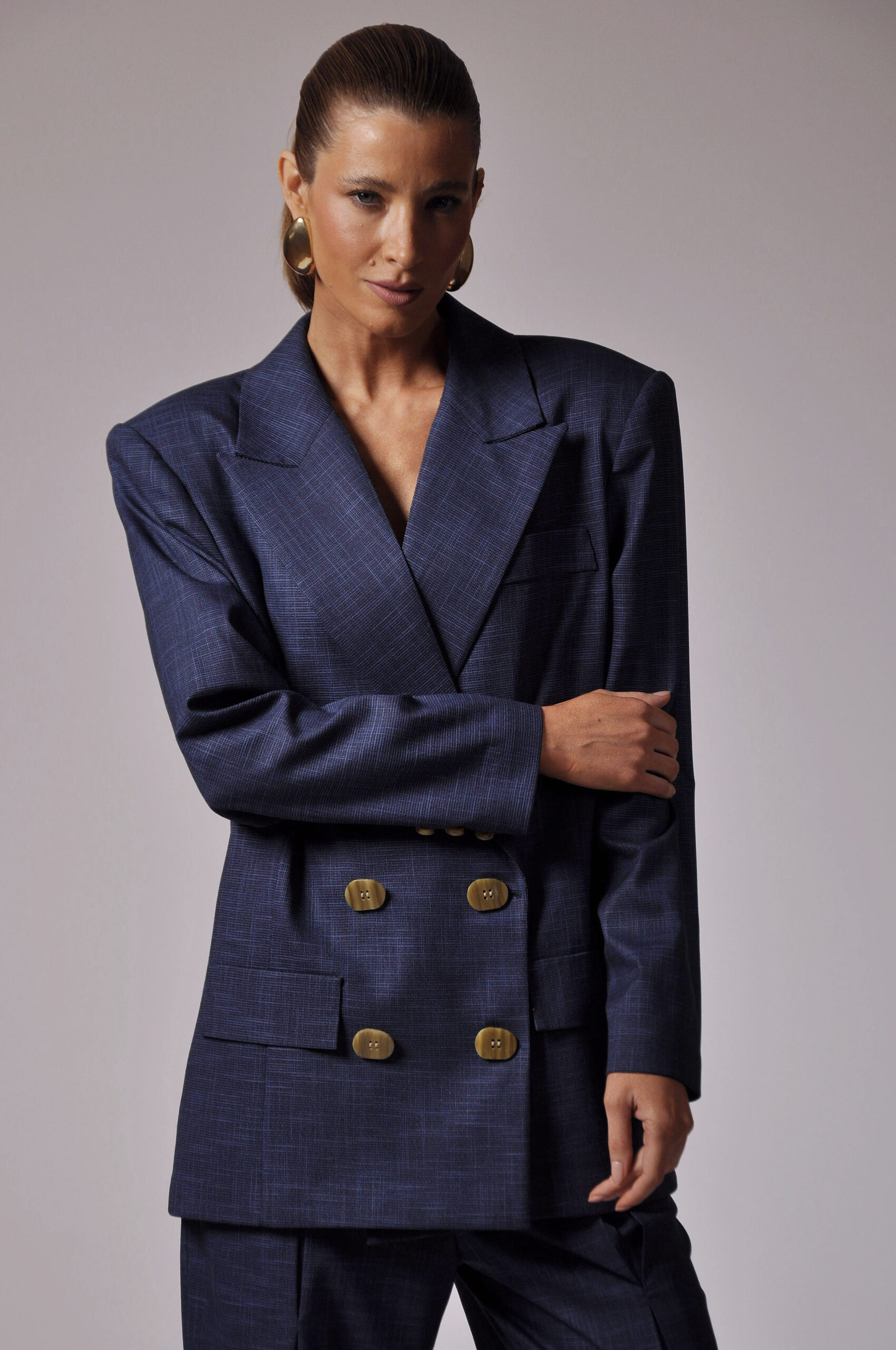 BLAZER JINA MANGA LONGA COM OMBREIRAS, TRANSPASSADO COM 4 BOTÕES.