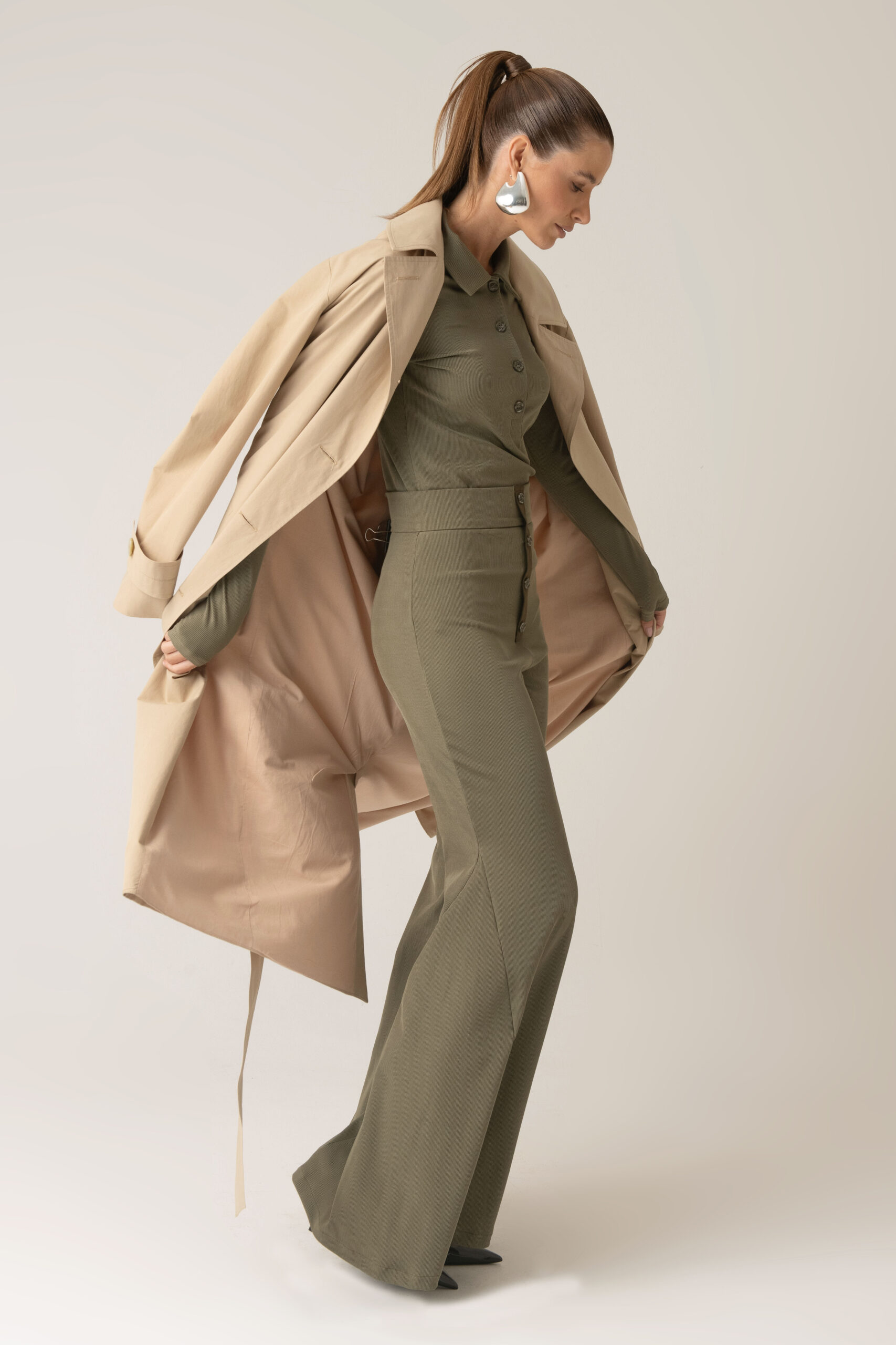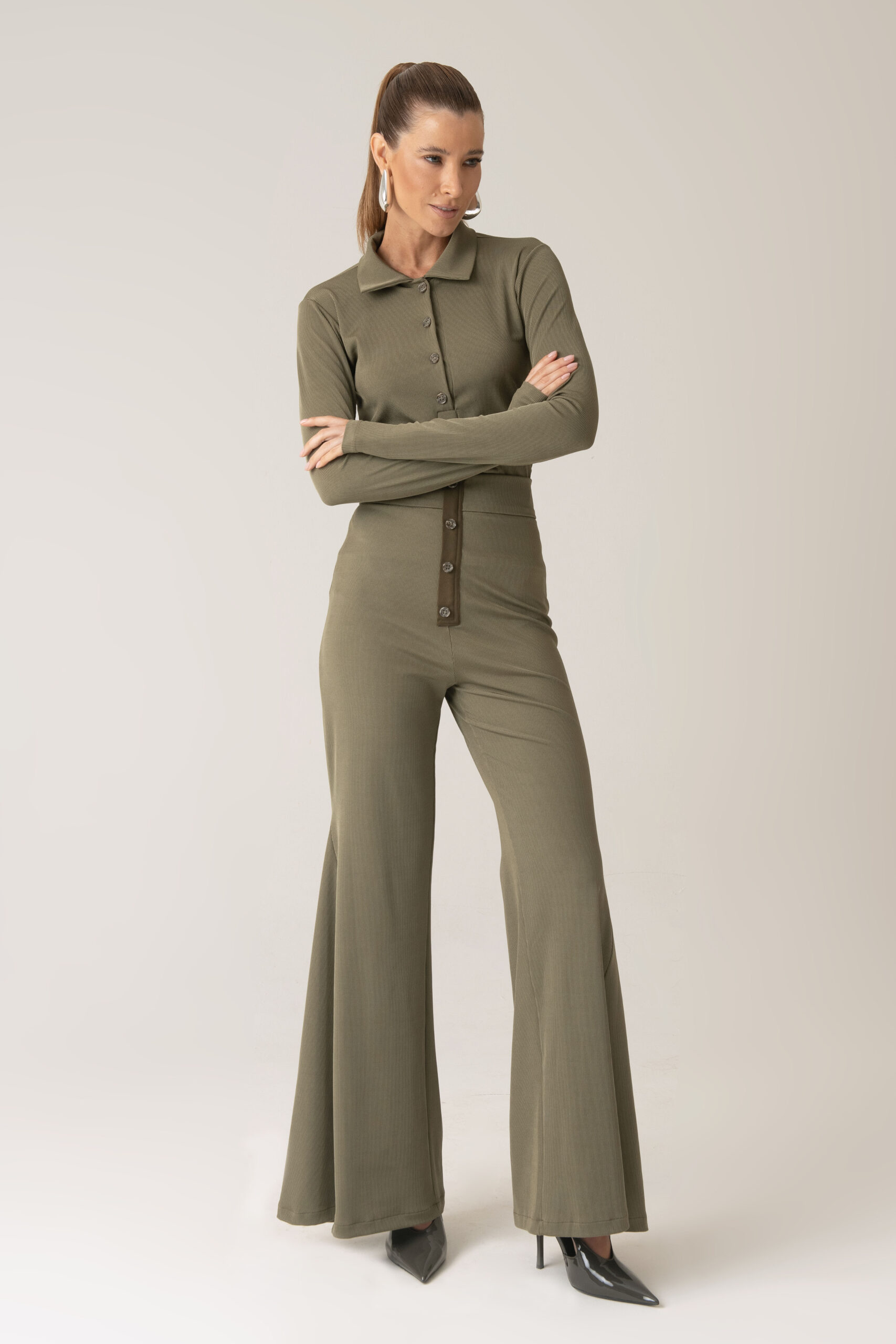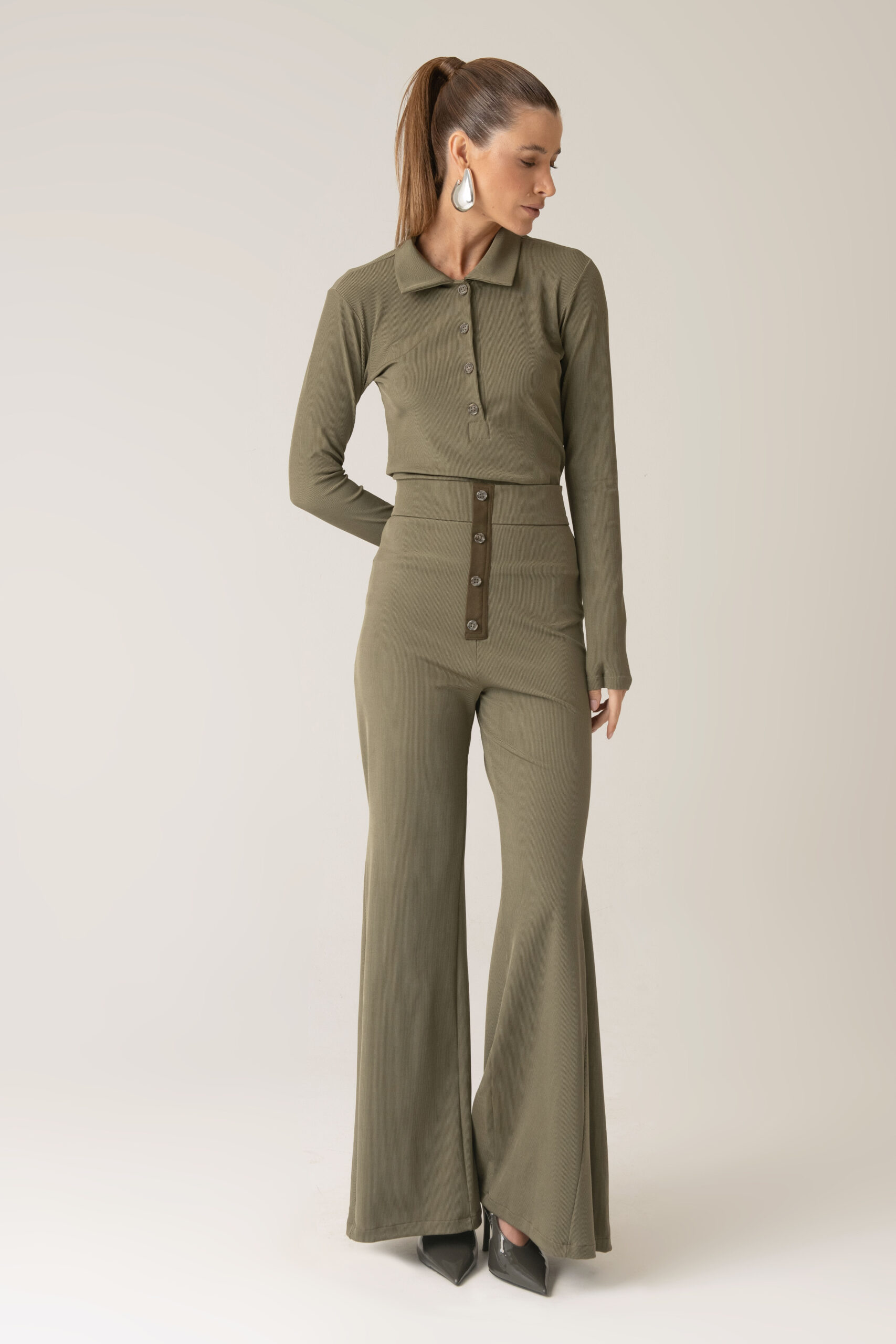 Possui gola polo e fechamento frontal por botões, trazendo um visual moderno e versátil.