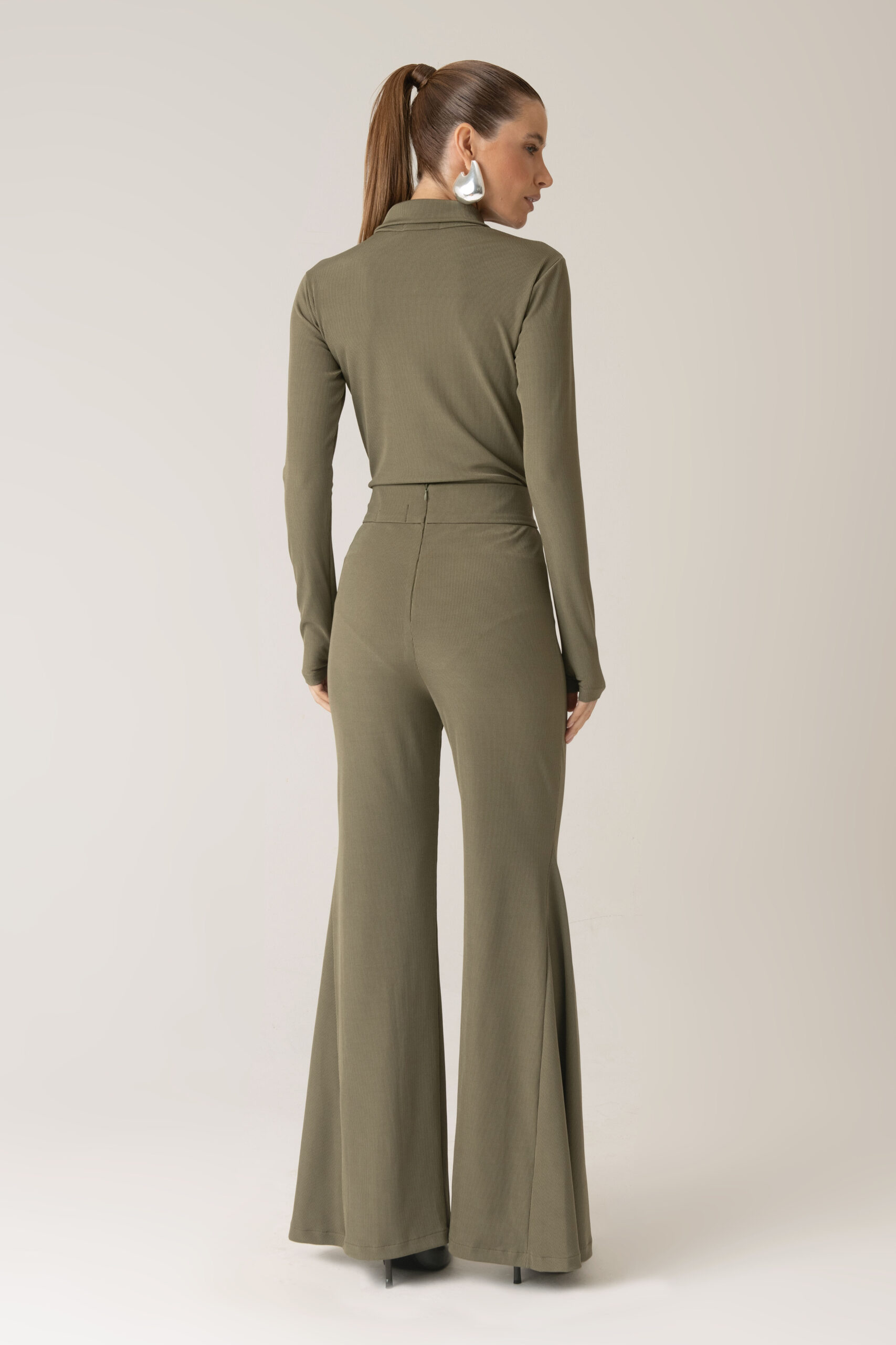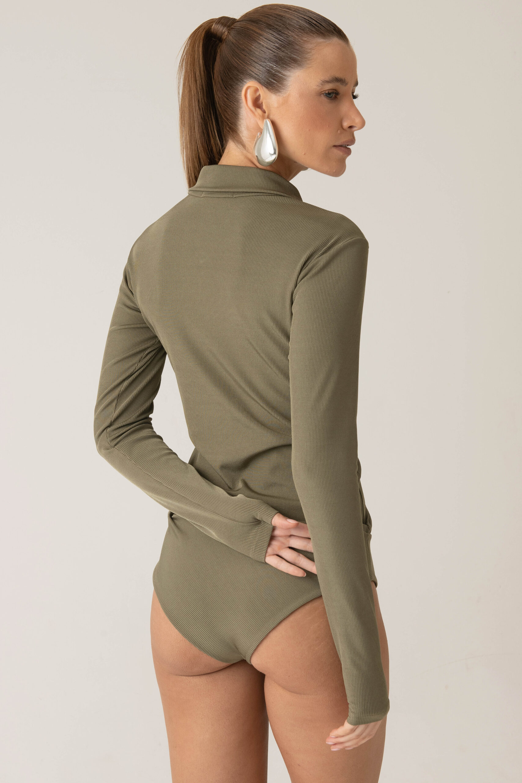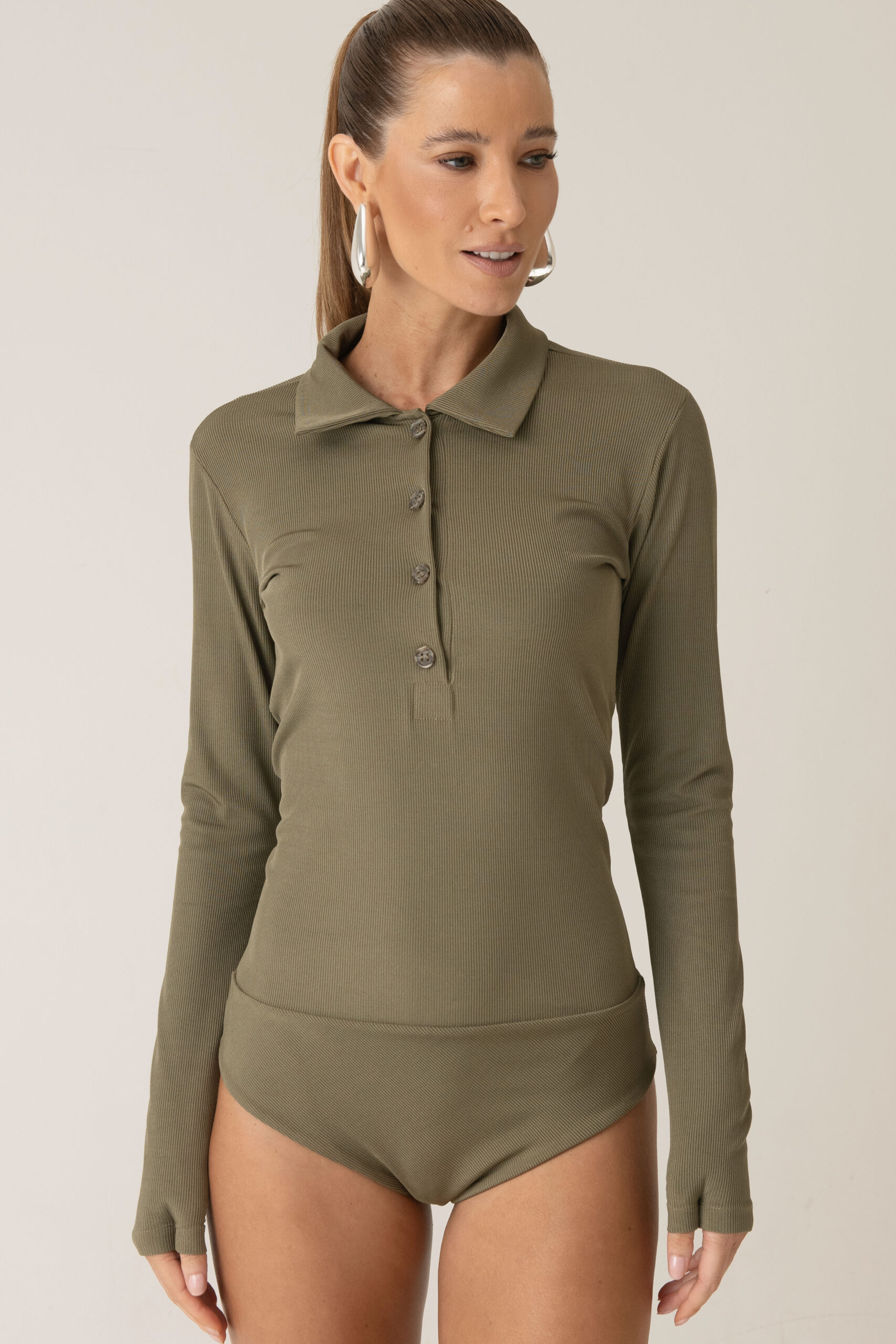 Body em malha canelada com toque macio e alta elasticidade, que se ajusta ao corpo com conforto.