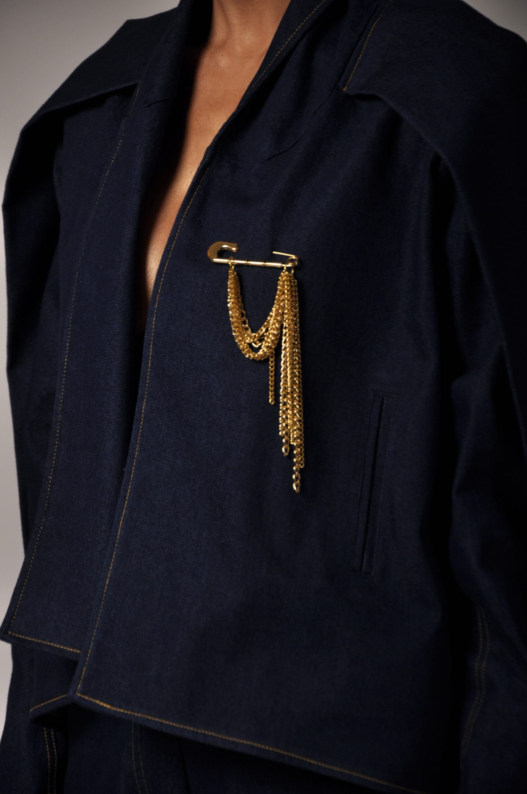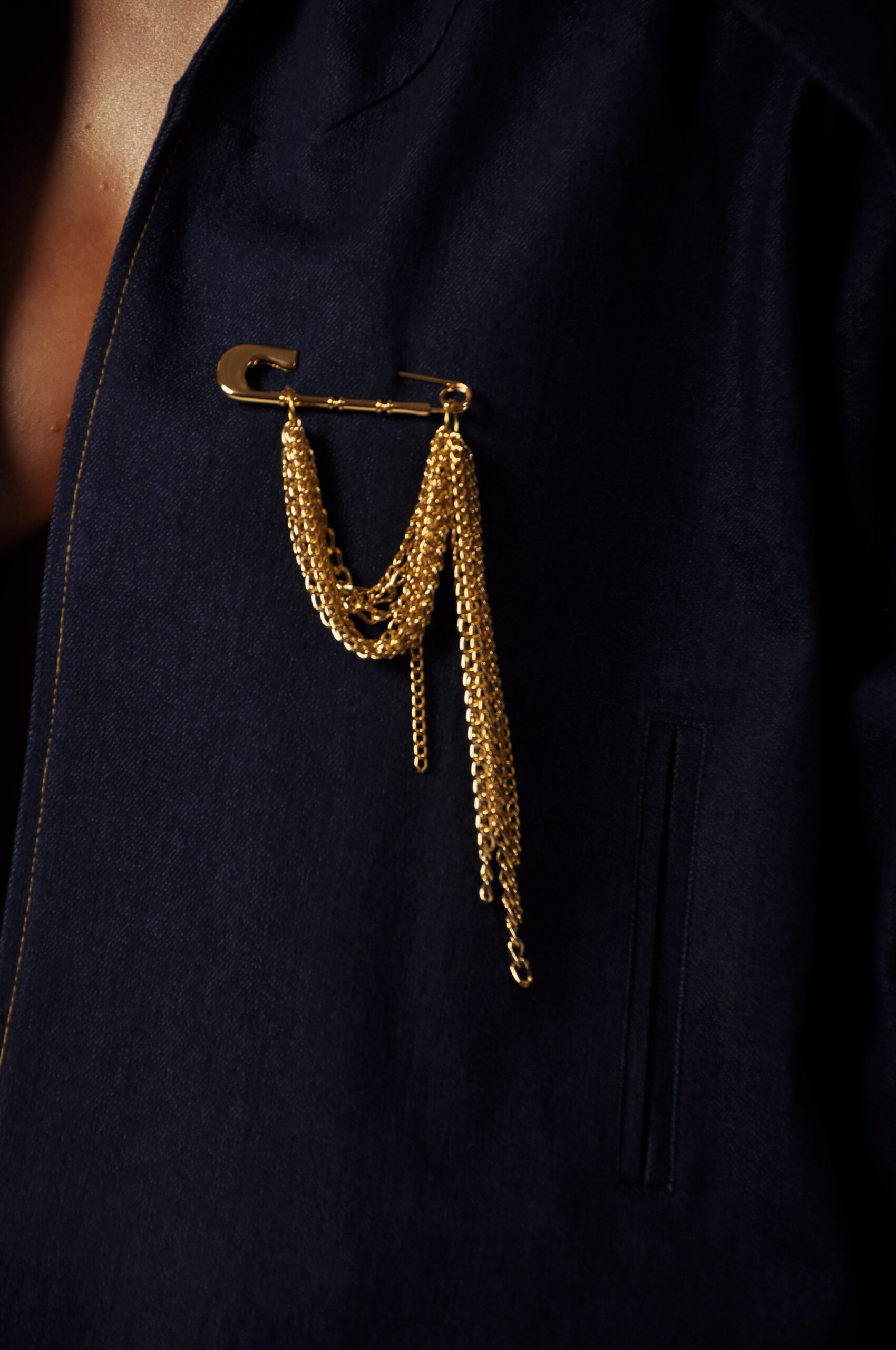 BROCHE IVY – ALFINETE COM CORRENTES EM DOURADO.