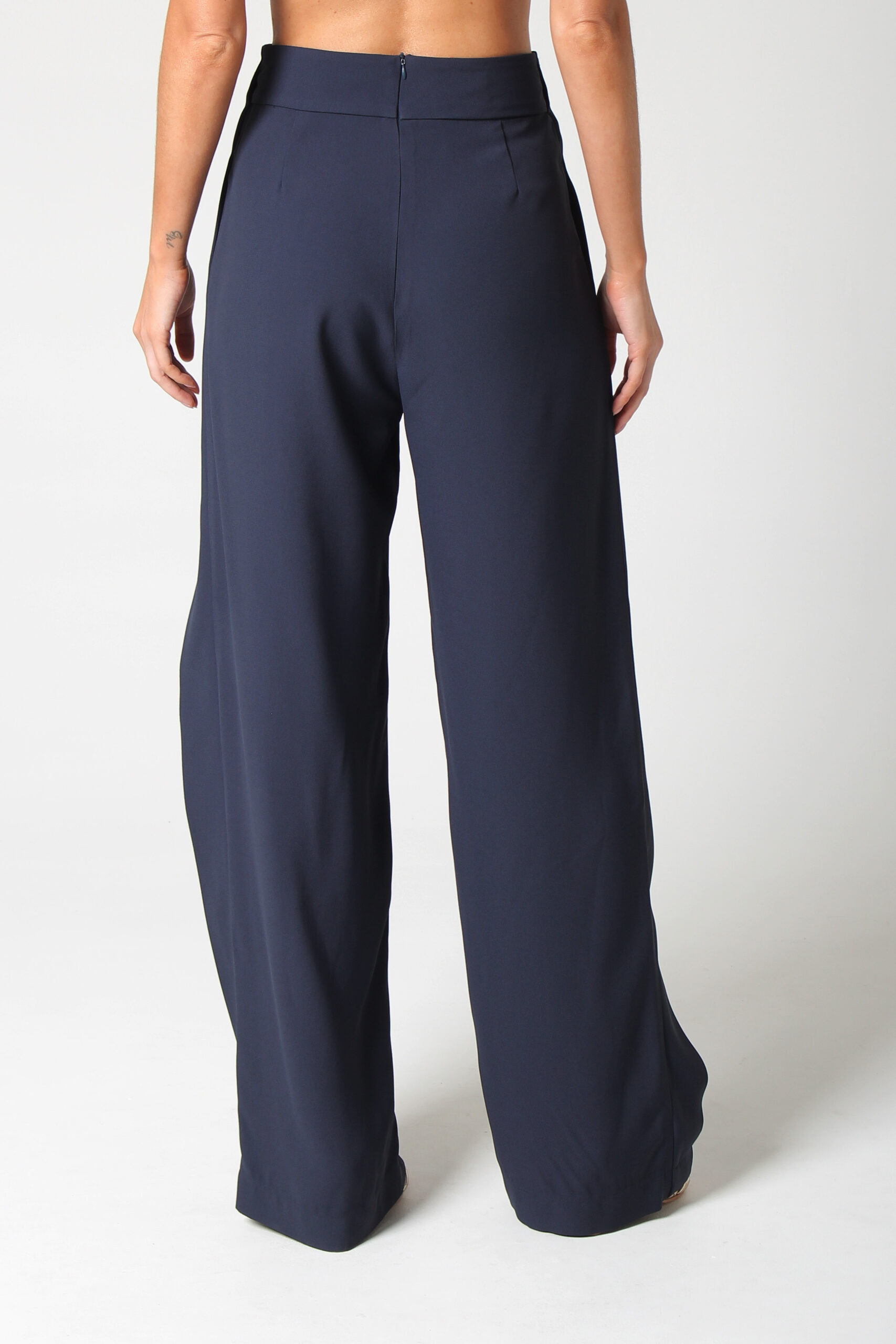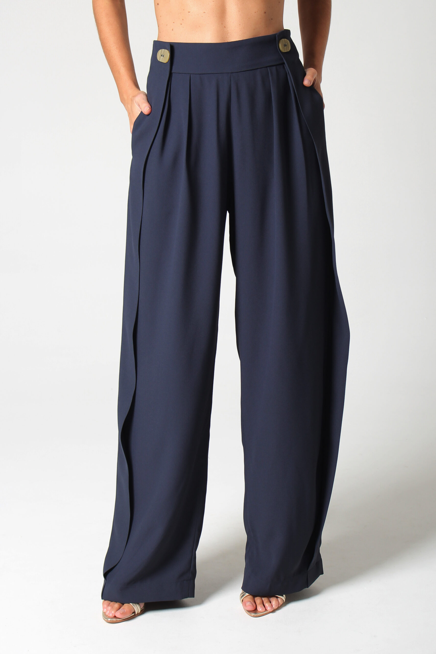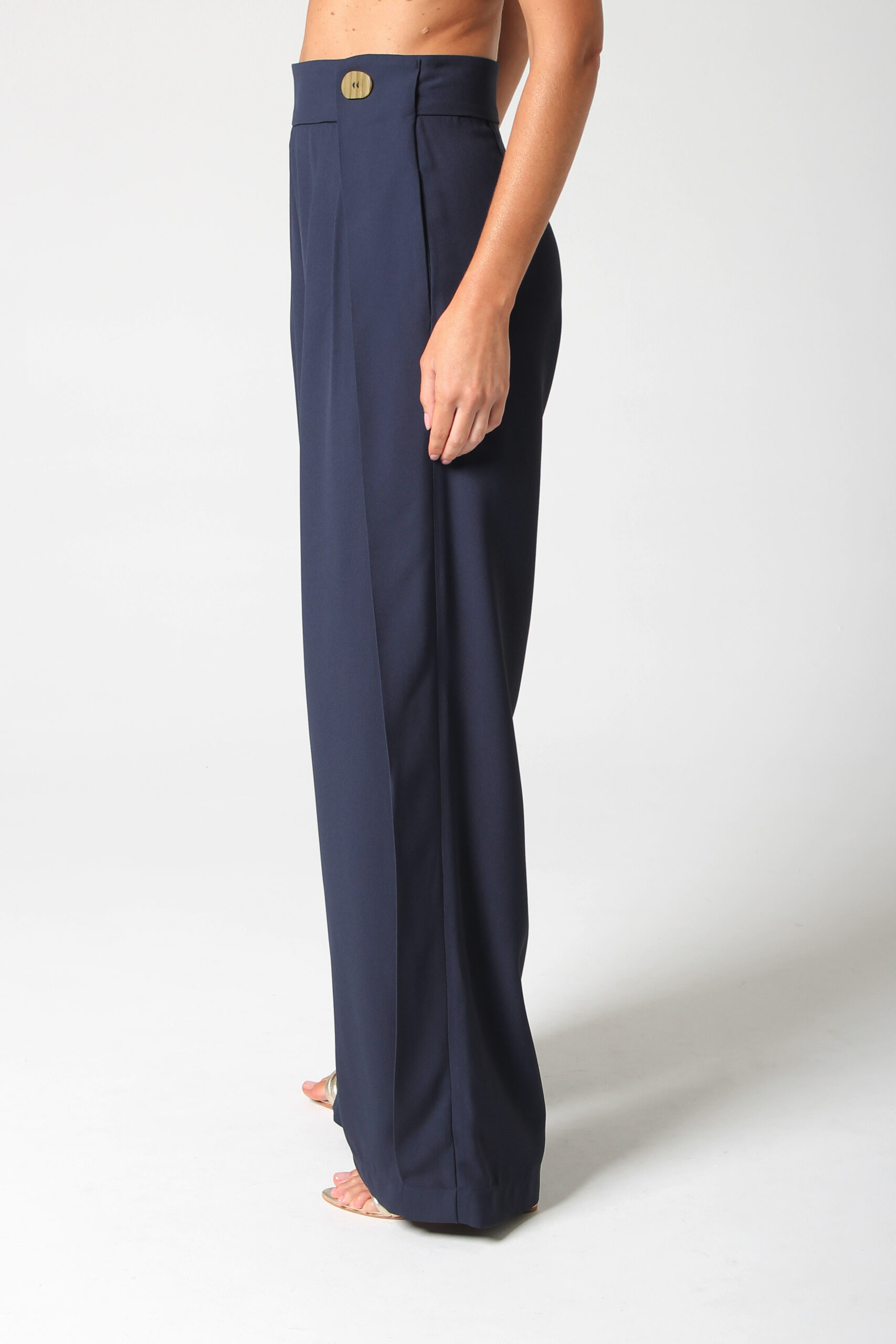 CALÇA AVALON RETA COM DETALHE NA LATERAL, FECHAMENTO POSTERIOR EM ZÍPER E BOTÃO NAS LATERAIS.