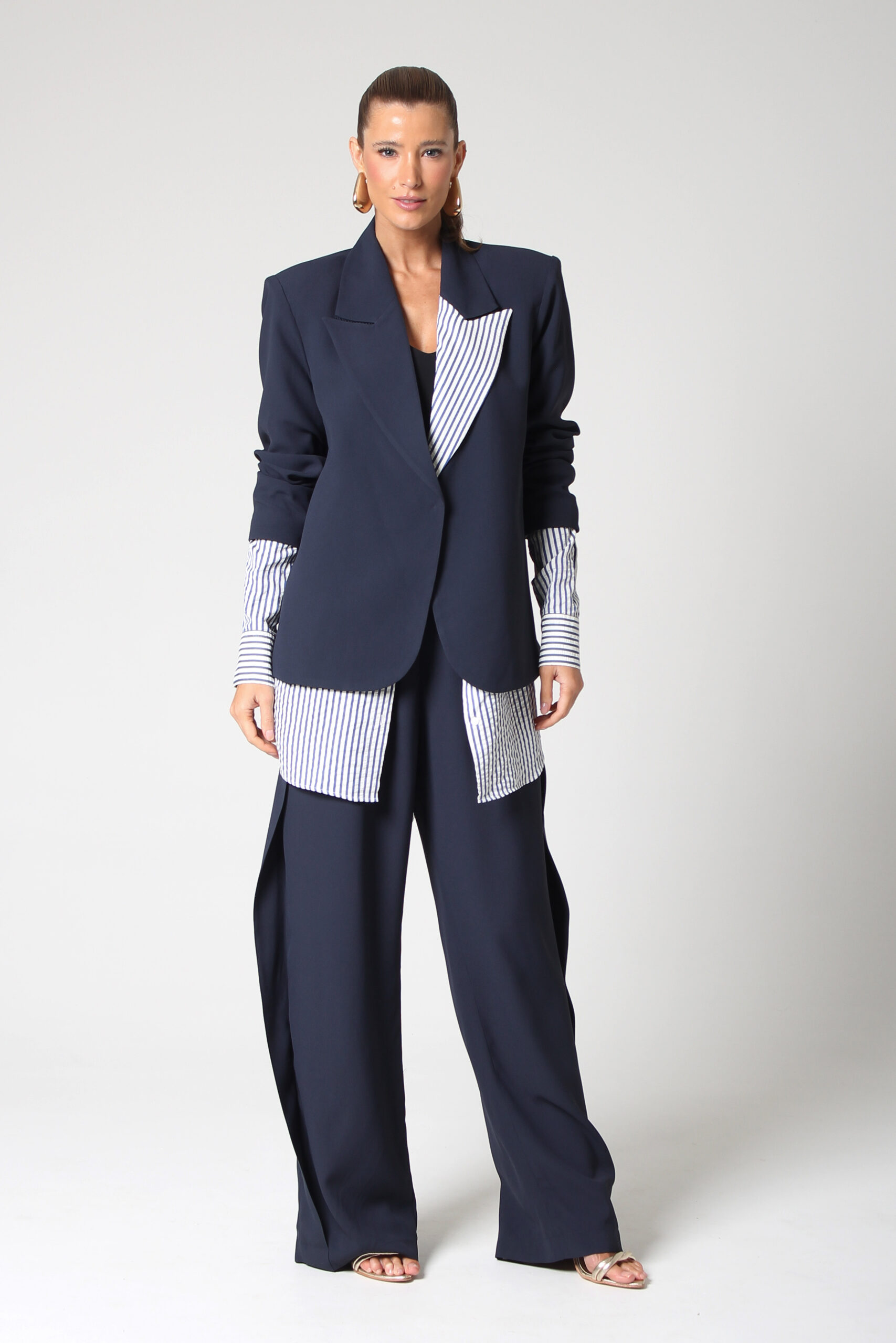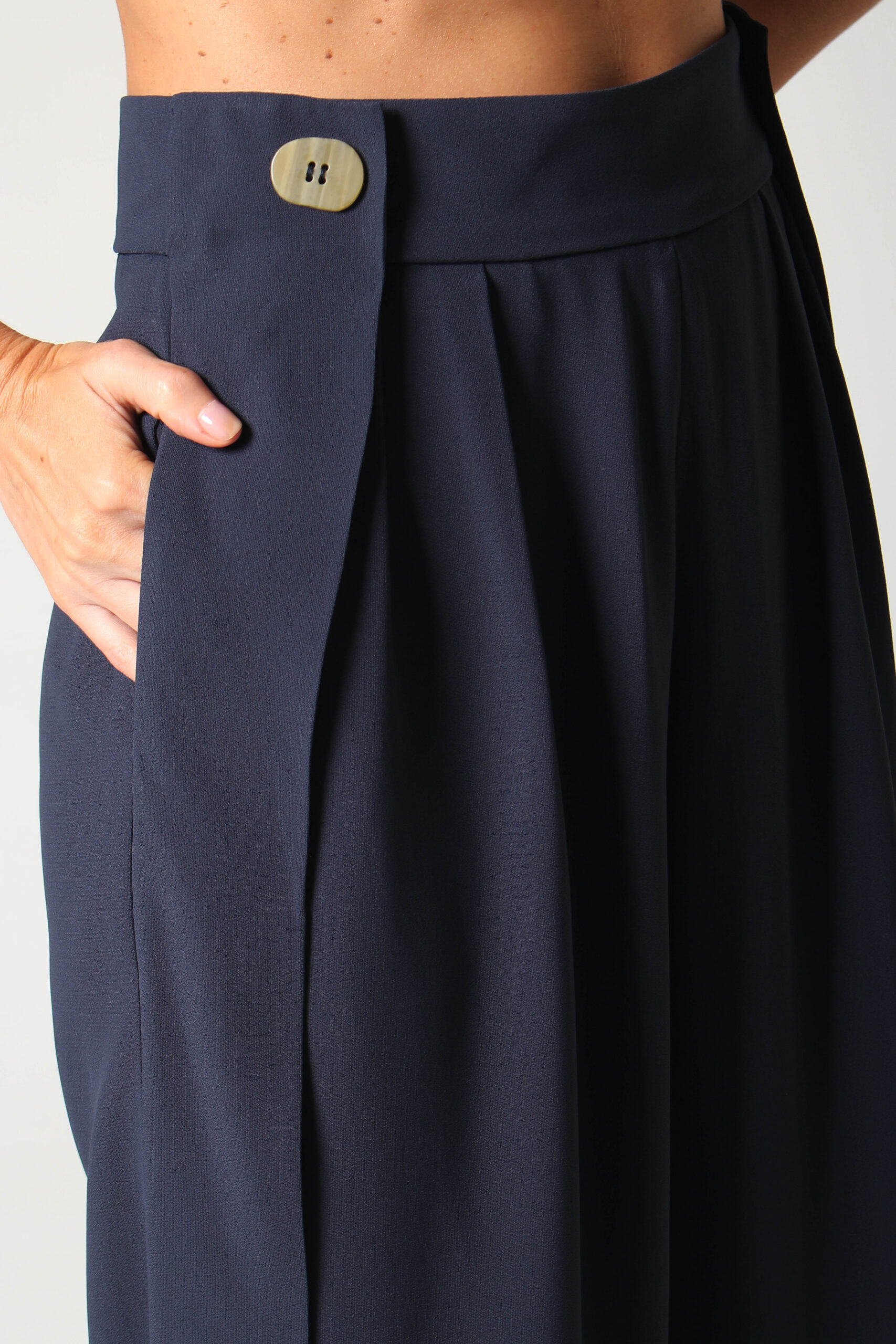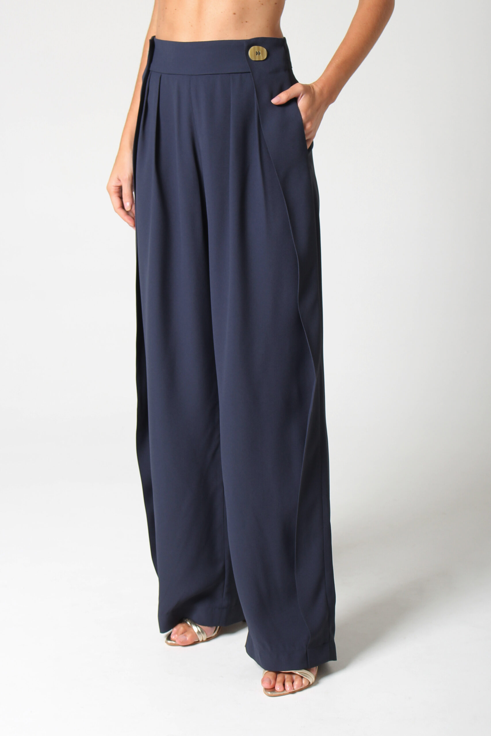CALÇA AVALON RETA COM DETALHE NA LATERAL, FECHAMENTO POSTERIOR EM ZÍPER E BOTÃO NAS LATERAIS.
