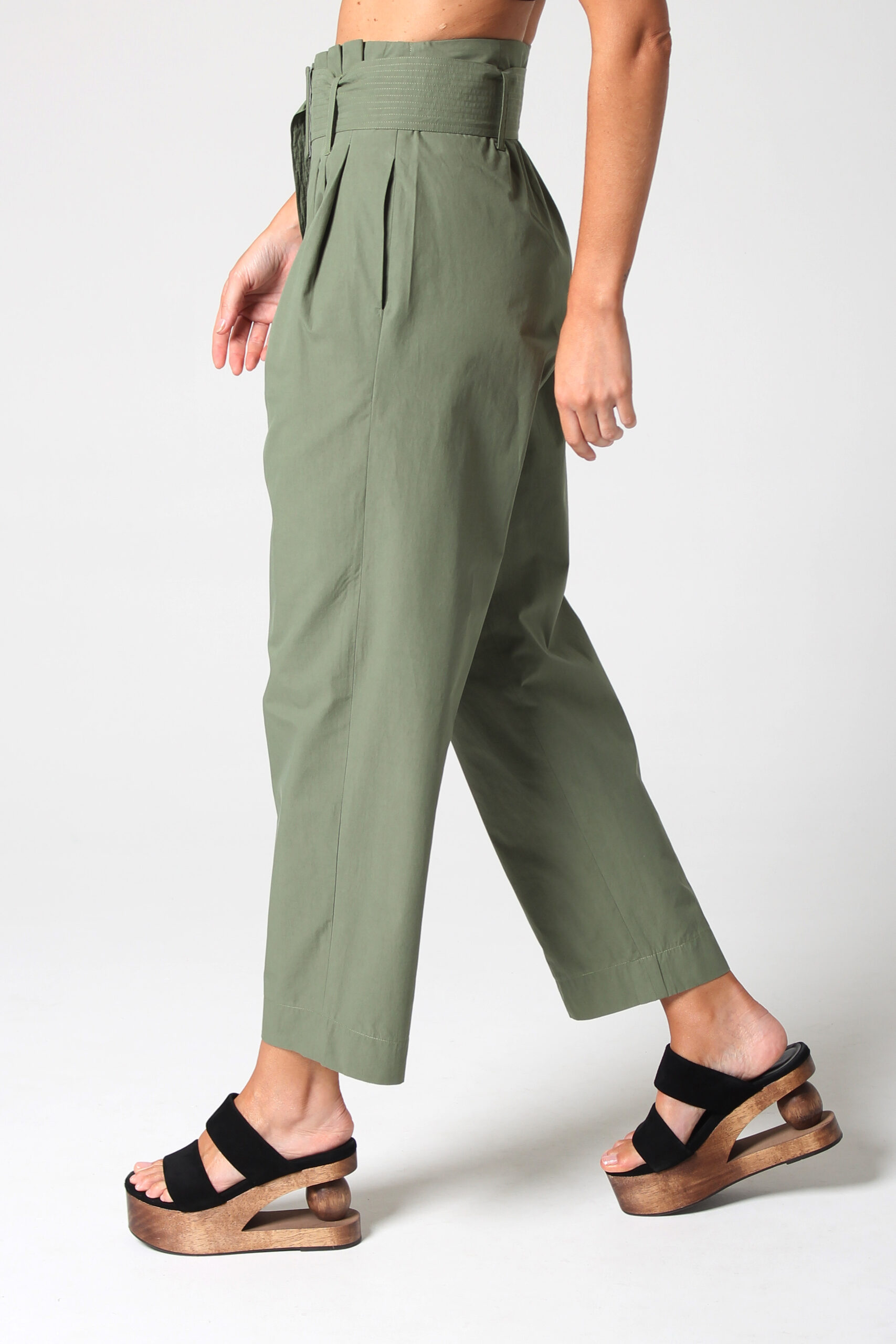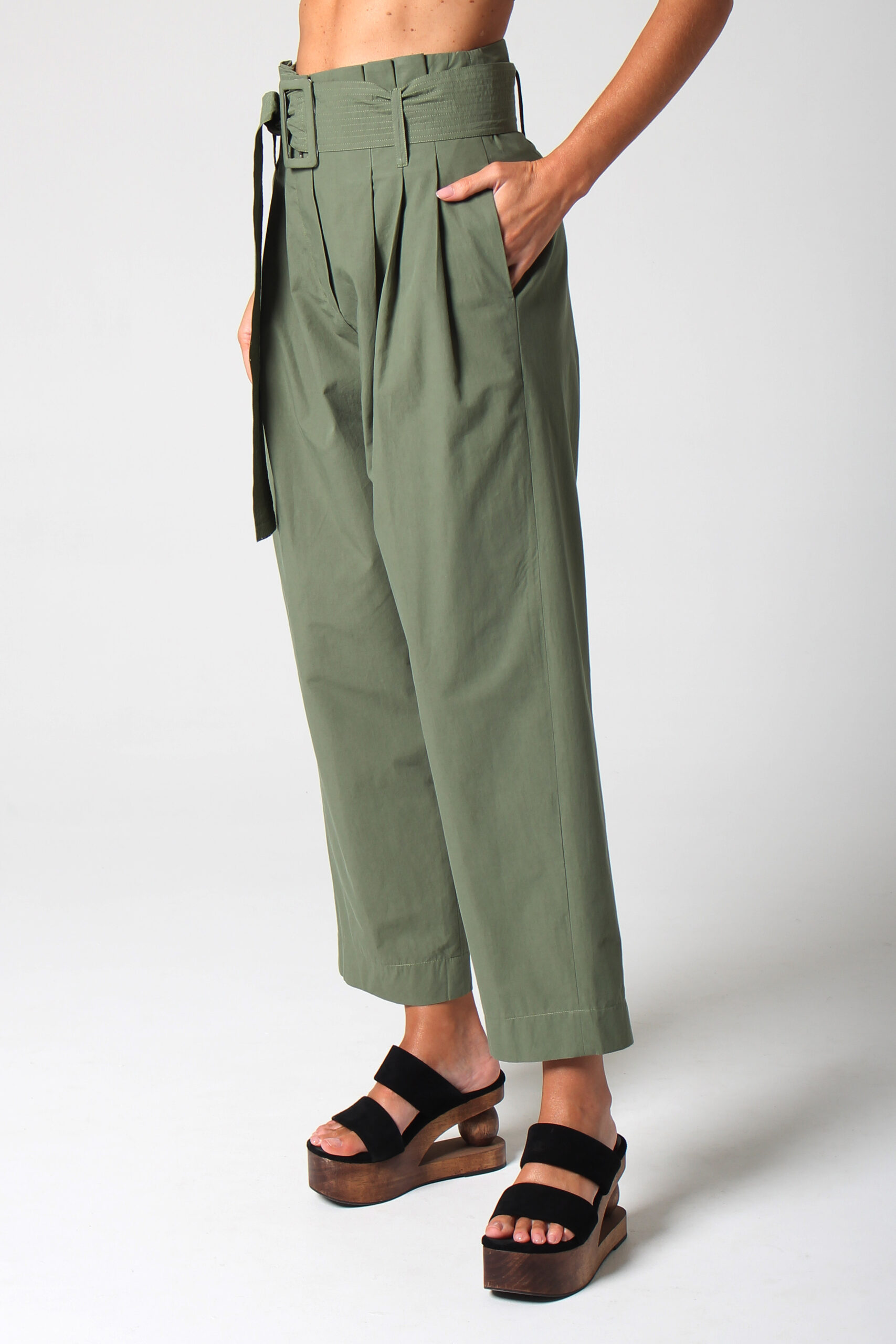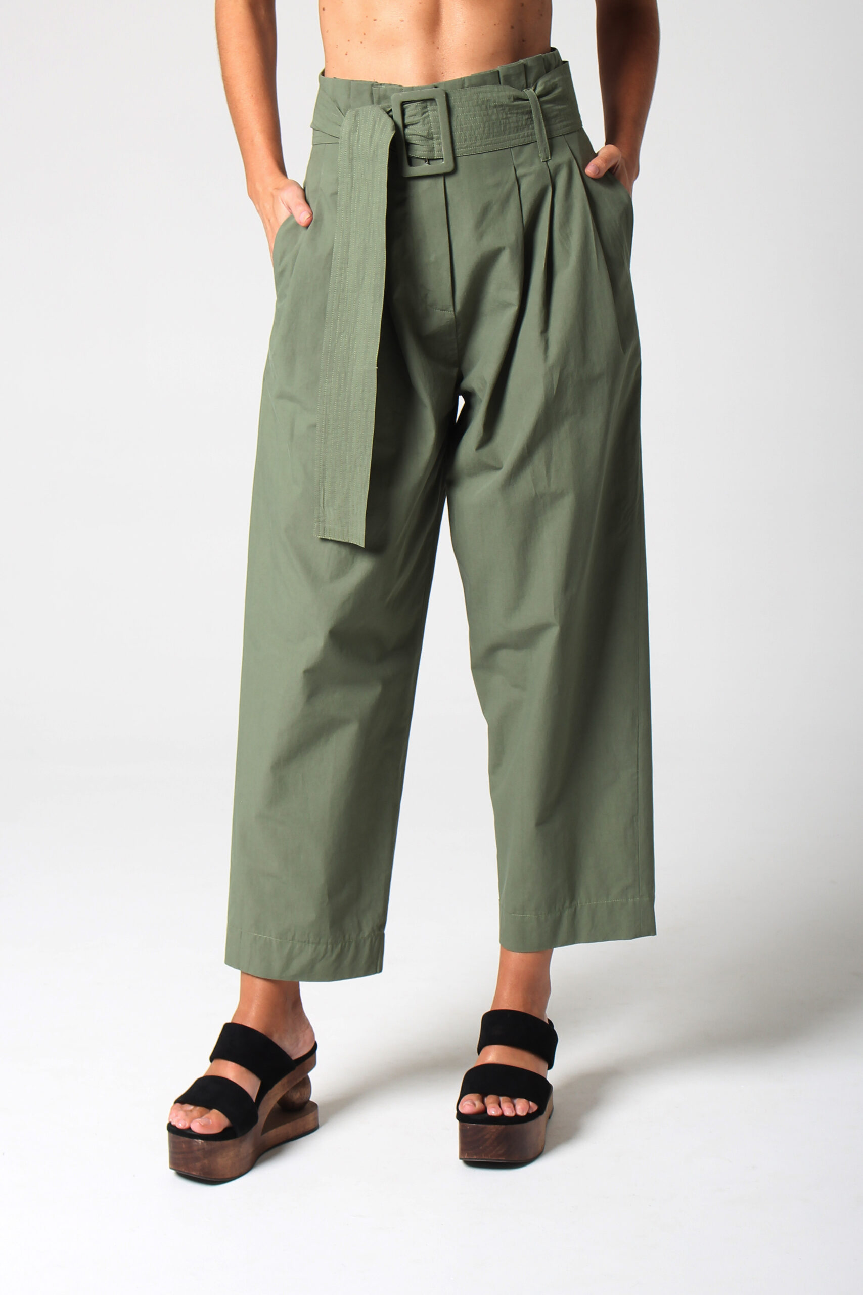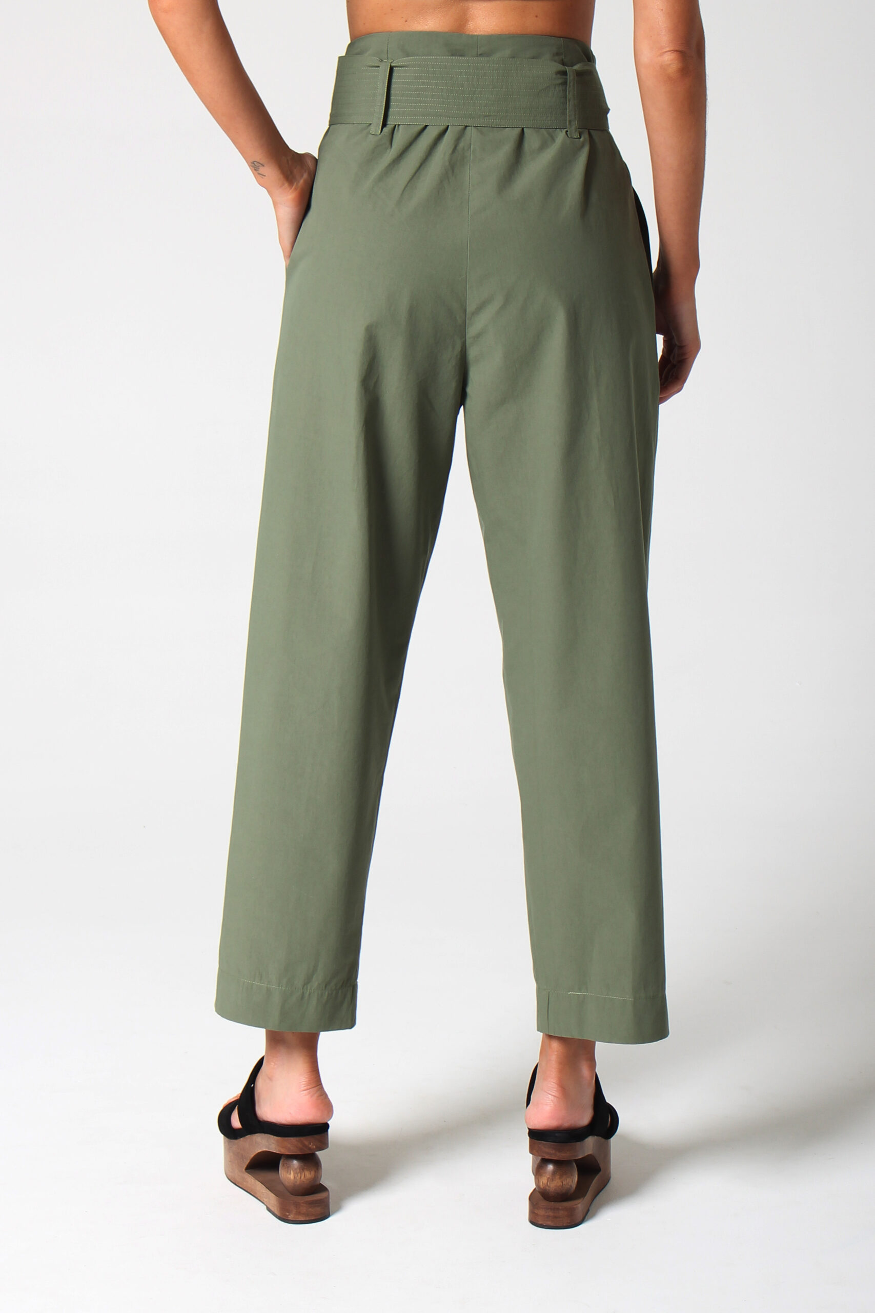 CALÇA JANY CÓS ALTO COM BOLSOS E PASSANTES PARA CINTO QUE ACOMPANHA.