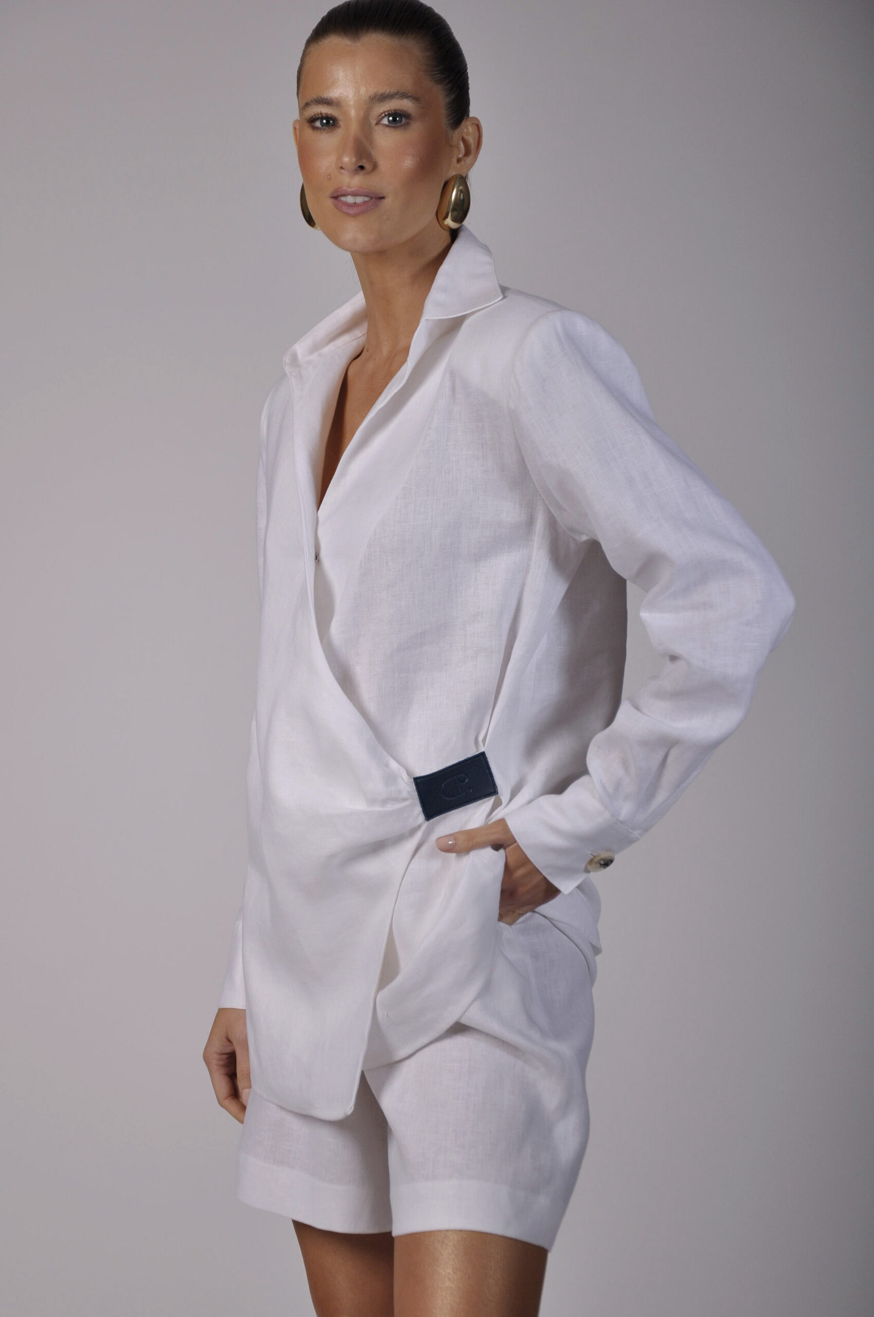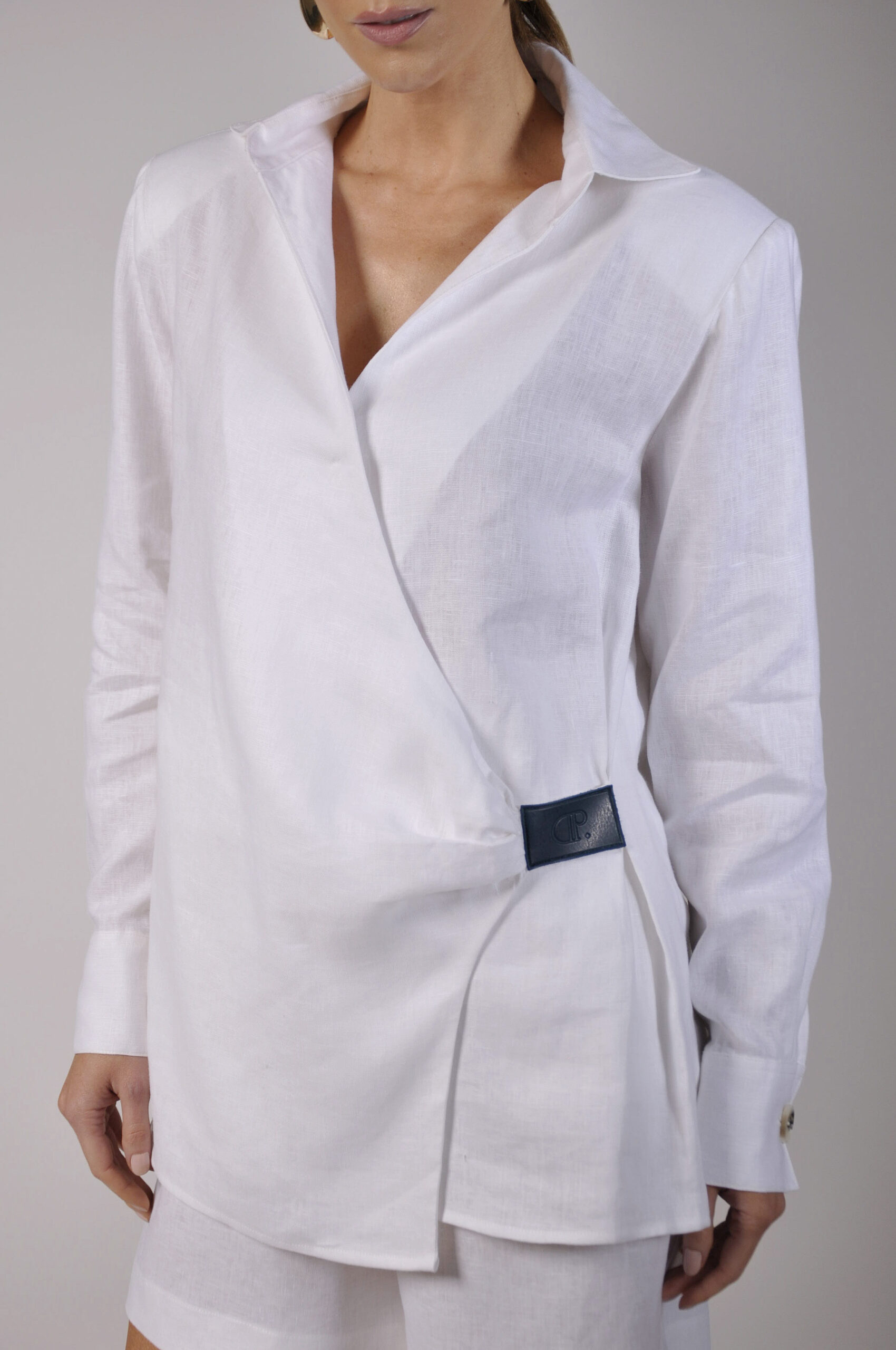 CAMISA PINUS MANGA LONGA COM PUNHO E DECOTE FRONTAL.