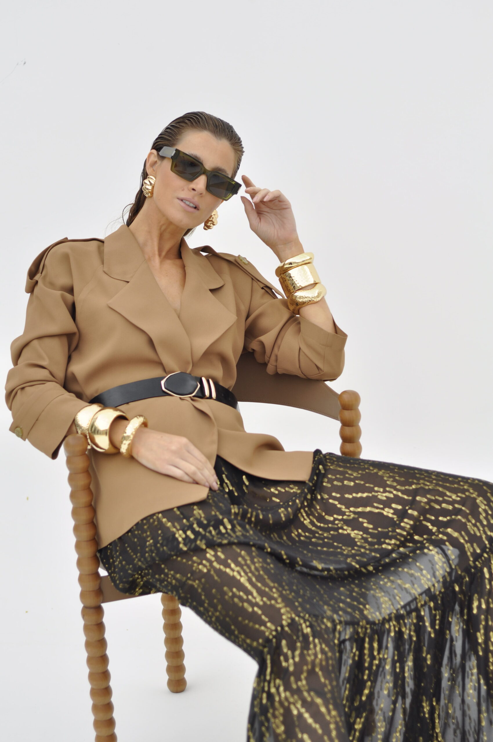 CINTO EM COURO PRETO COM DETALHE EM DOURADO.