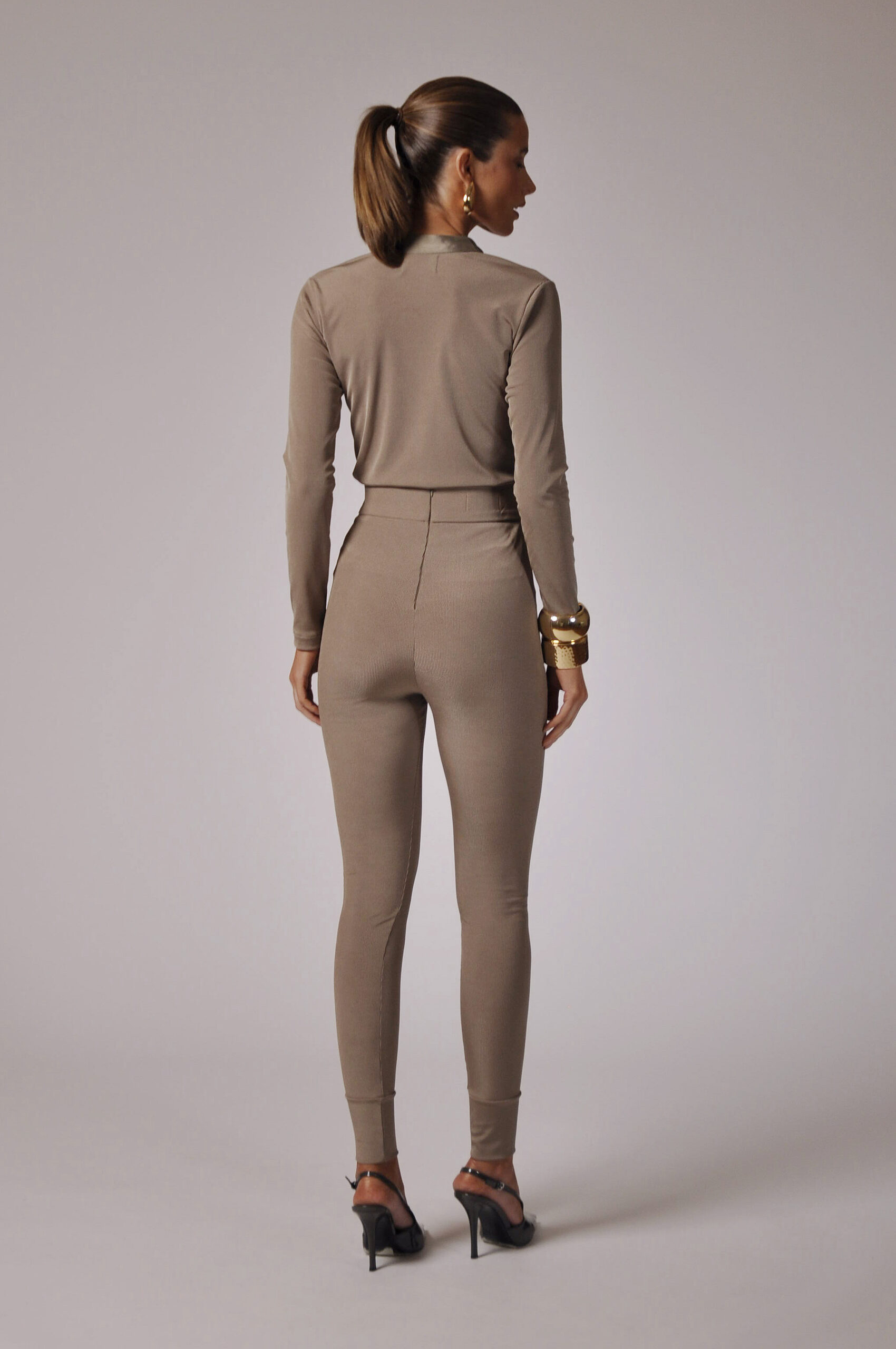 LEGGING GENEBRA ELÁSTICO NO CÓS, PUNHO, BOTÕES FRONTAIS E FECHAMENTO POSTERIOR EM ZÍPER.