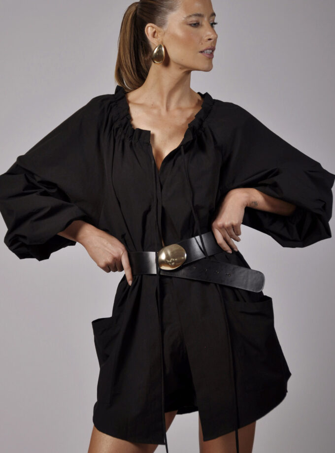 LEGGING SOMBRE COM ELÁSTICO NA CINTURA. ACOMPANHA HOT PANTS EM ECOFIO PRETO.