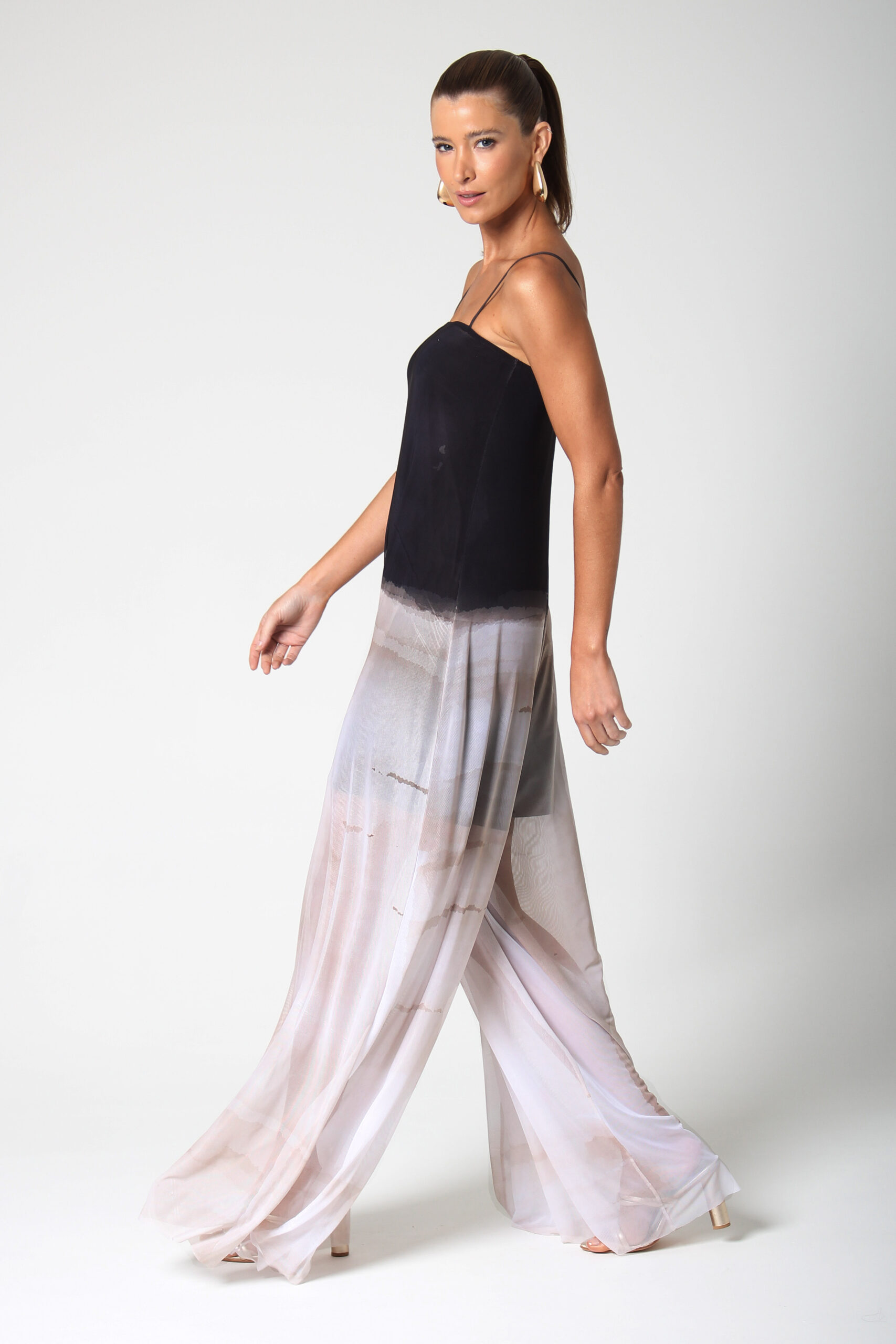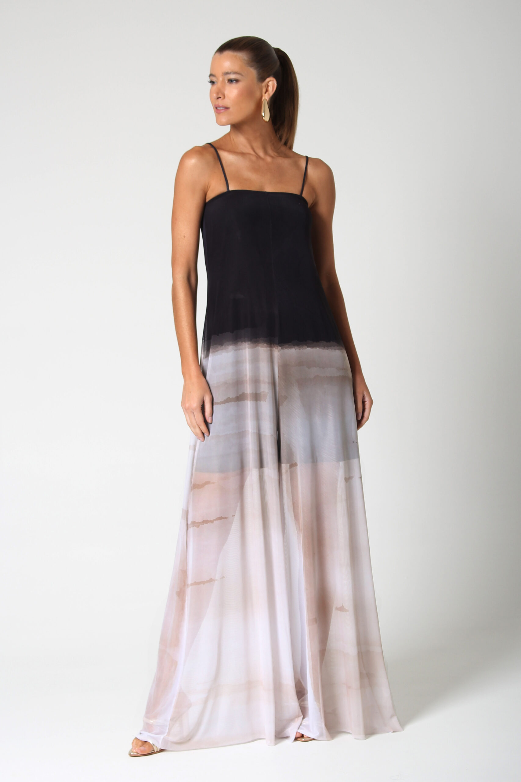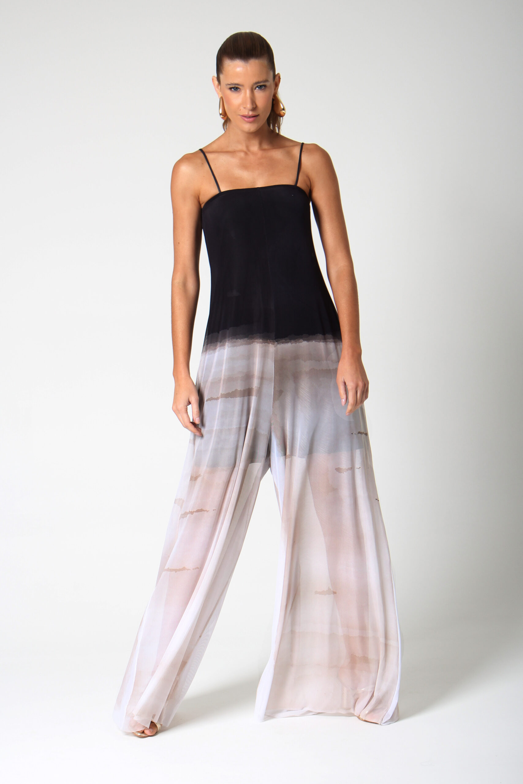 MACACÃO SCURO DE ALÇA E CALÇA AMPLA