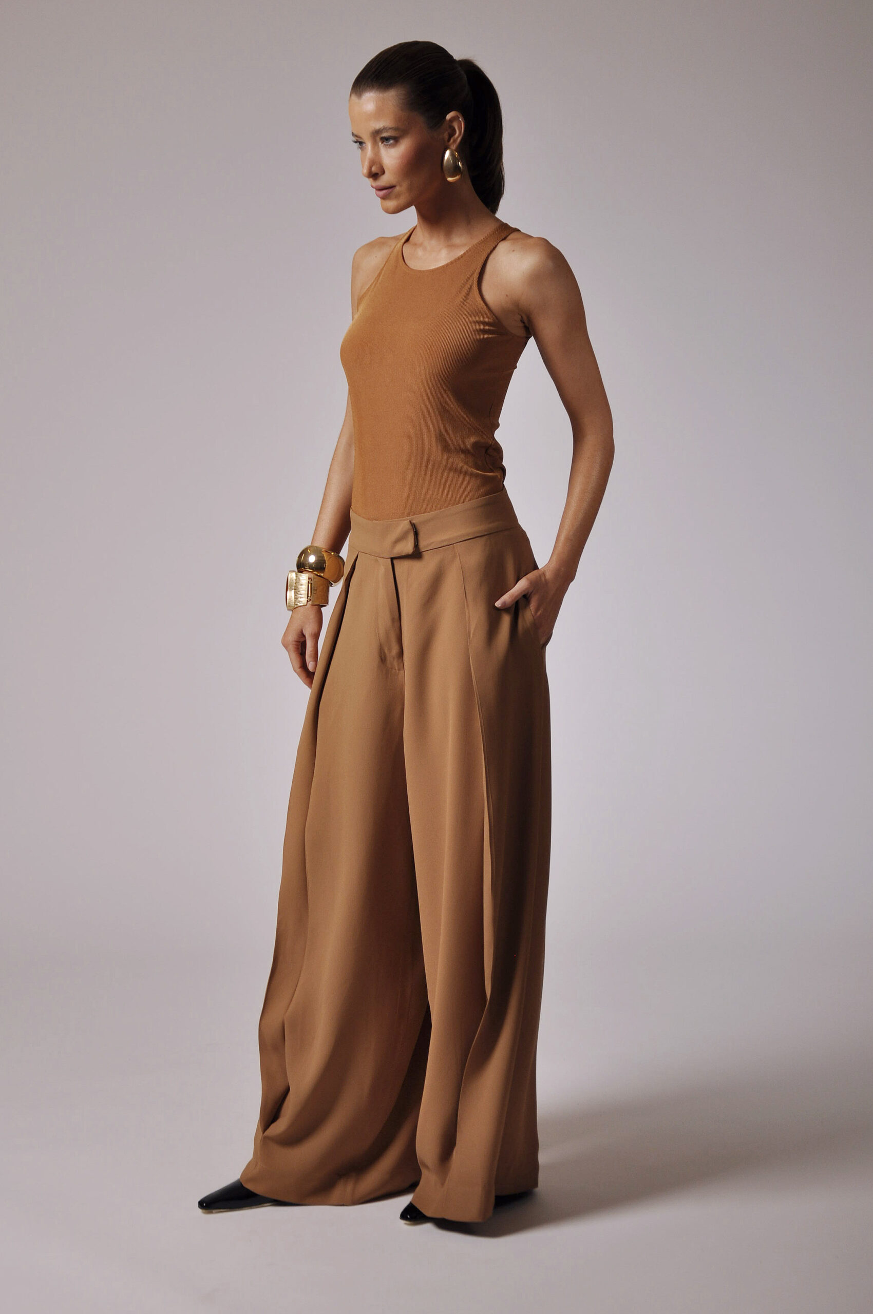 PANTALONA ANNE COM BOLSOS E FECHAMENTO EM GANCHO E ZÍPER.