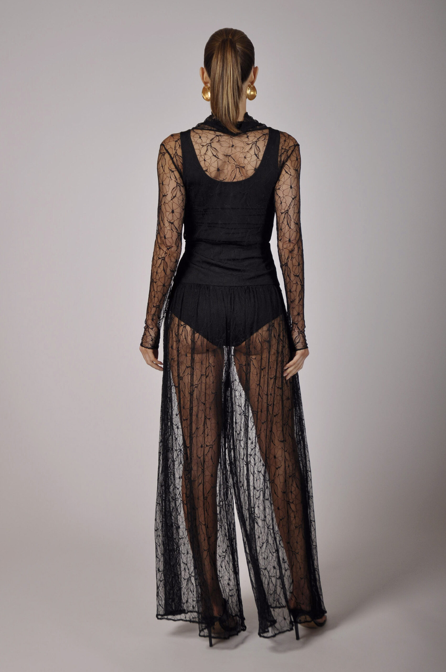 PANTALONA LUNA DE RENDA PRETA COM PALA FORRADA E ZÍPER NA LATERAL.