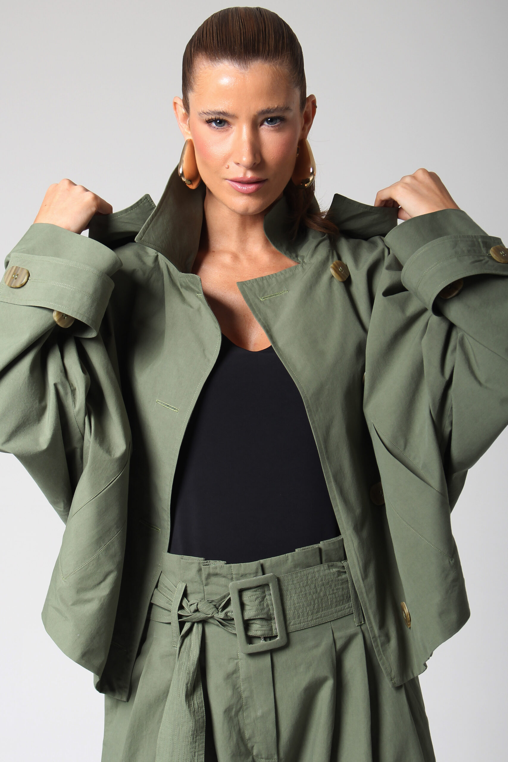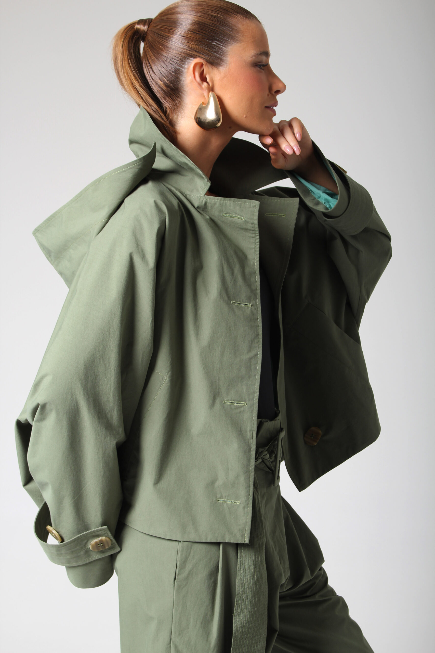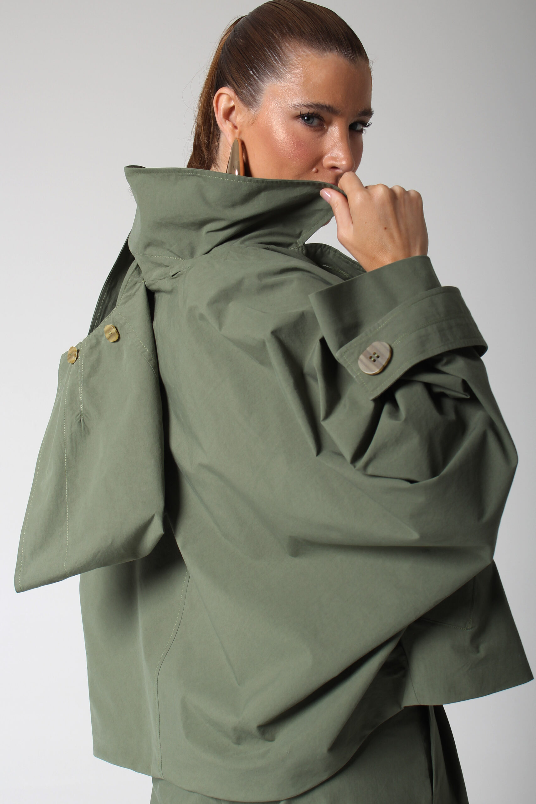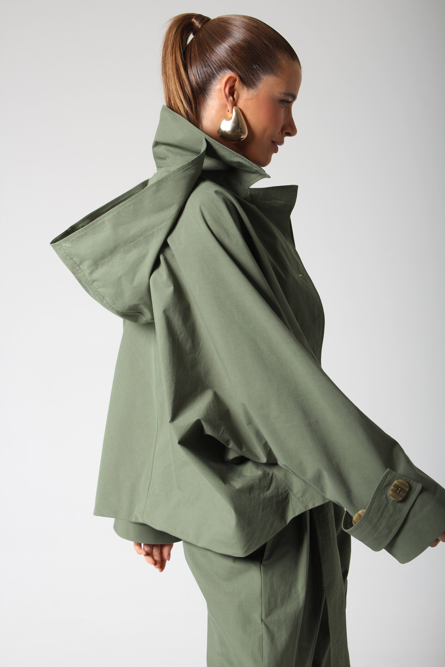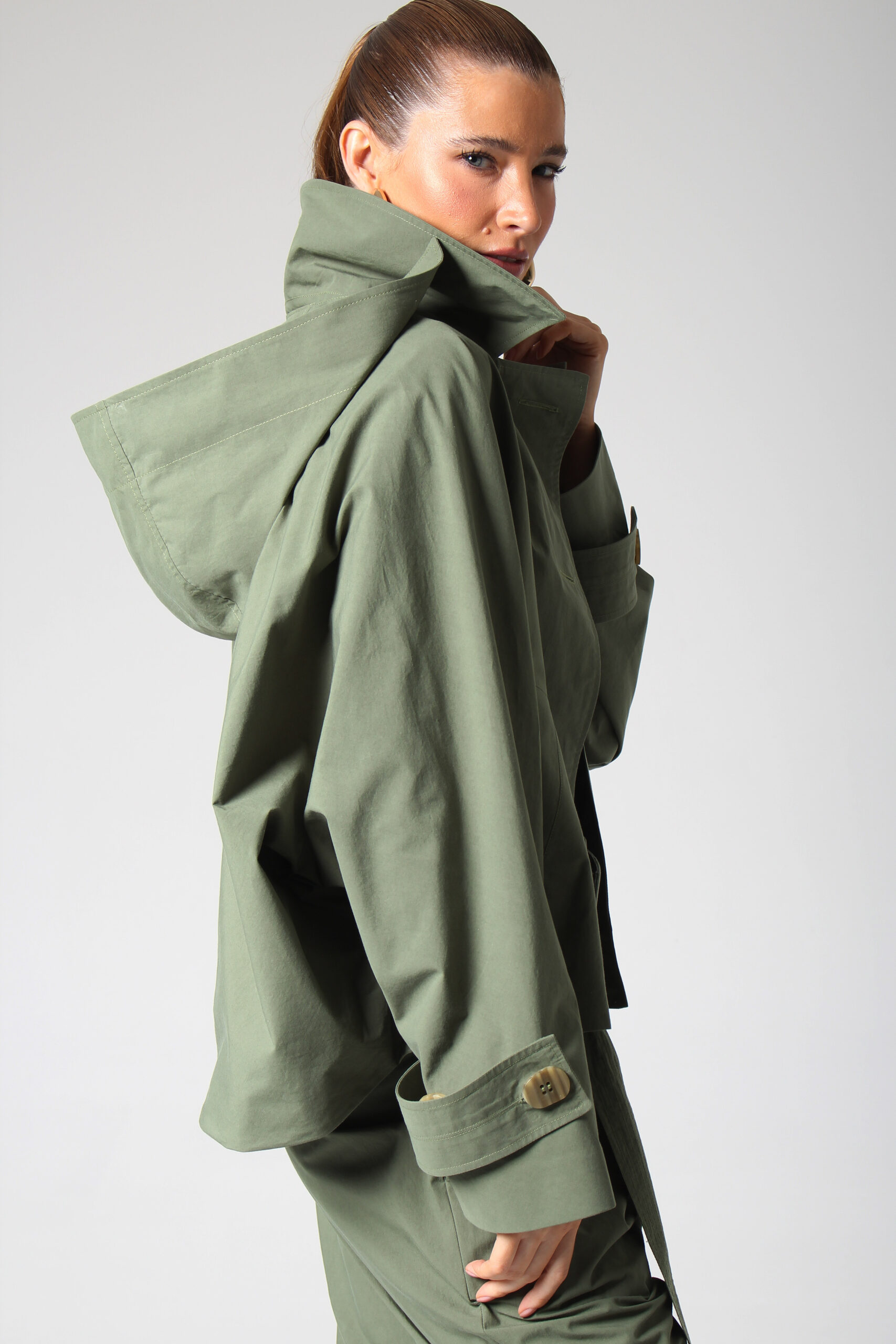 PARKA CIMINO MANGA LONGA, DESPOJADA COM CAPUZ REMOVÍVEL.