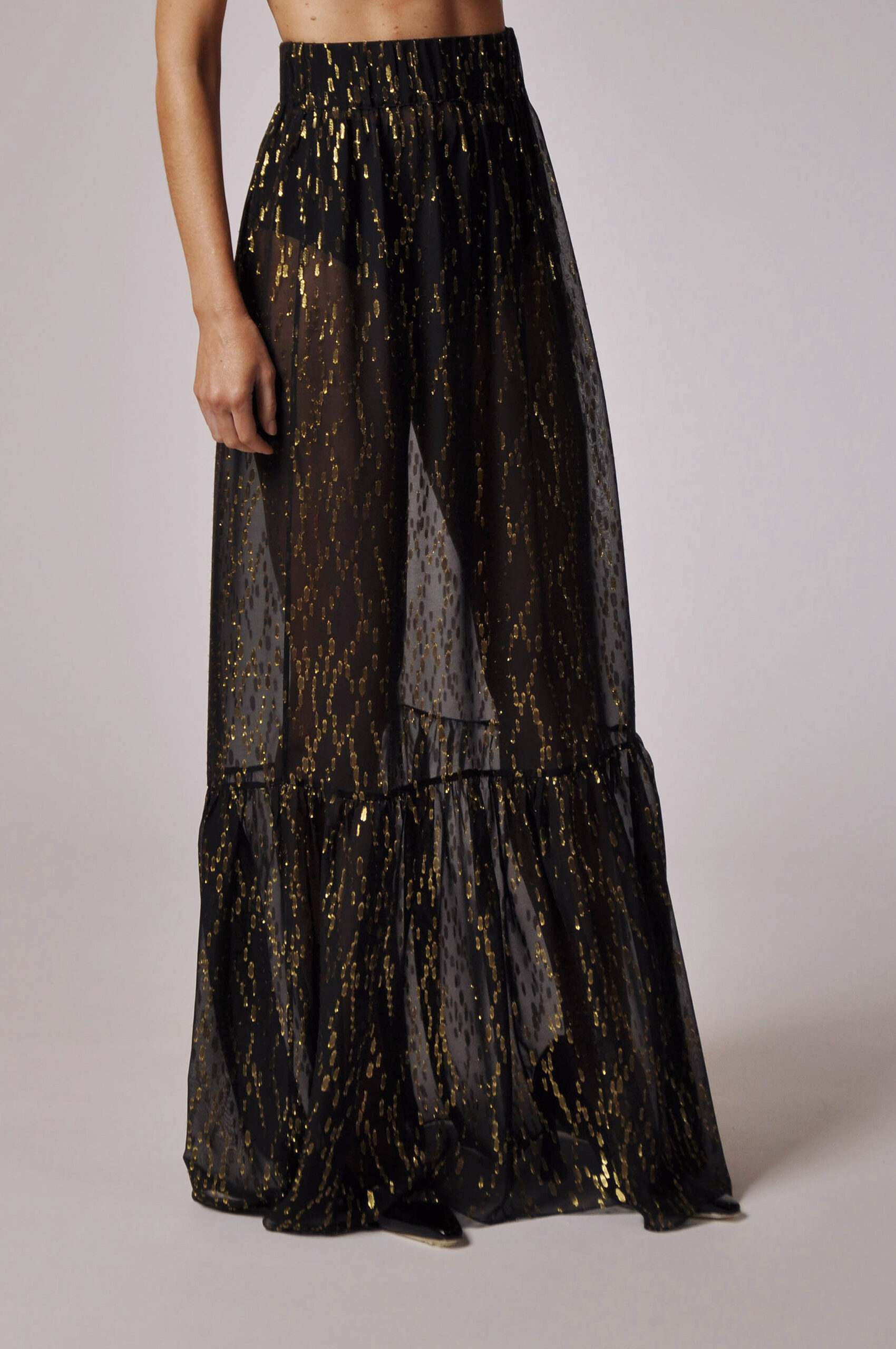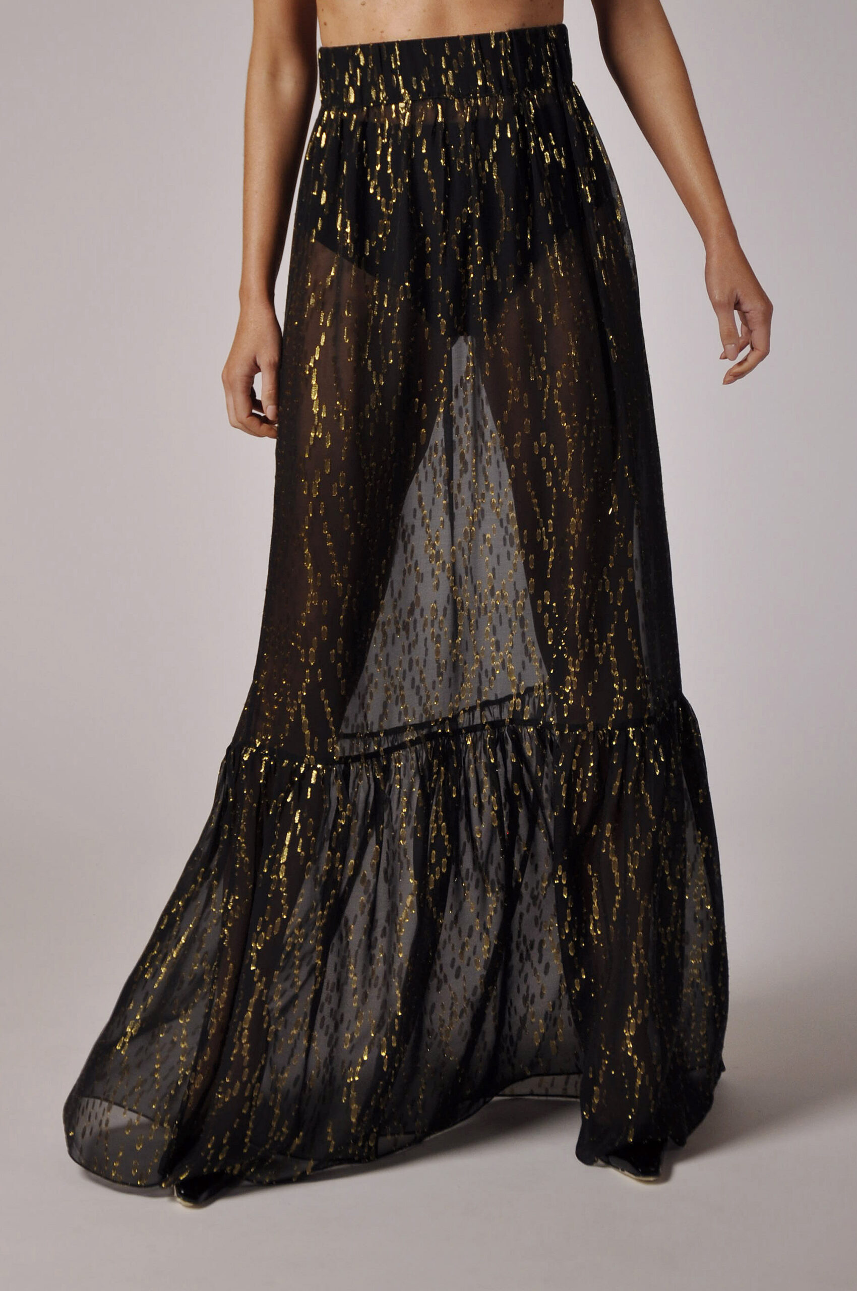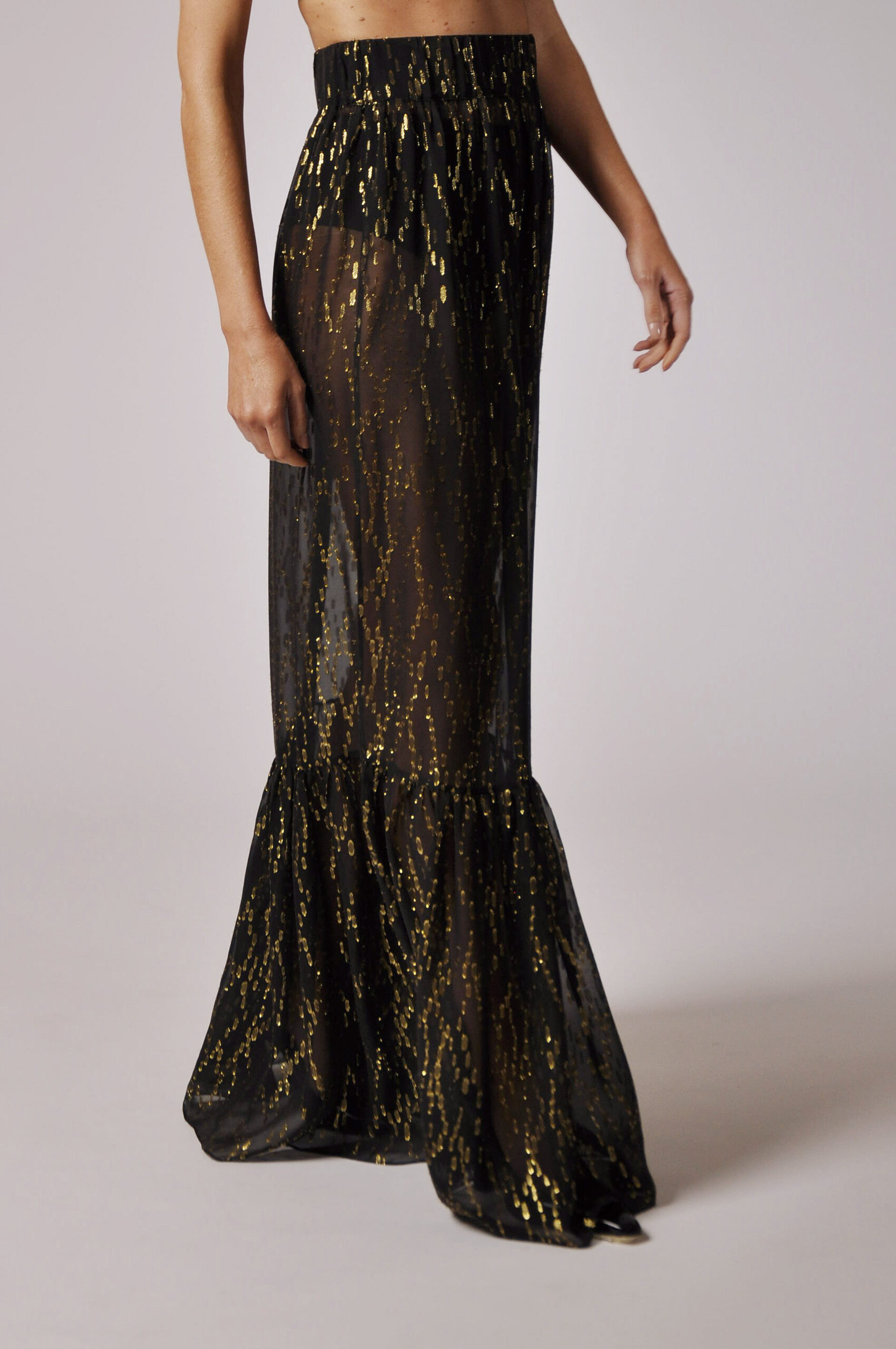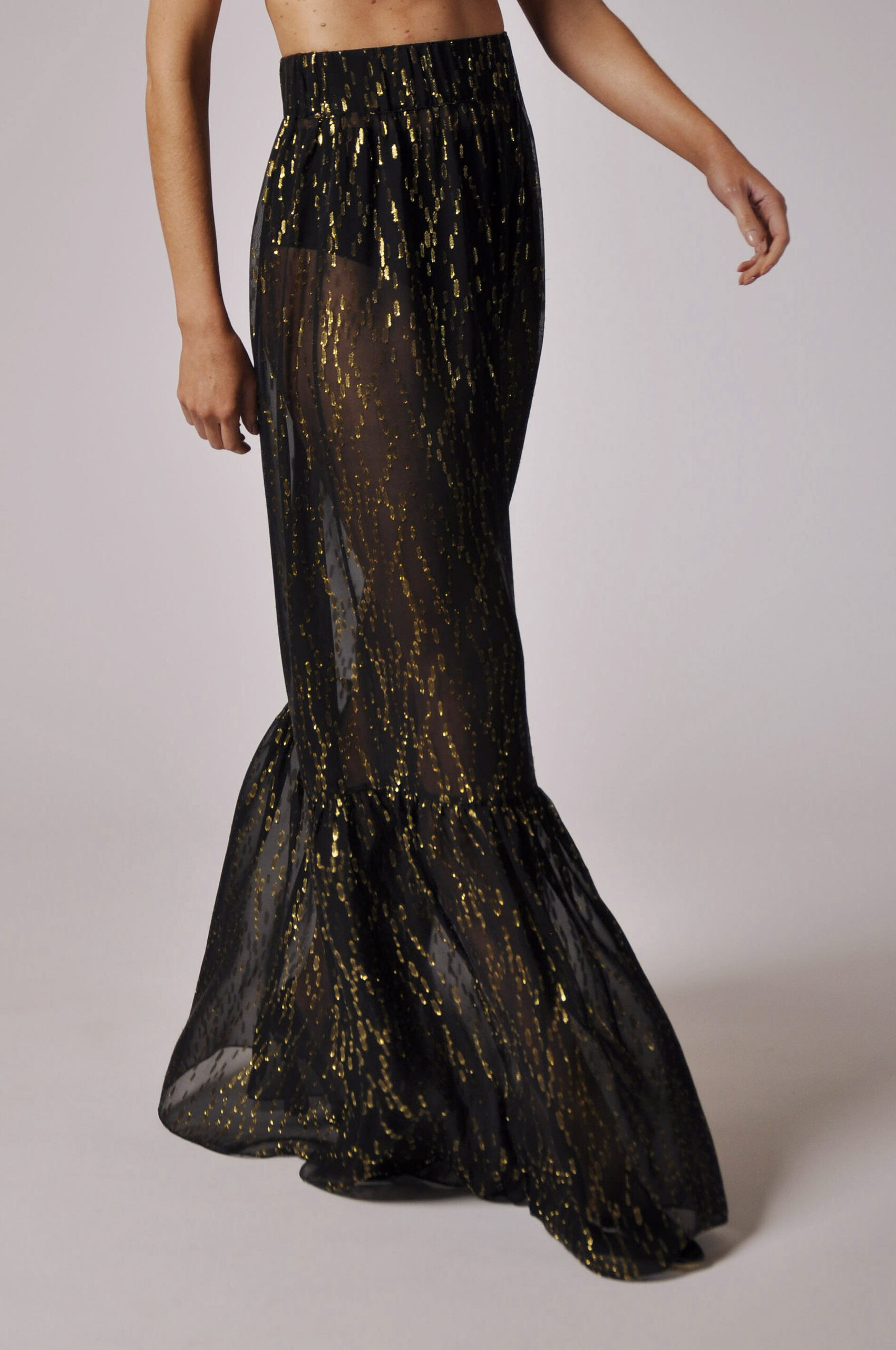 SAIA LONGA GRAND, COM TRANSPARÊNCIA, ELÁSTICO NO CÓS E BABADO.
