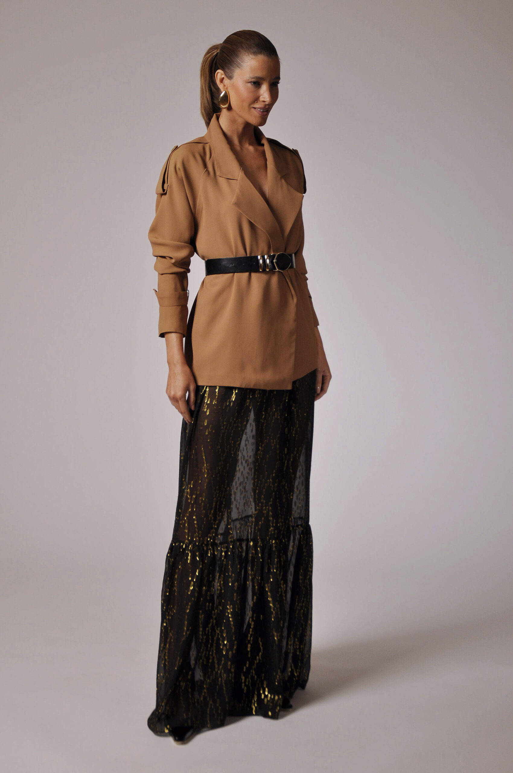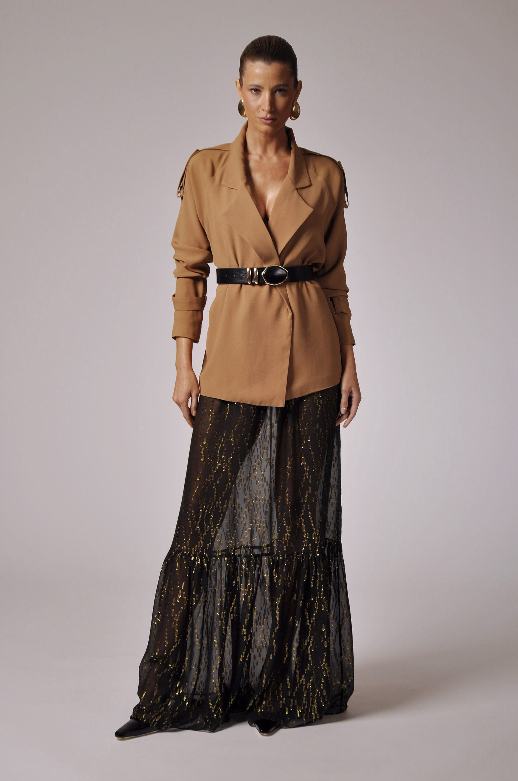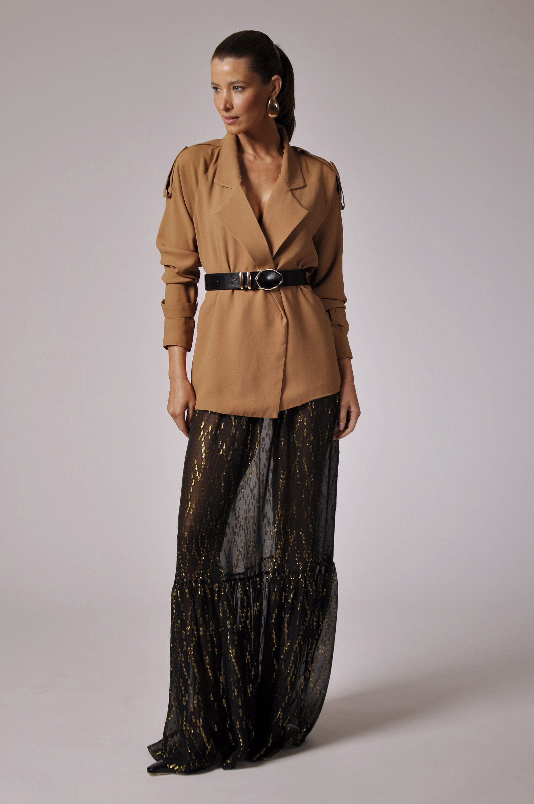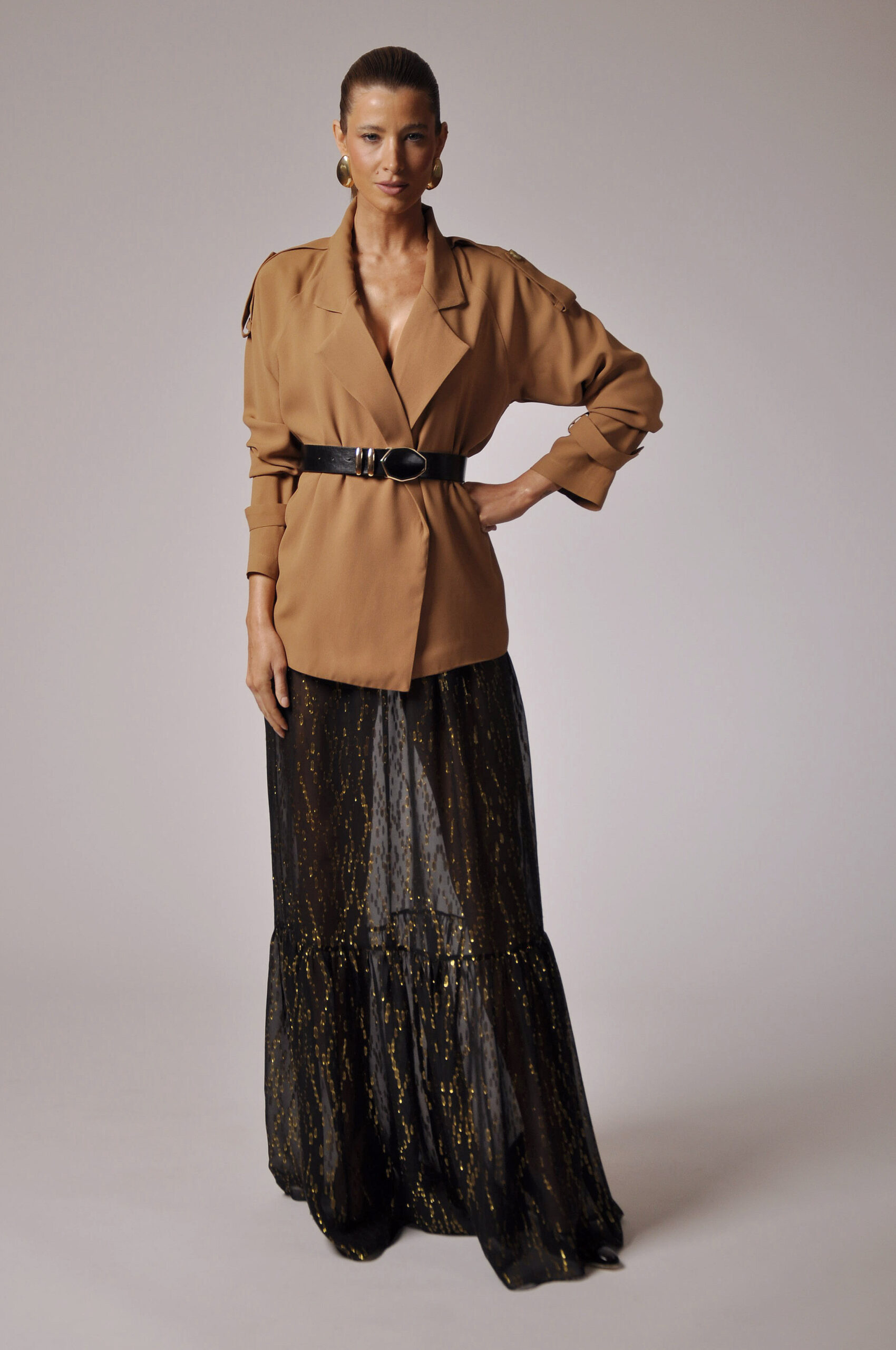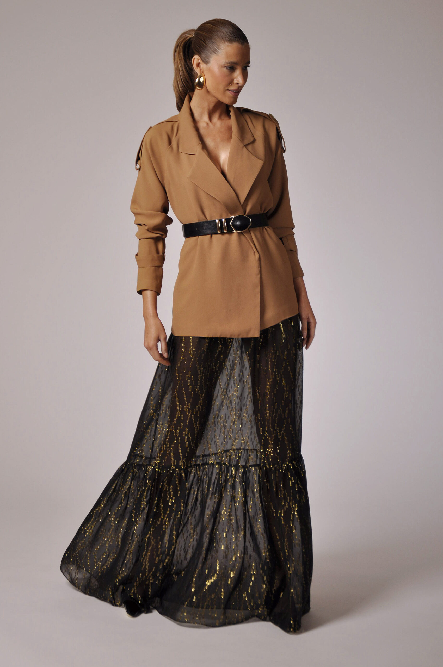 SEDA PRETA COM DETALHE EM DOURADO – 80% SEDA – 20% POLIÉSTER DOS FIOS DE LUREX