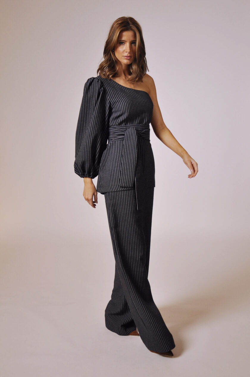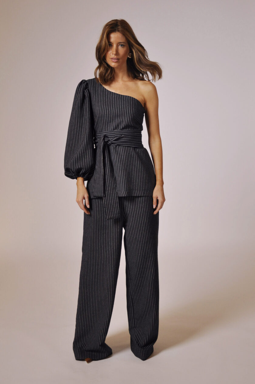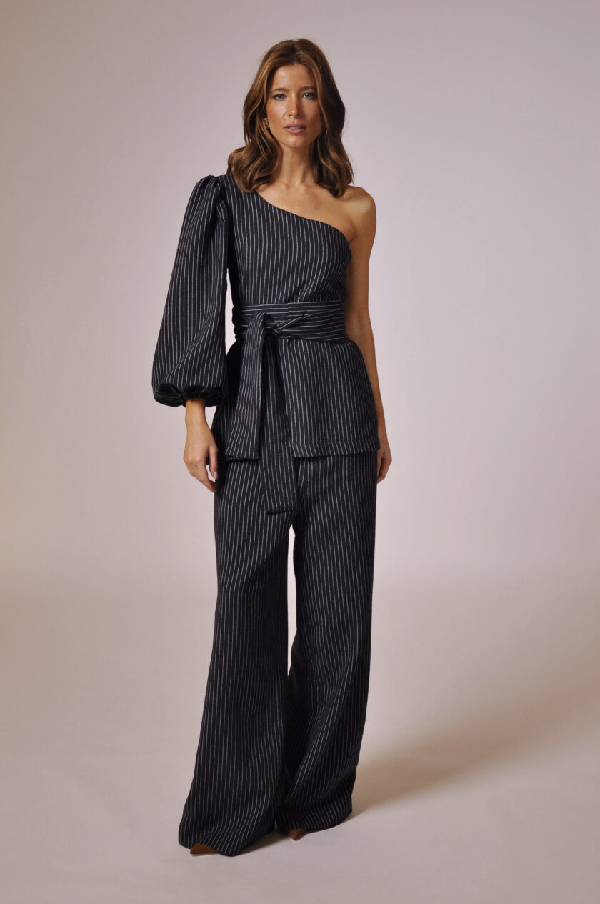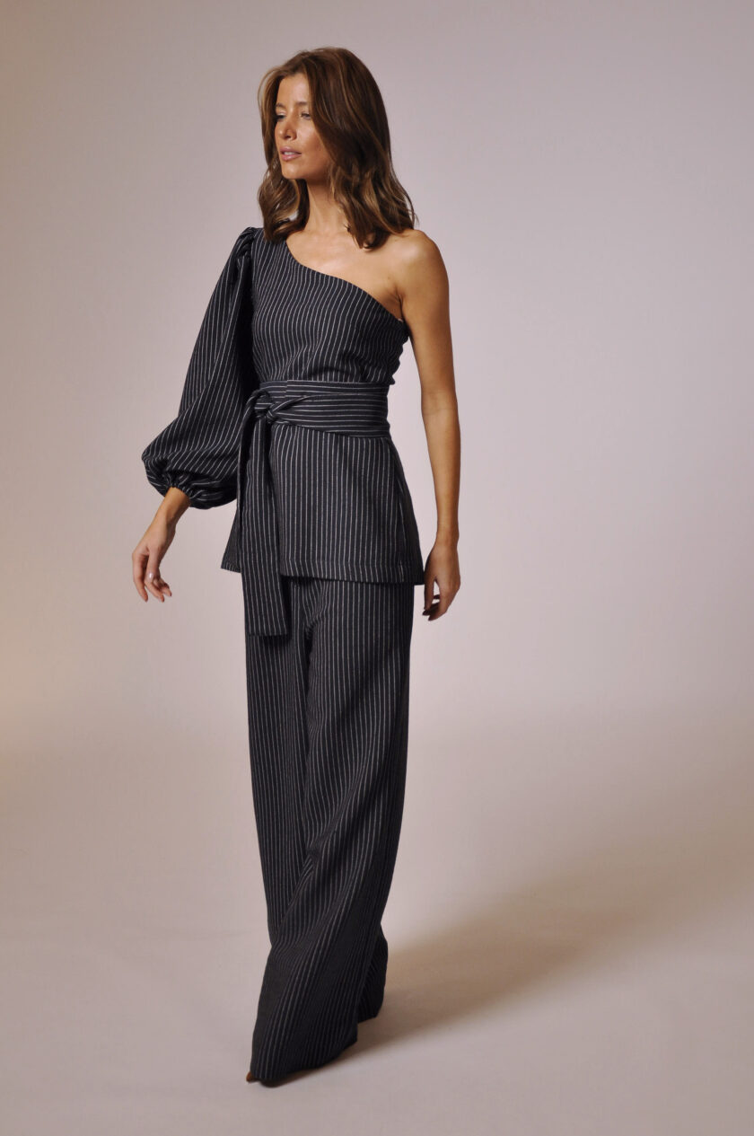 TOP WIN UM OMBRO SÓ COM MANGA BUFANTE E FAIXA PARA AMARRAÇÃO.
