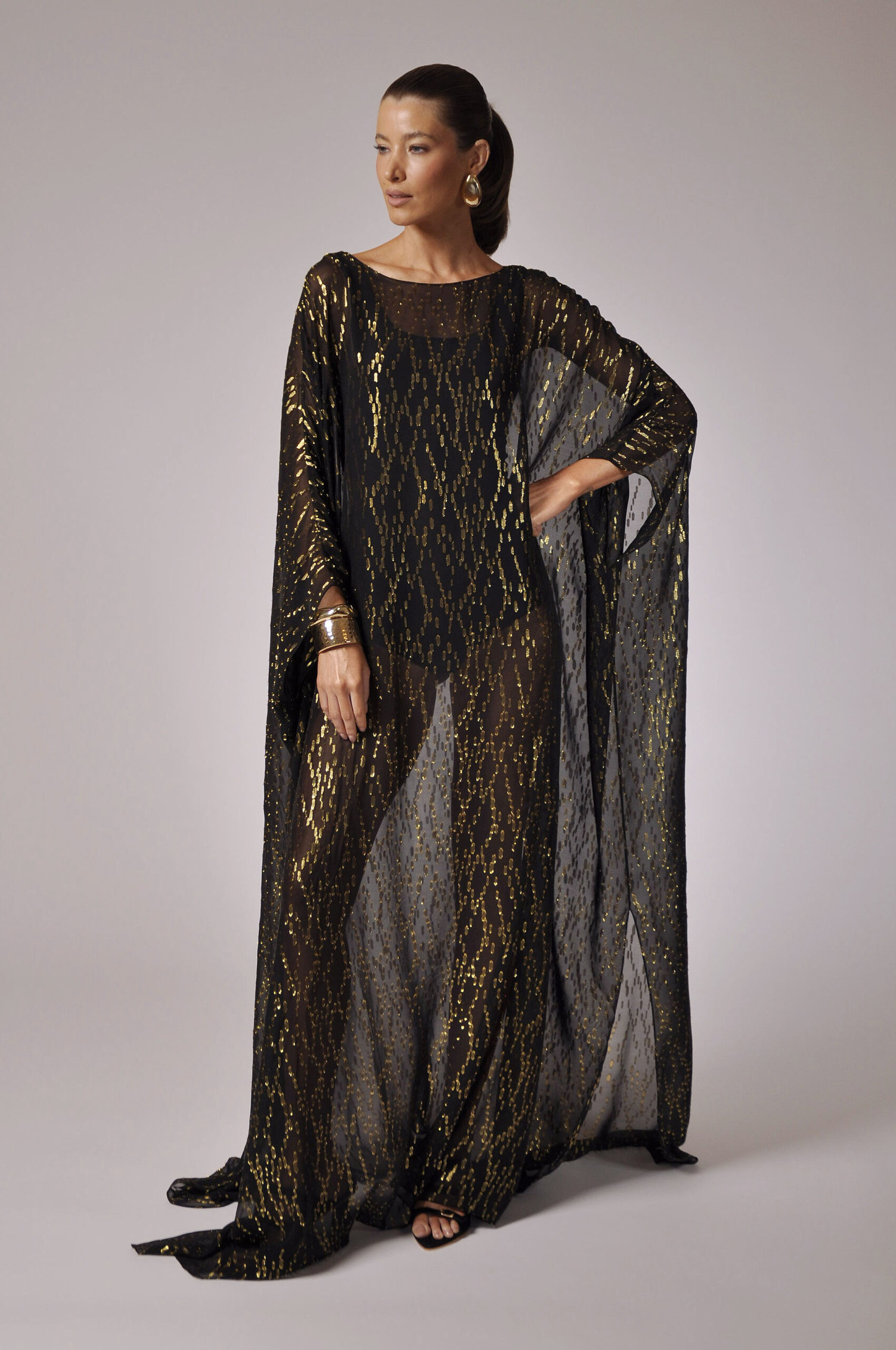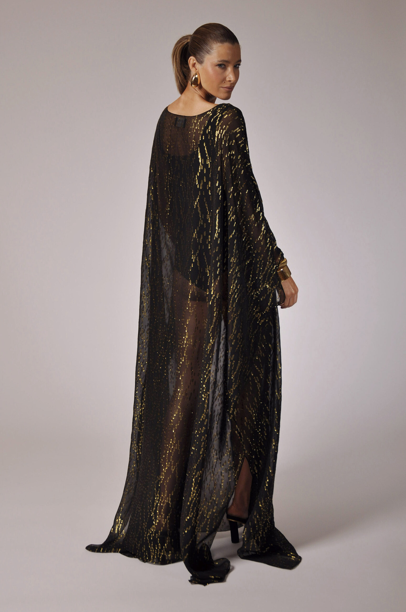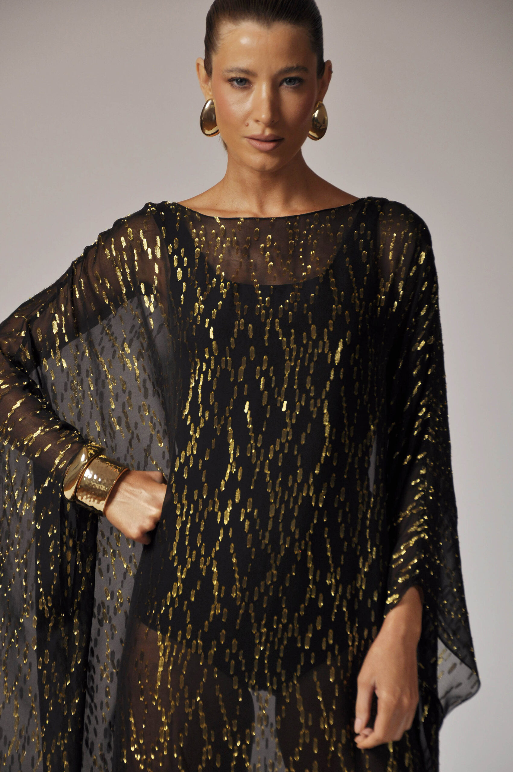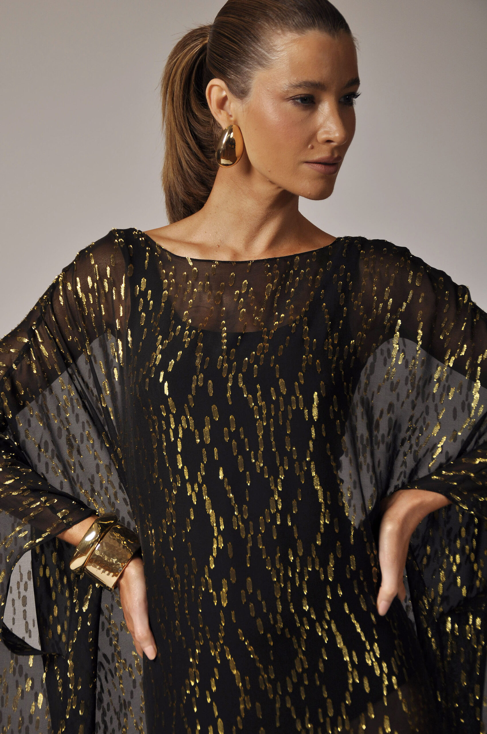 SEDA PRETA COM DETALHE EM DOURADO – 80% SEDA – 20% POLIÉSTER DOS FIOS DE LUREX