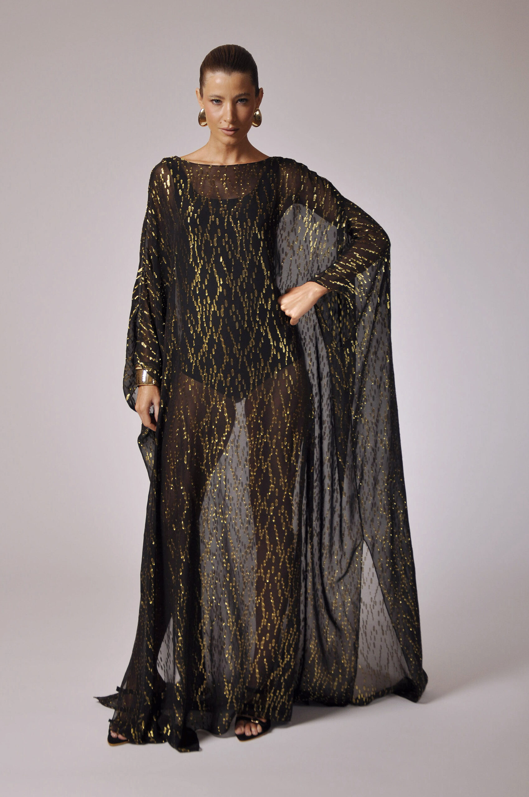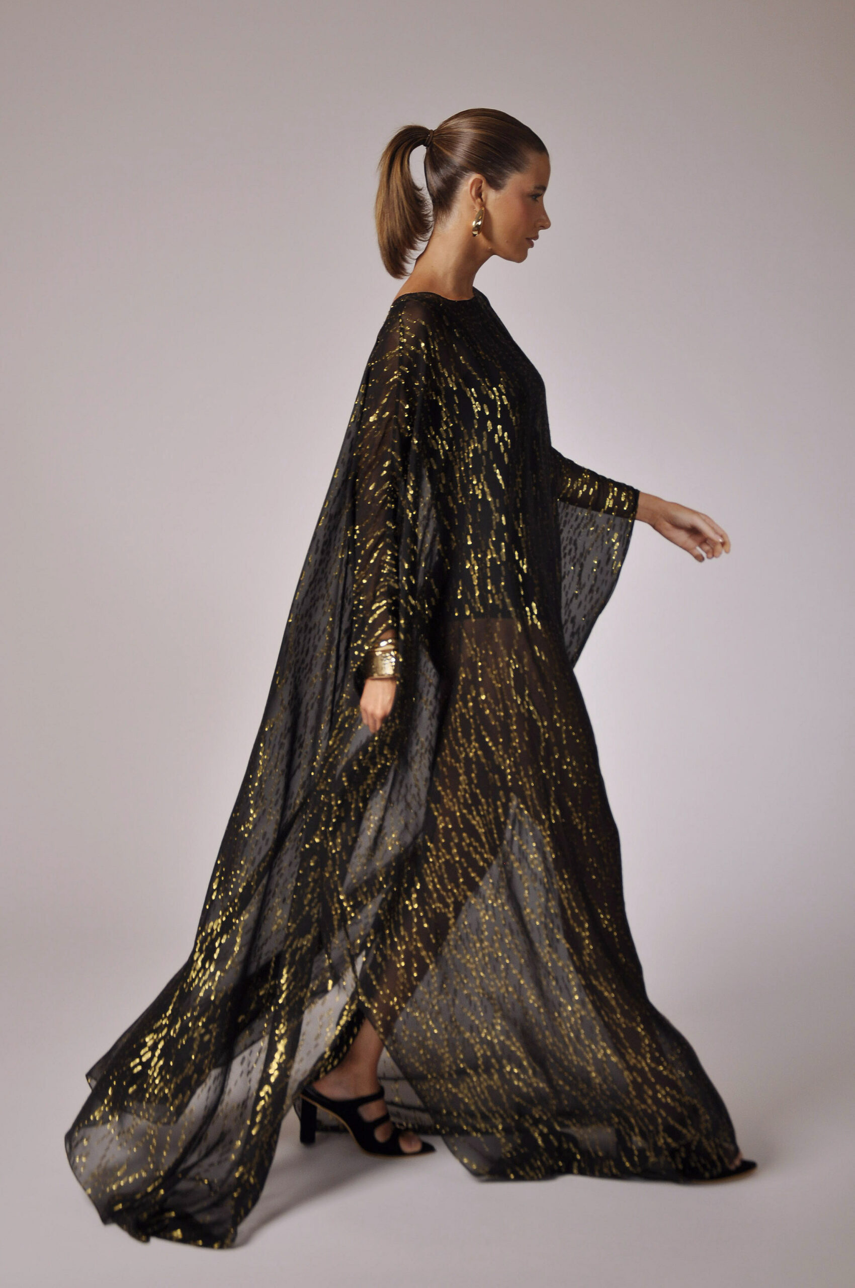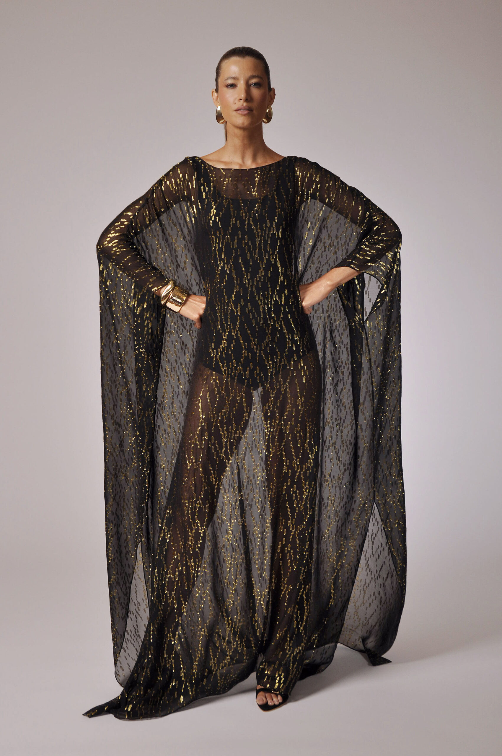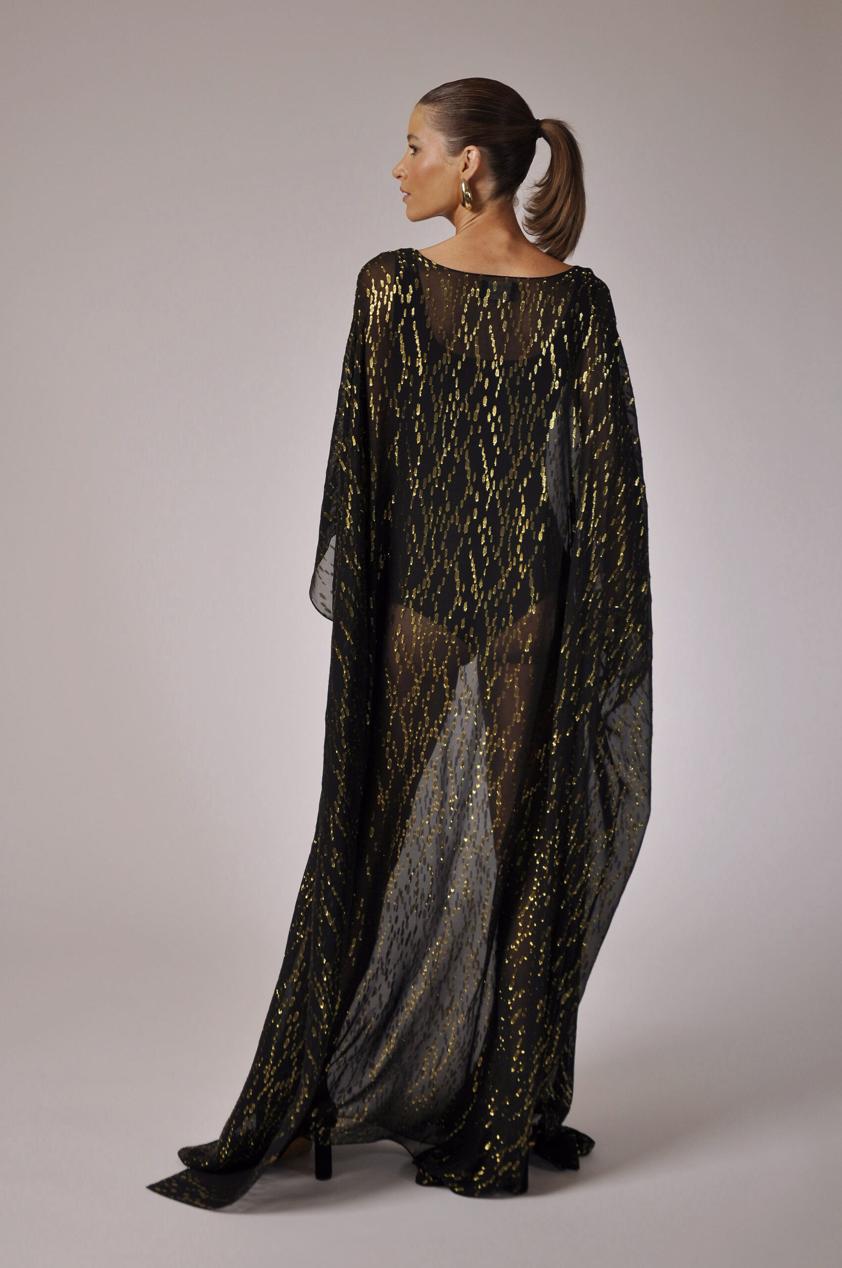 SEDA PRETA COM DETALHE EM DOURADO – 80% SEDA – 20% POLIÉSTER DOS FIOS DE LUREX
