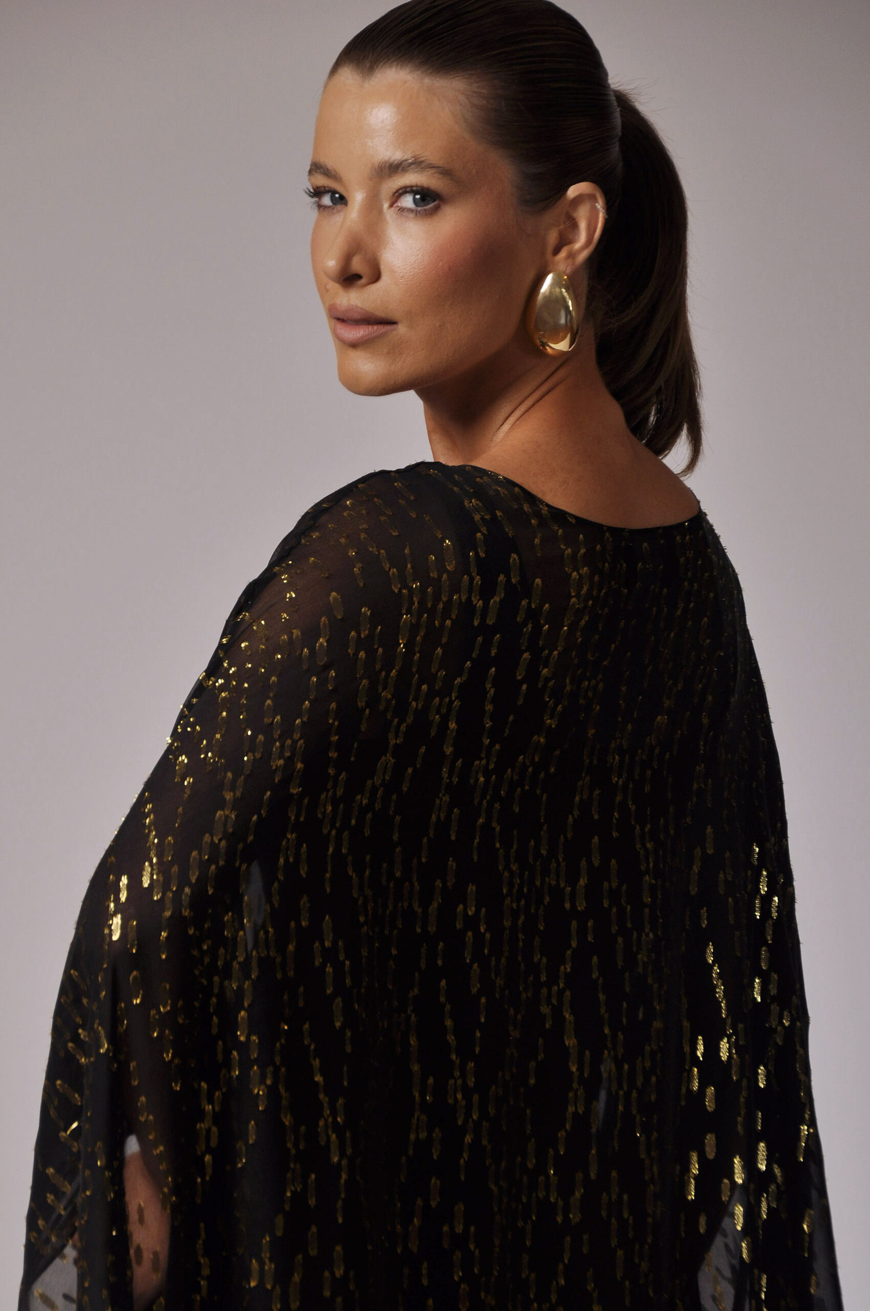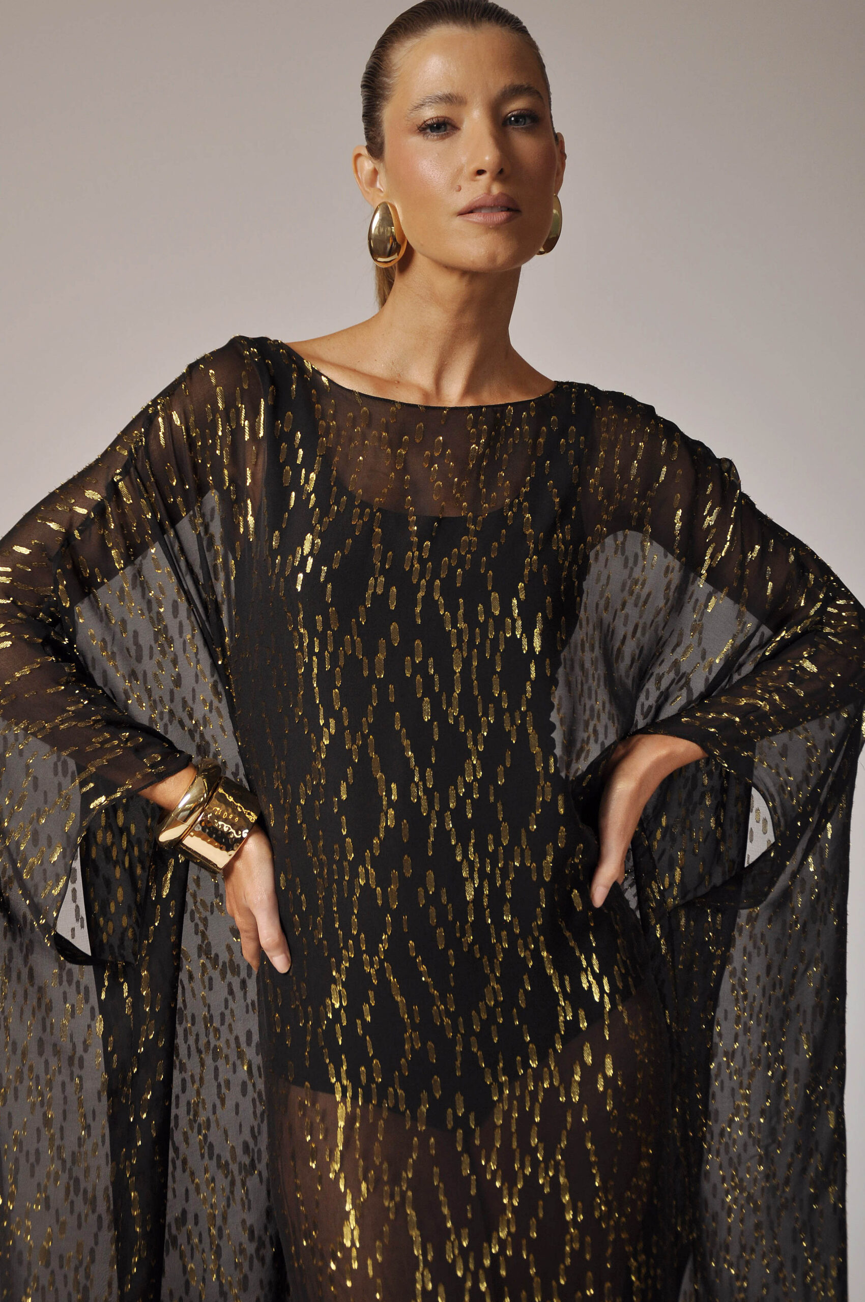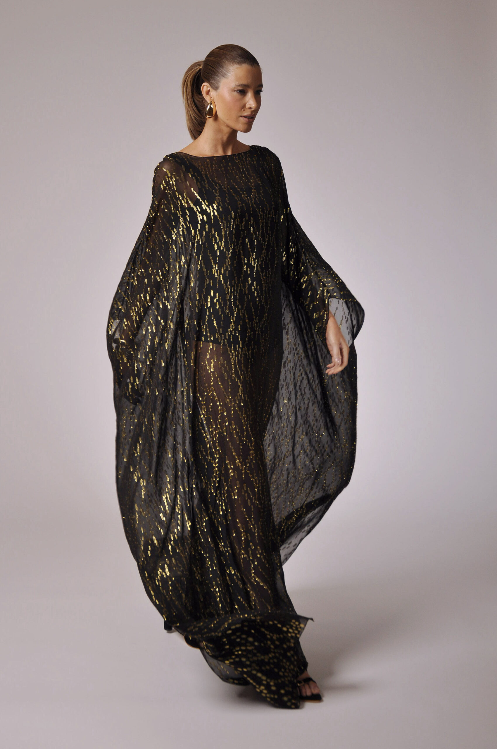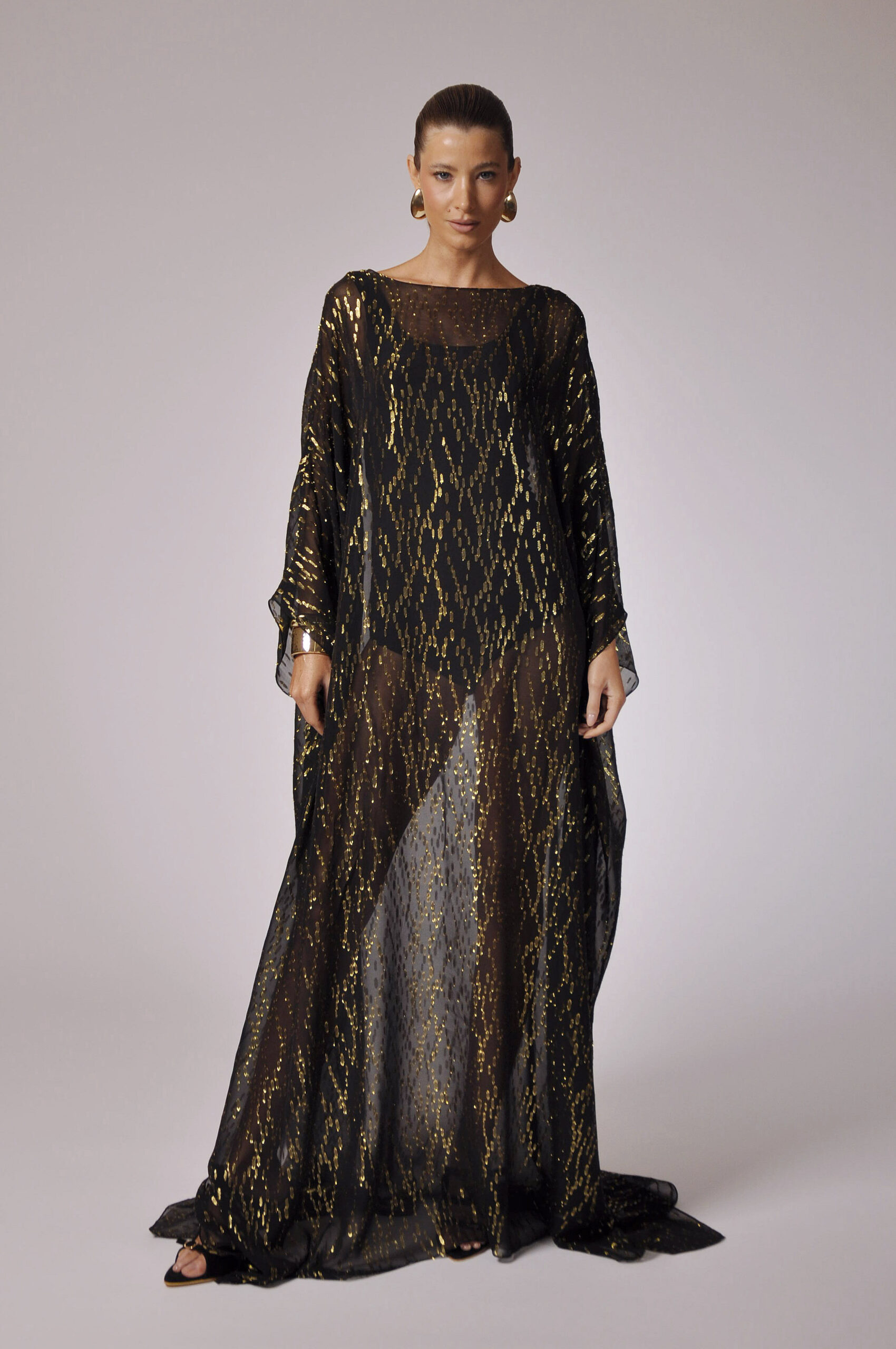 SEDA PRETA COM DETALHE EM DOURADO – 80% SEDA – 20% POLIÉSTER DOS FIOS DE LUREX