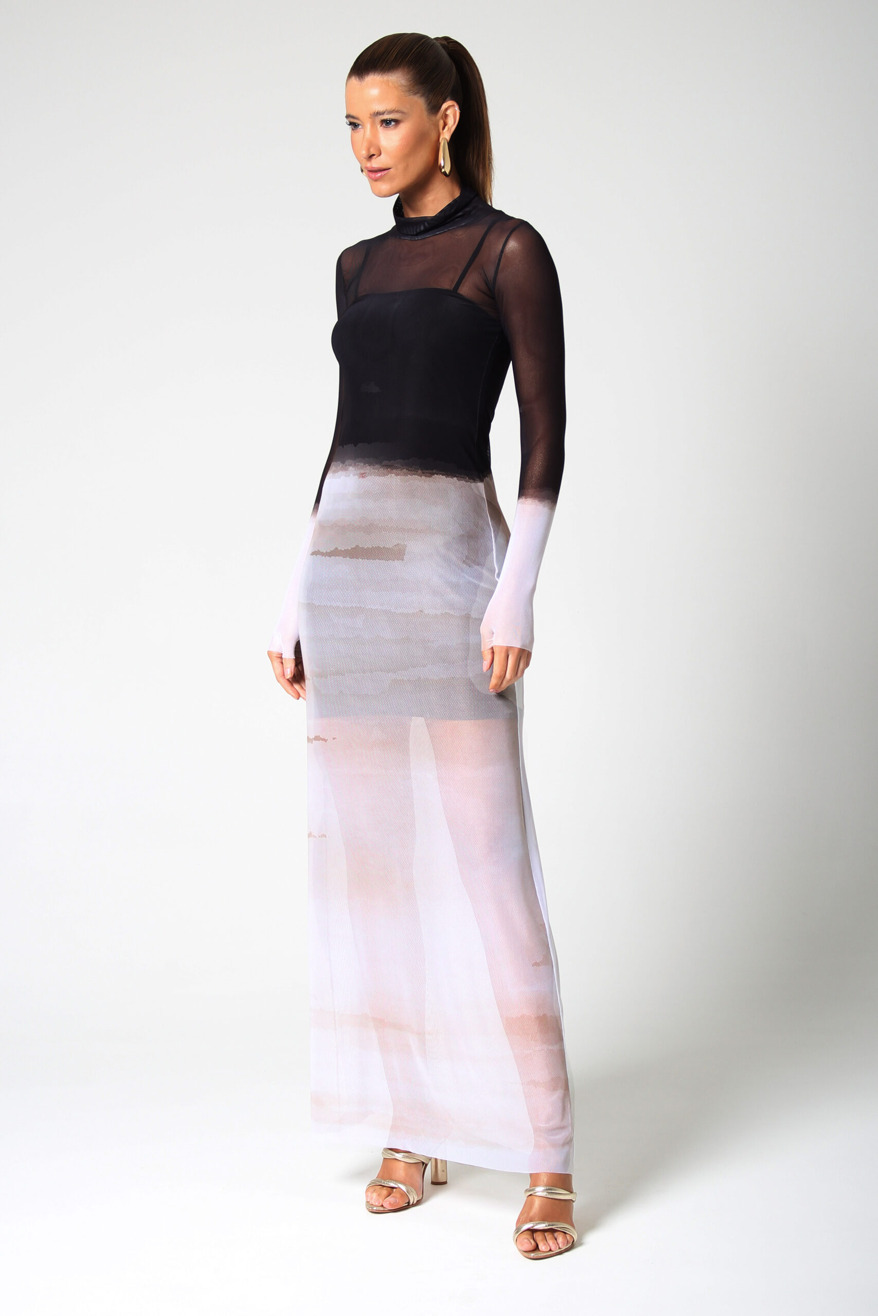 VESTIDO COMPOR MANGA LONGA COM LUVINHA E GOLA ALTA