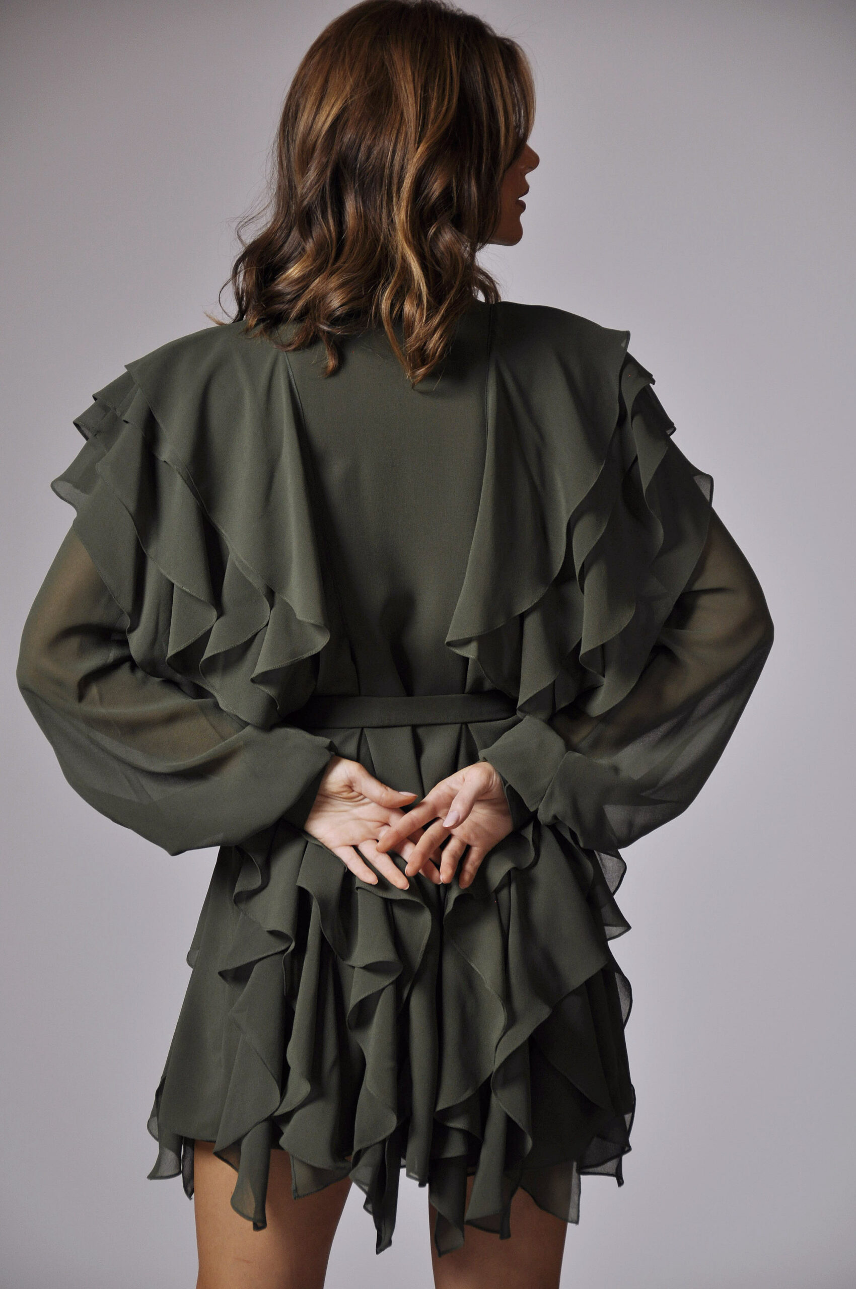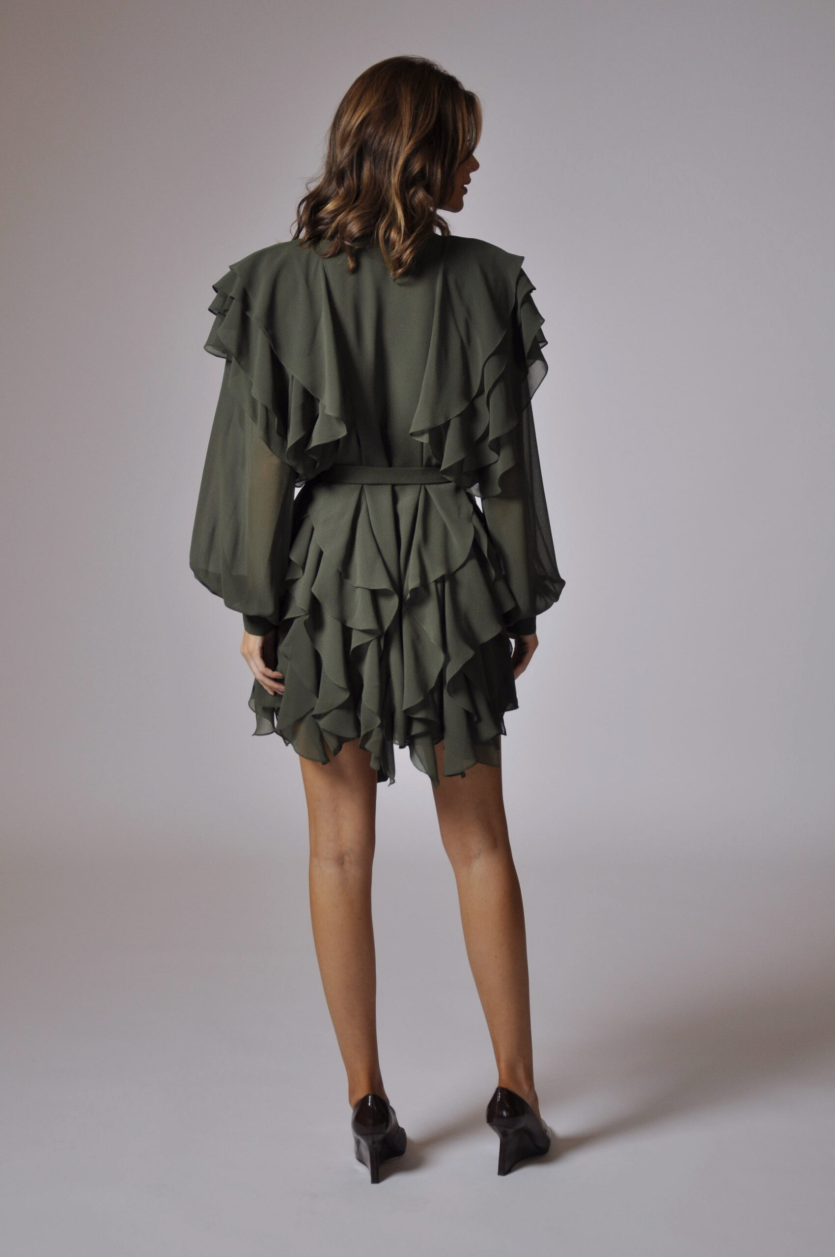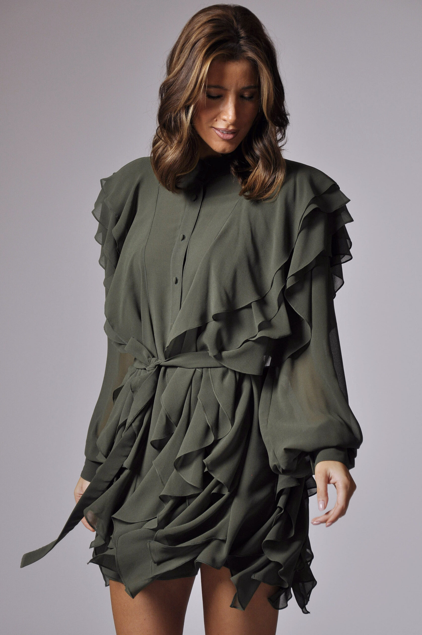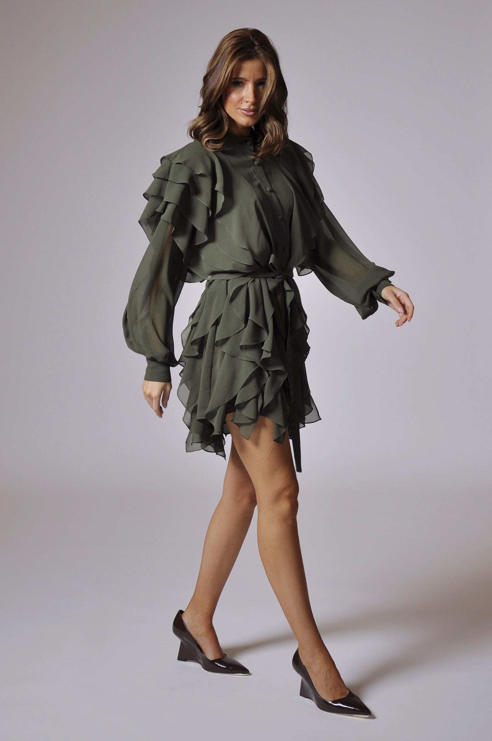 VESTIDO MARIE CURTO, COM ABOTOAMENTO FRONTAL E BABADOS